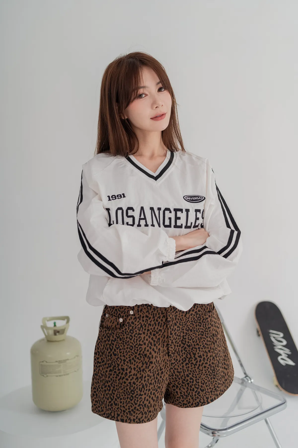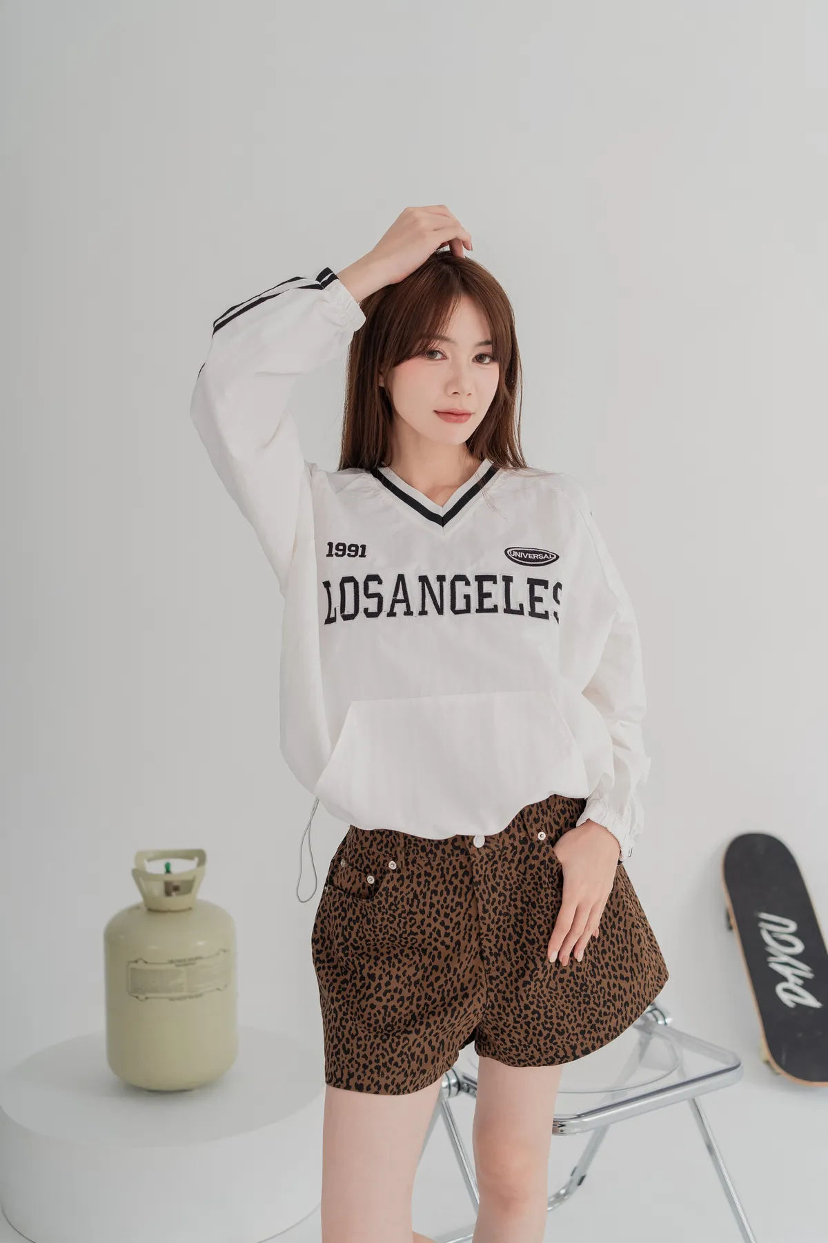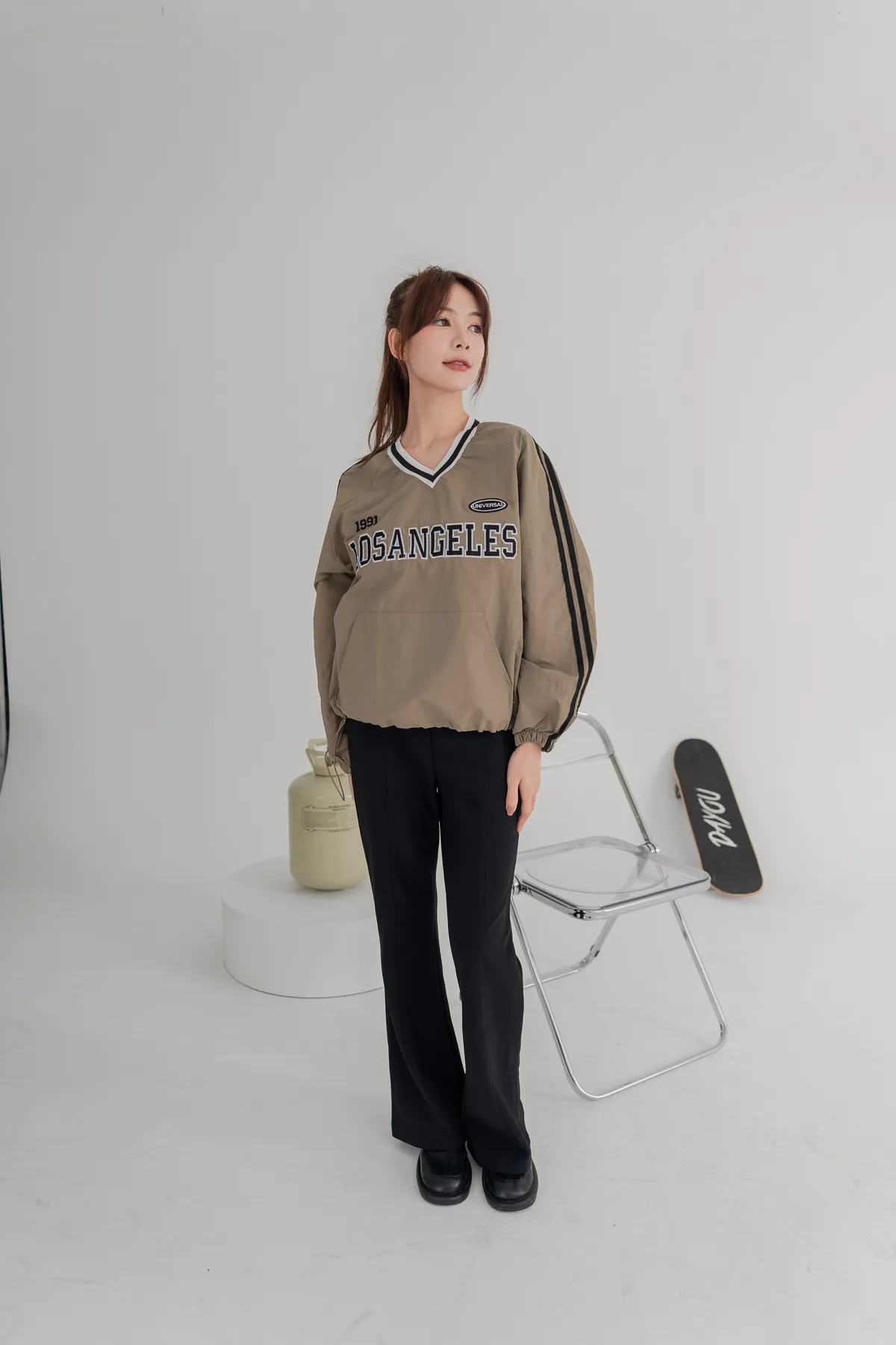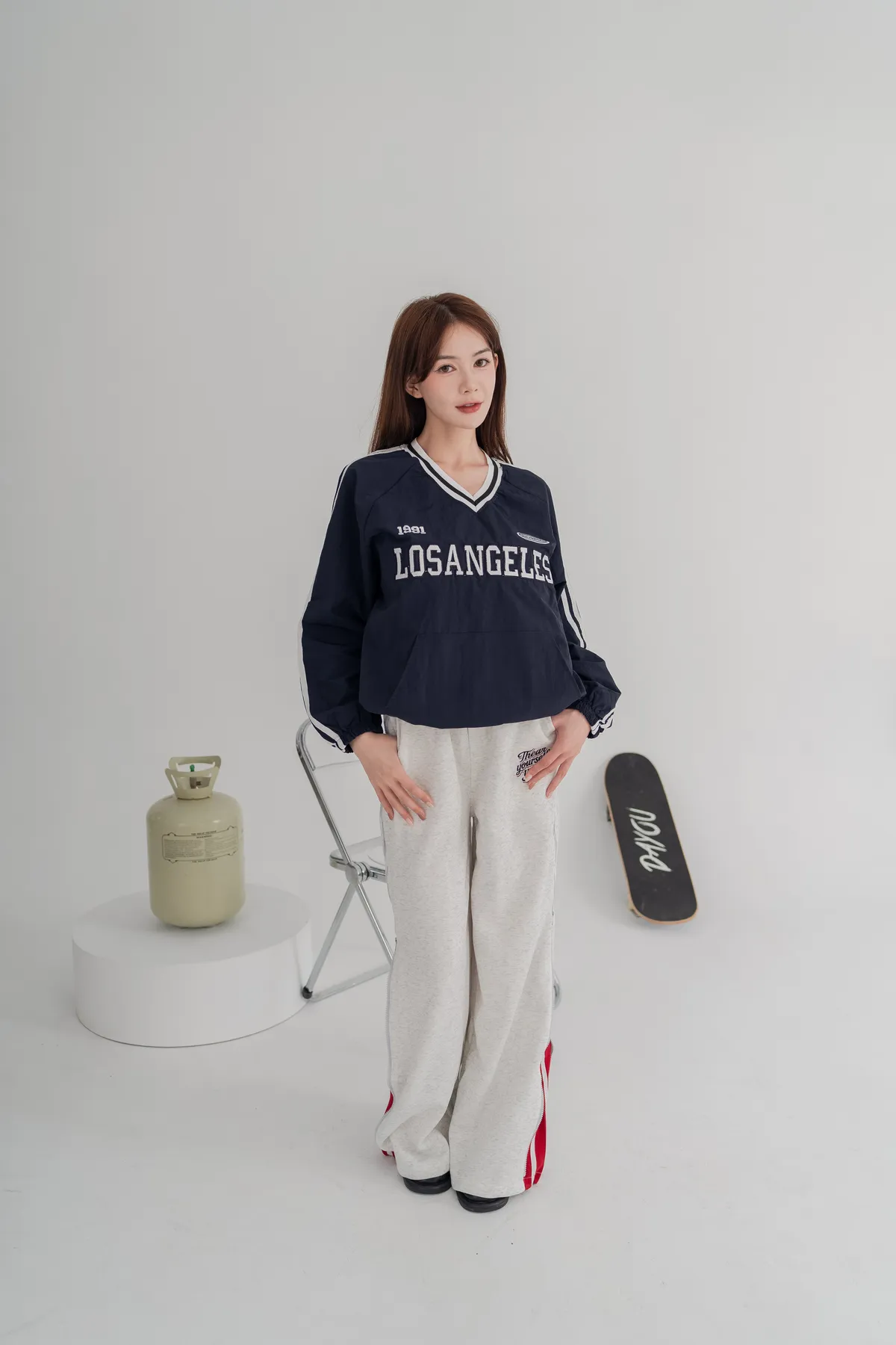 以美式學院風為靈感,這款上衣結合復古運動元素與俐落剪裁,胸前立體字母刺繡展現個性態度,V領撞色條紋設計修飾臉型與頸部線條,落肩版型與抽繩下擺設計,穿出自然的休閒輪廓。