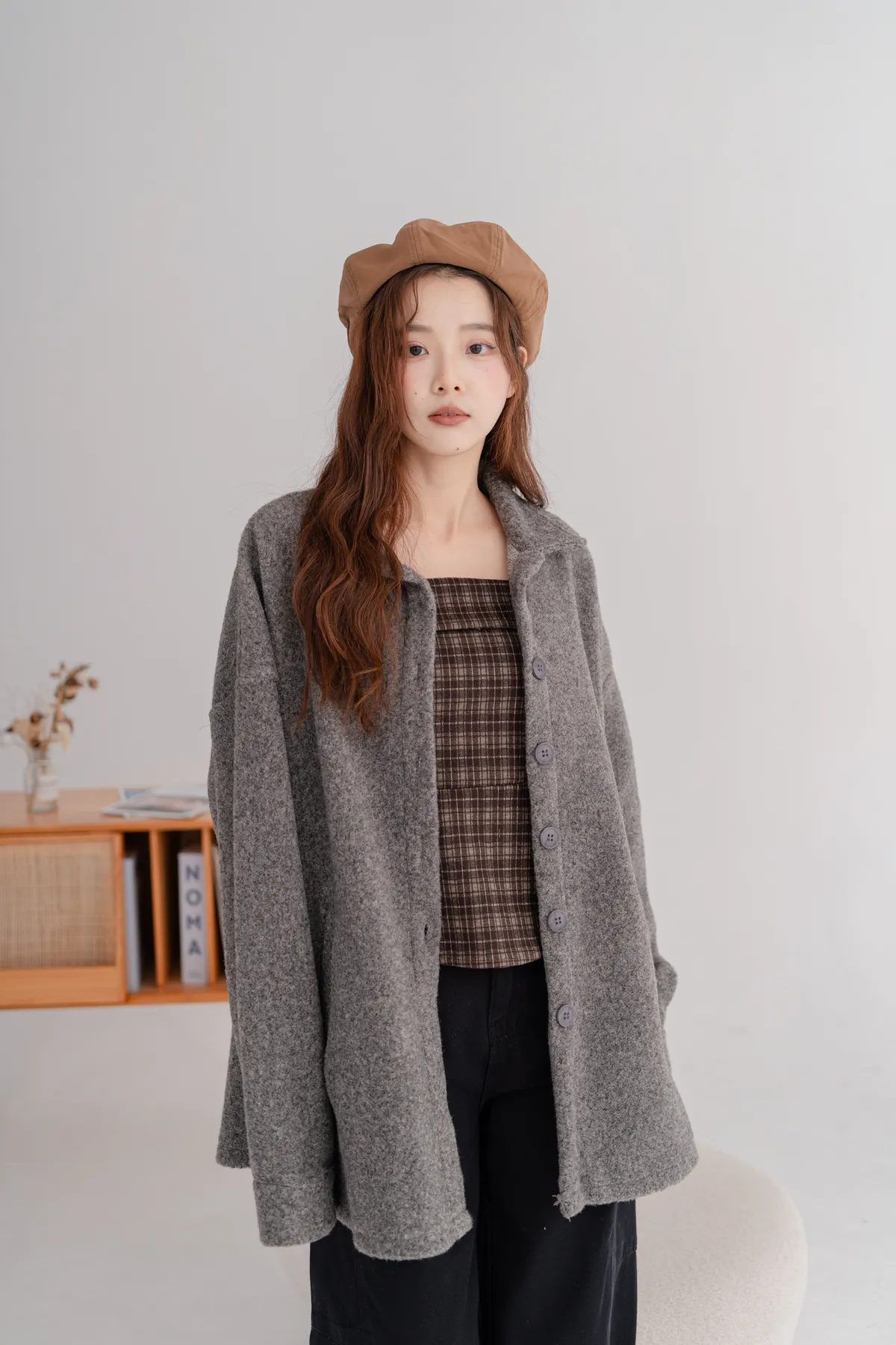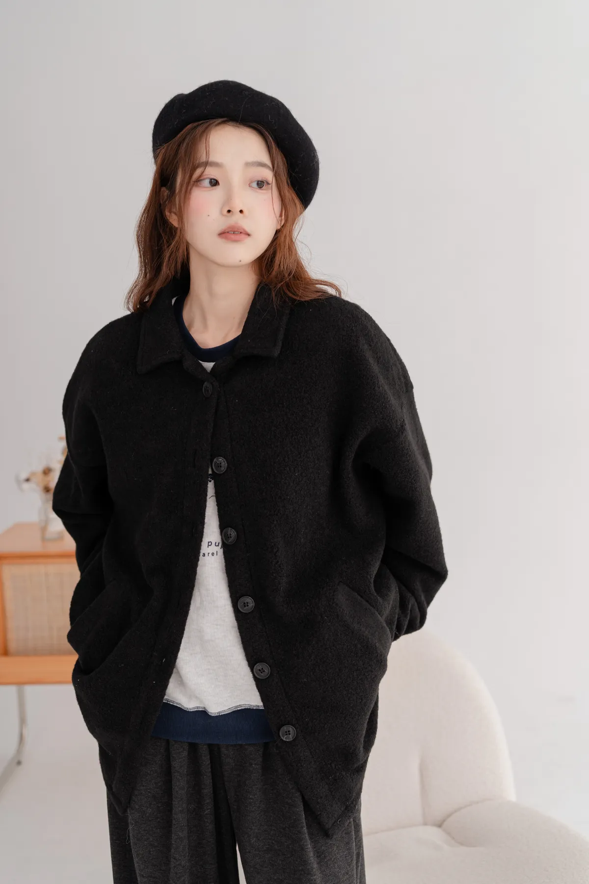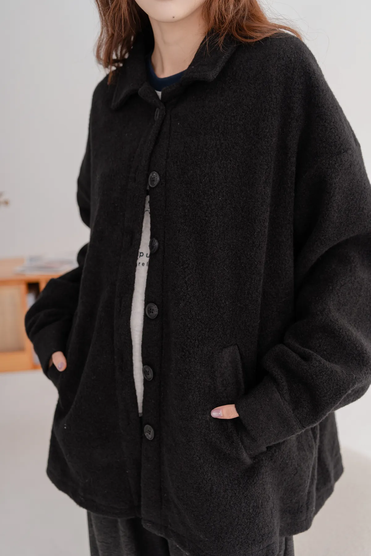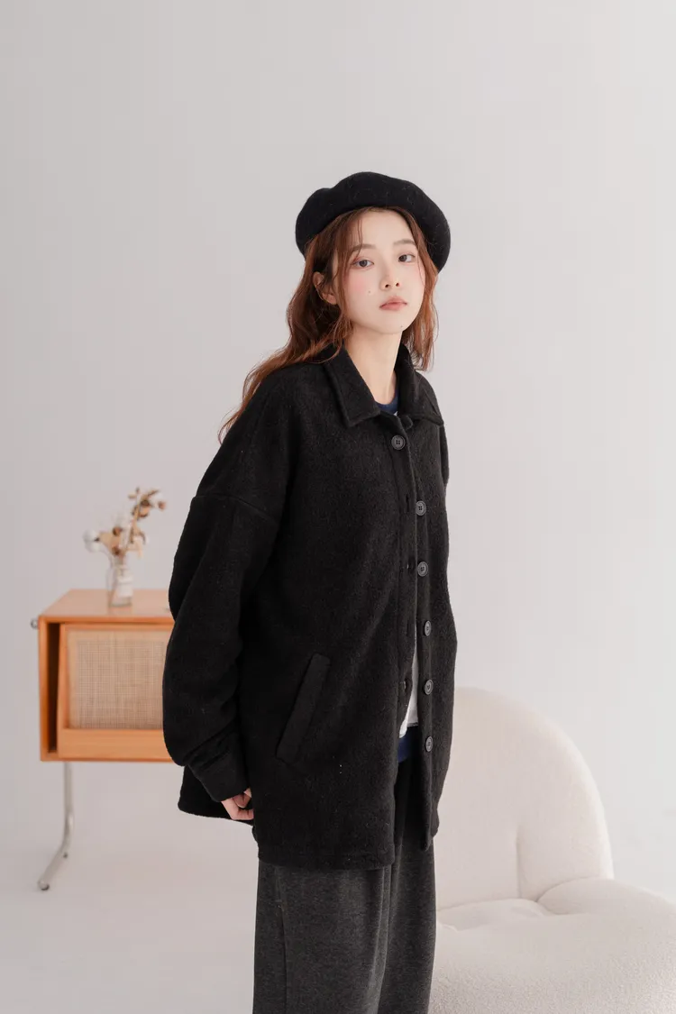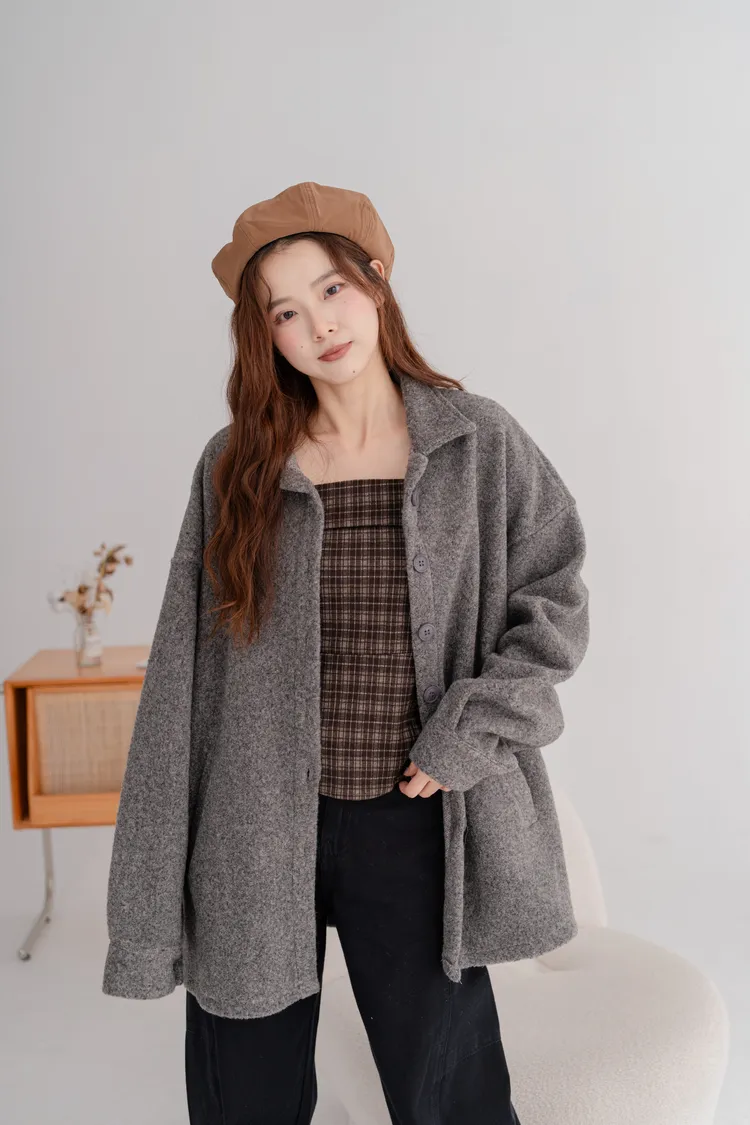 毛料寬鬆襯衫外套