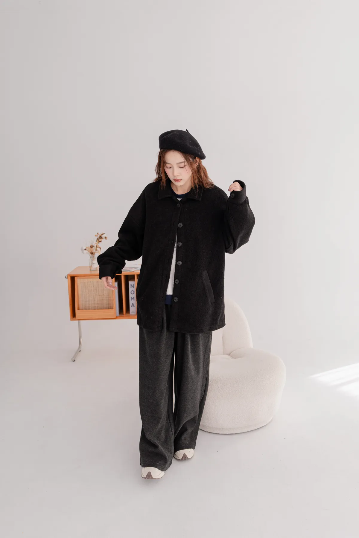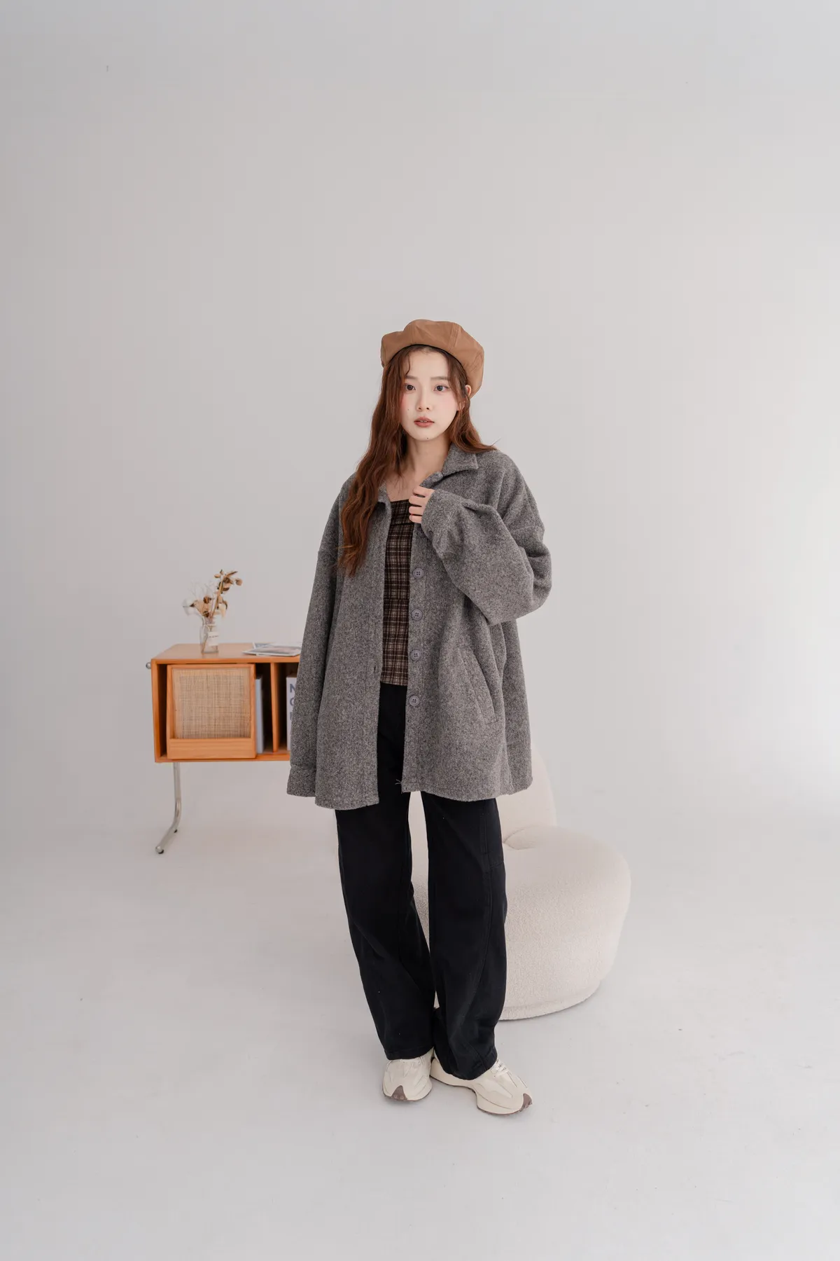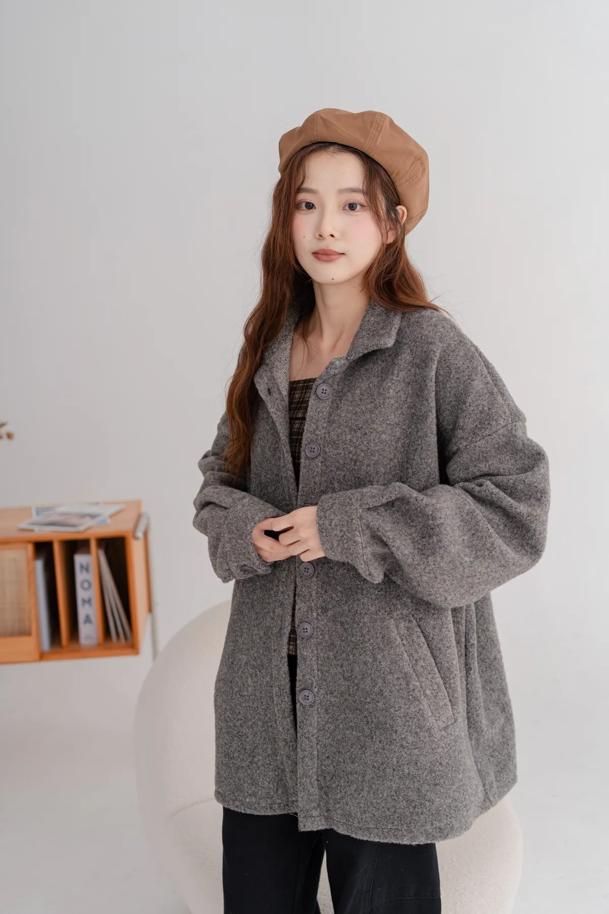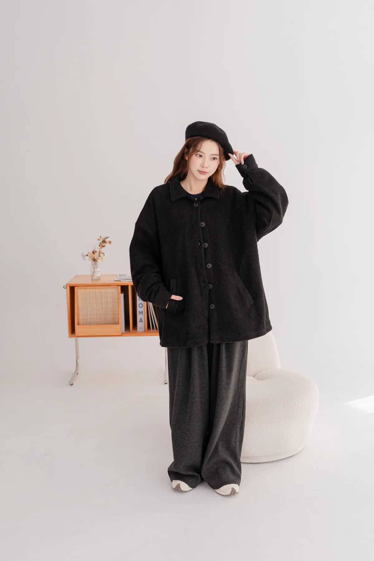 毛料寬鬆襯衫外套
