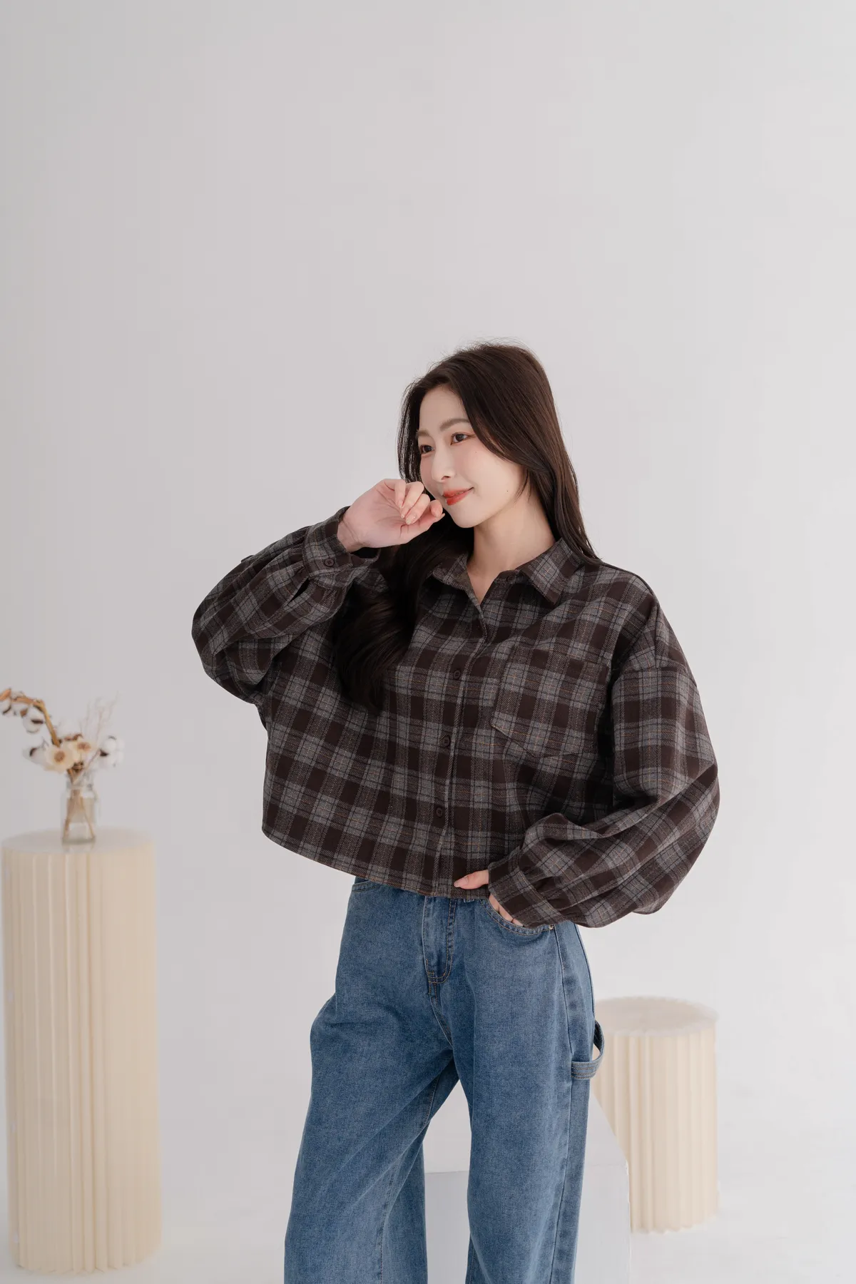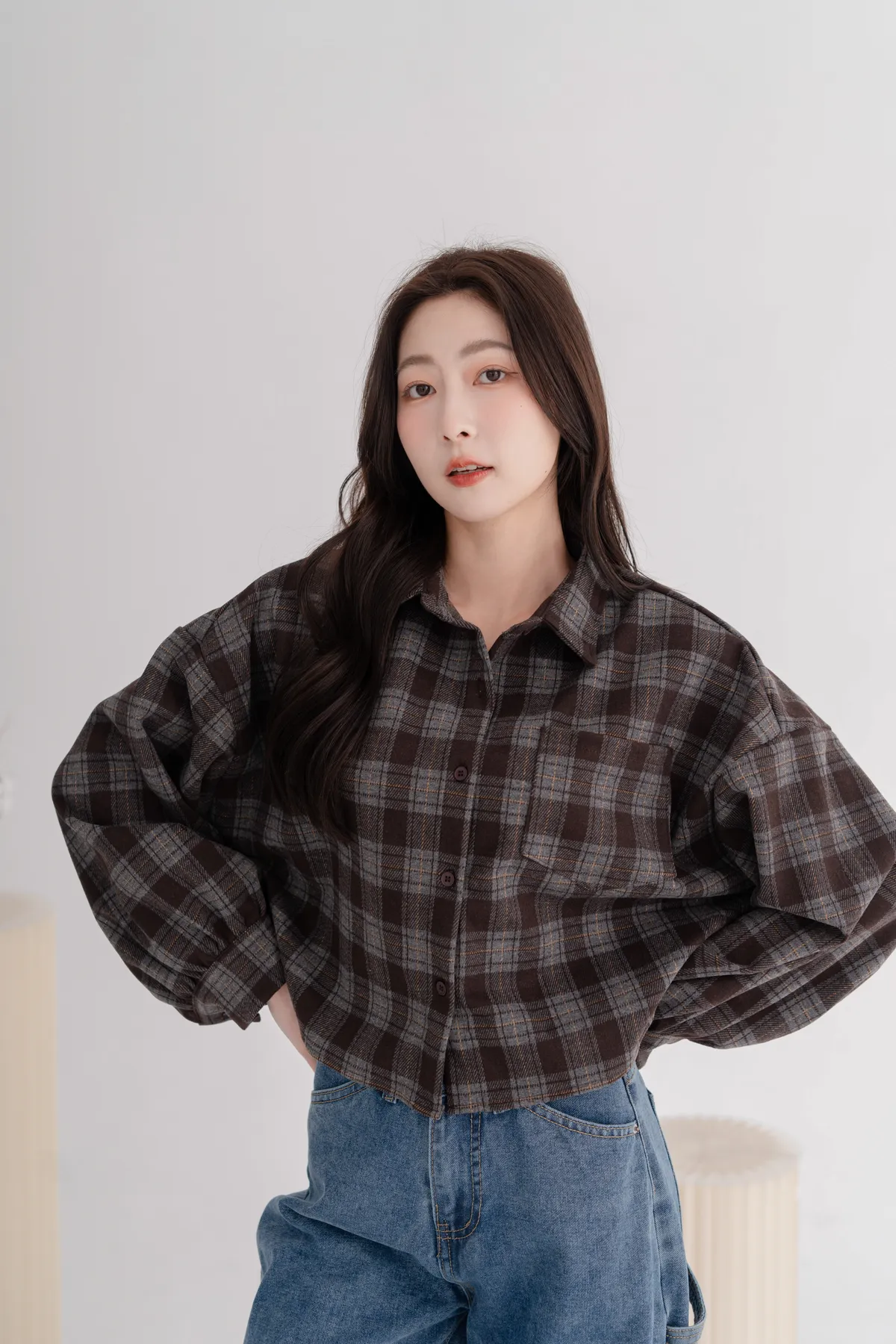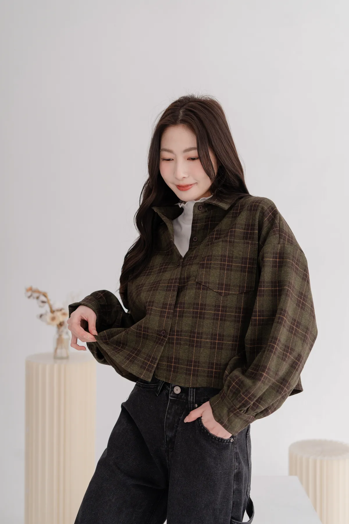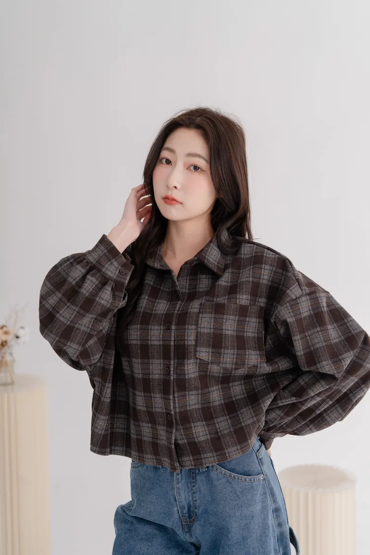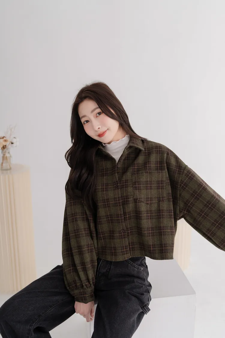 毛呢格紋襯衫外套