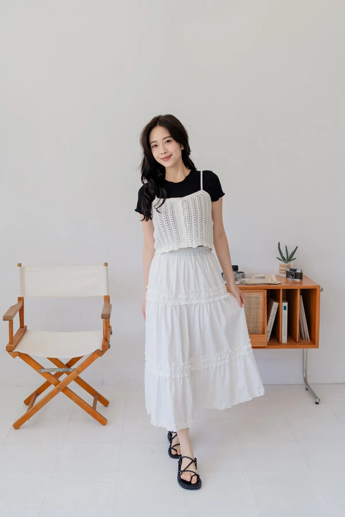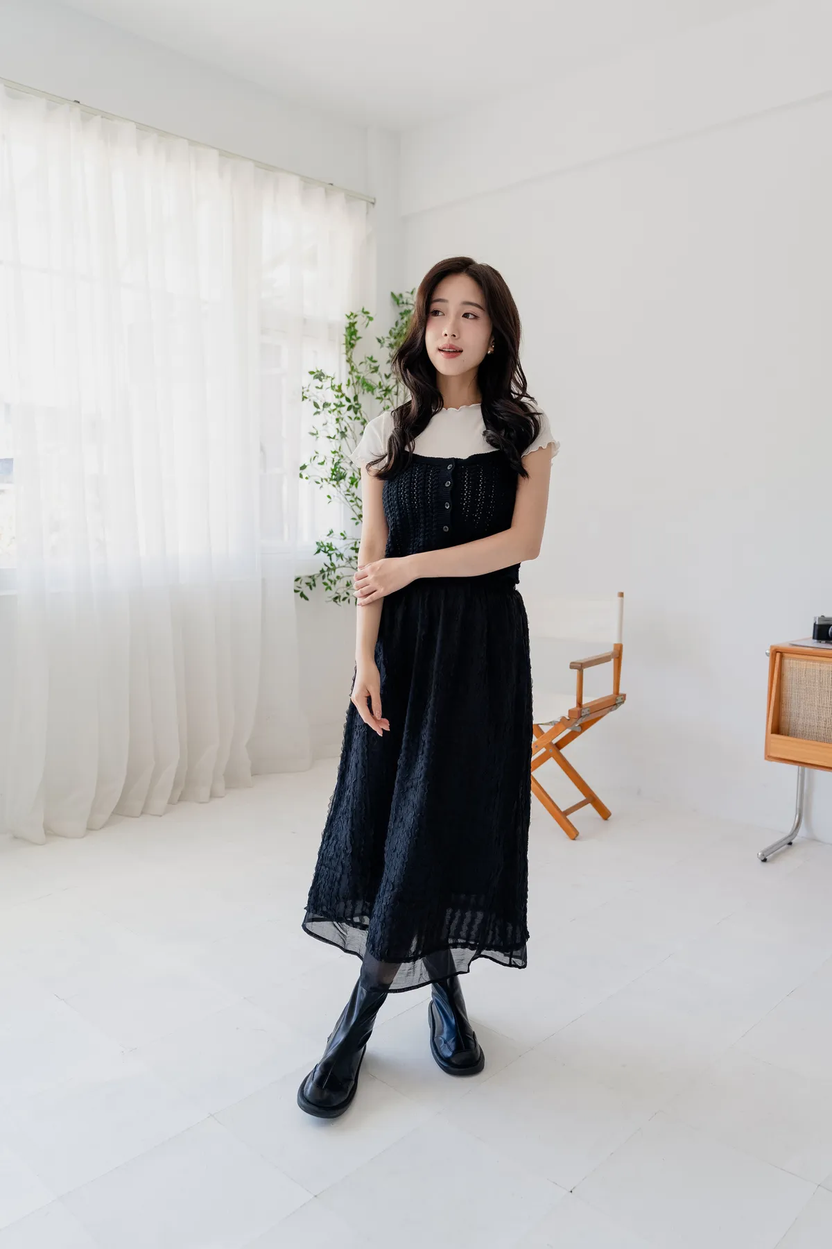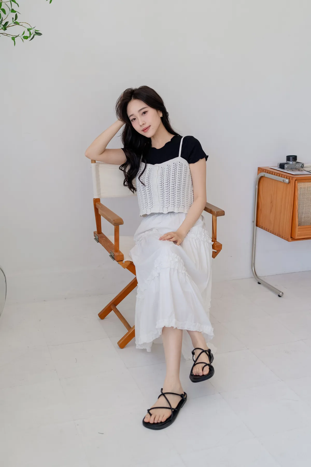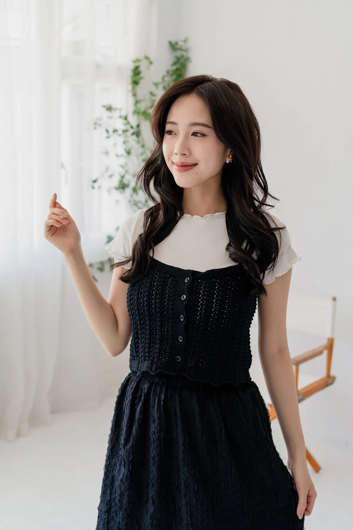 商品資訊:細緻的鏤空編織設計,帶出自然的呼吸感與夏日的輕盈氛圍;排釦點綴則增添細節層次,讓基本單品也能展現精緻感。