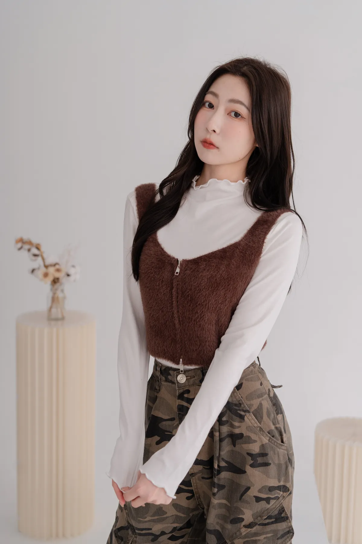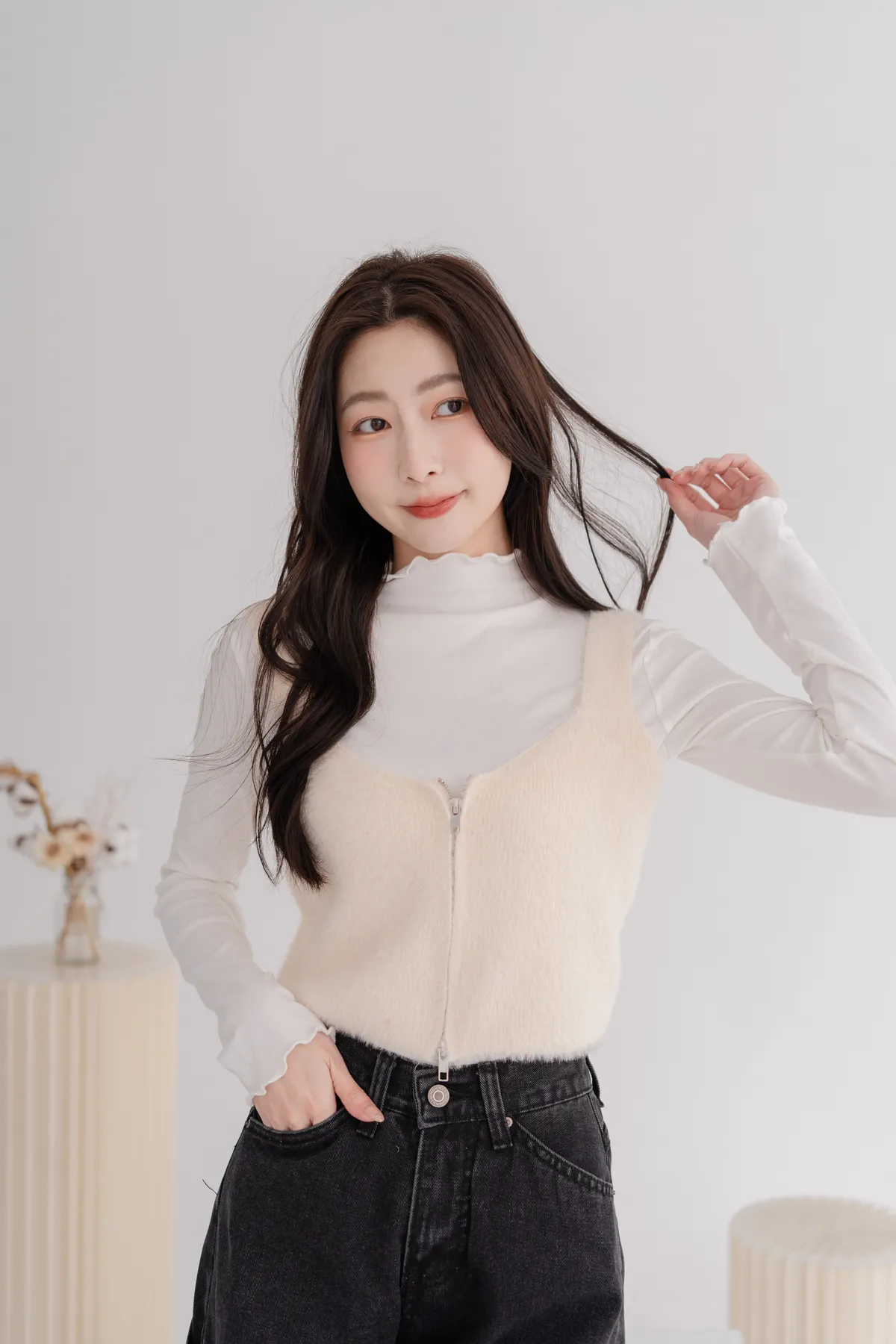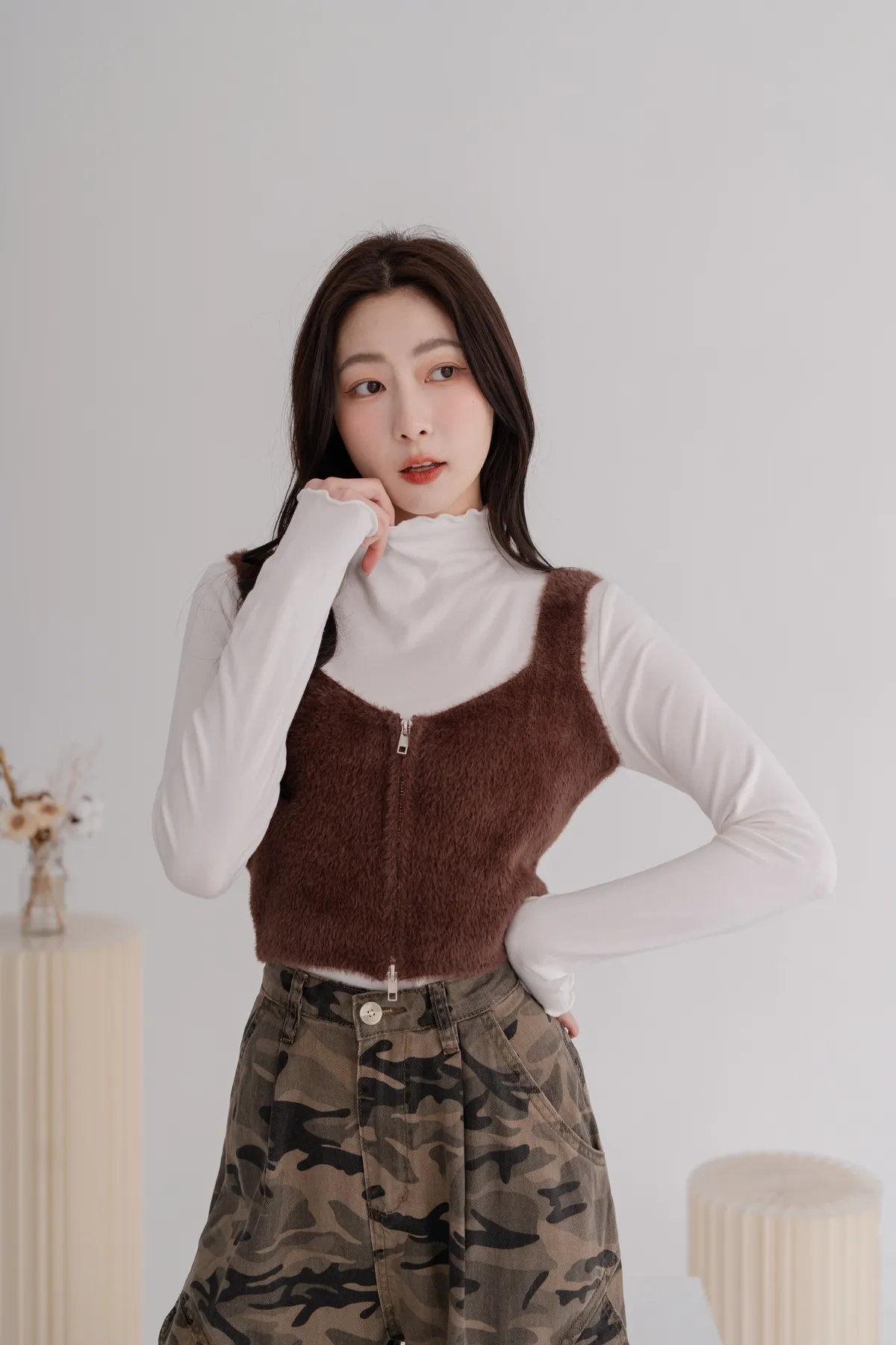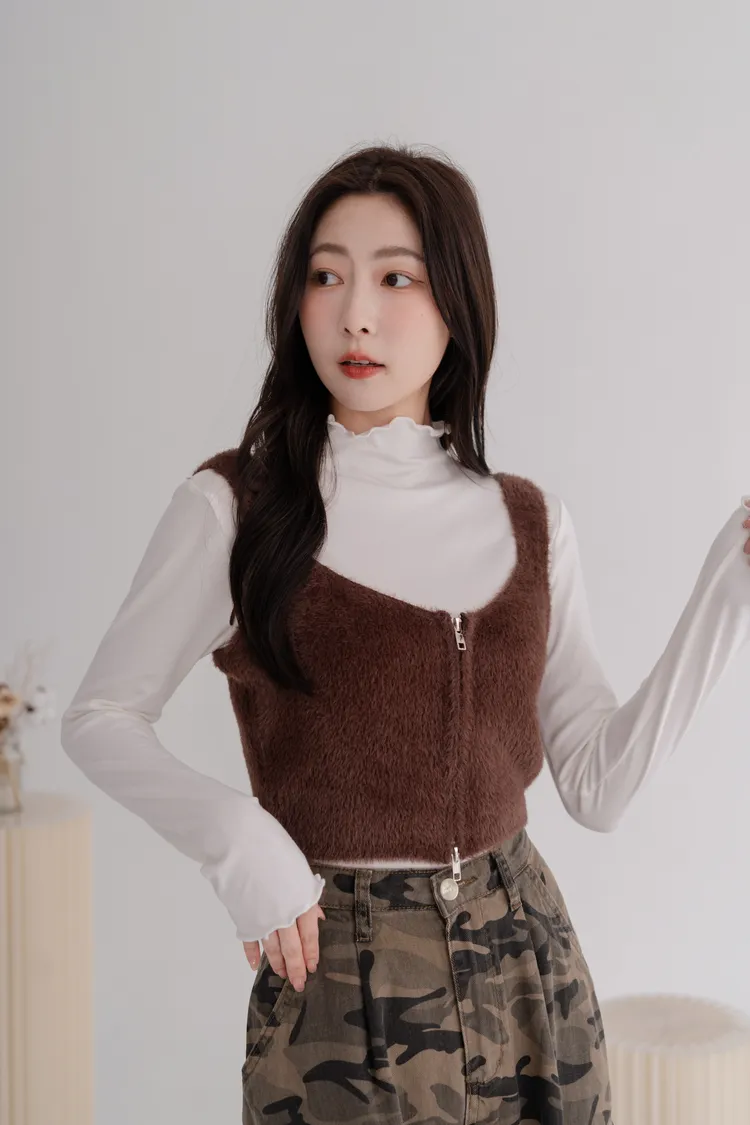 軟毛雙拉鍊短版背心