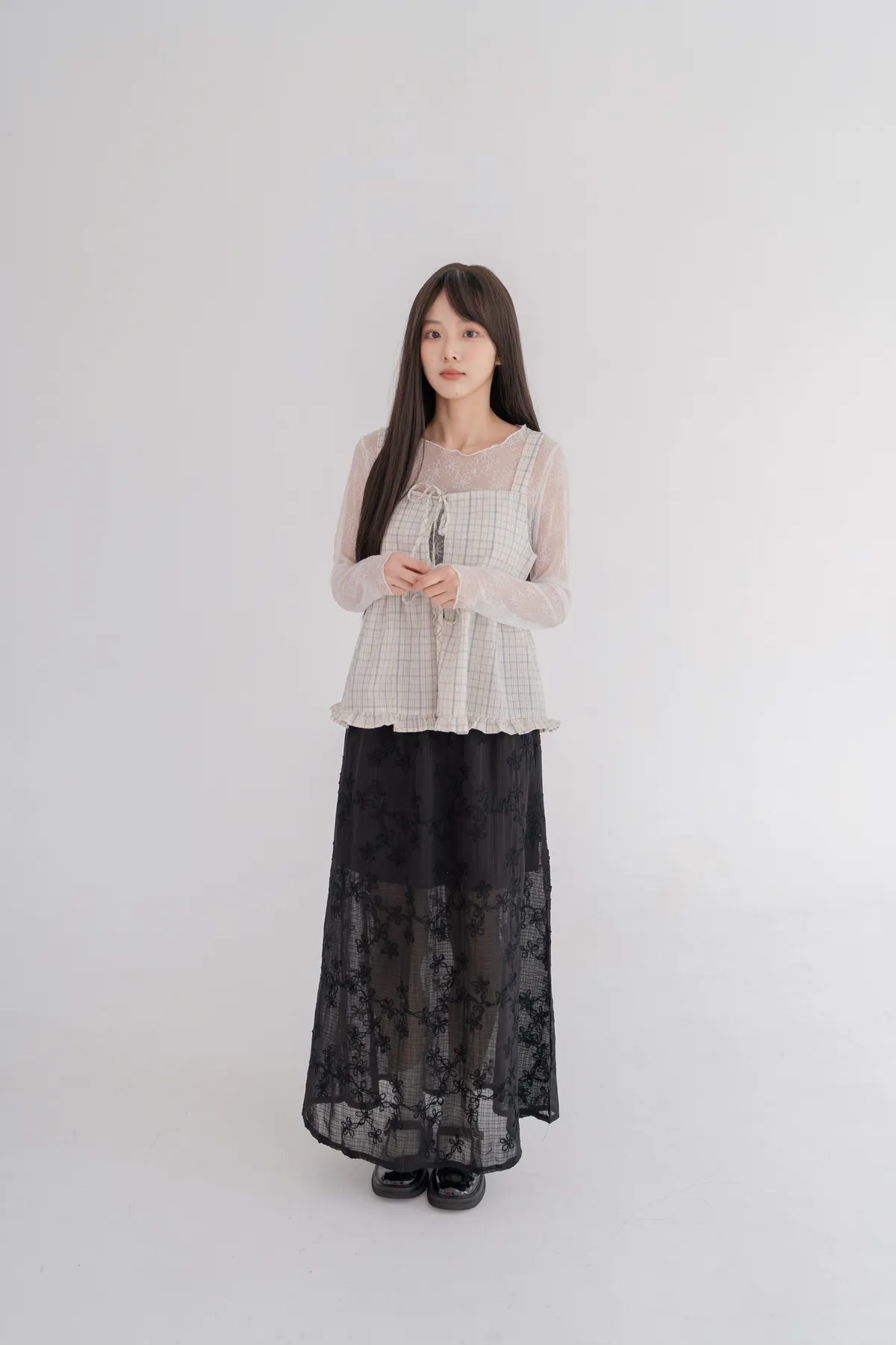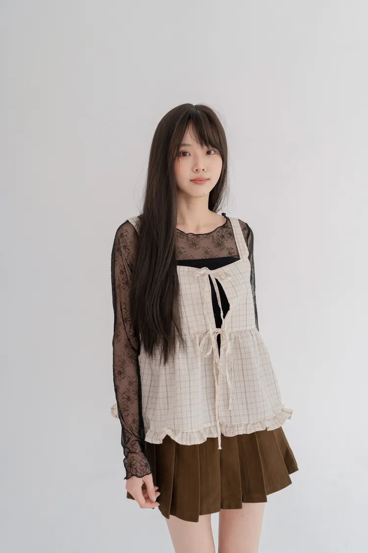 *衣擺處增加微小的荷葉邊剪裁,配合A-Line的寬鬆版型,能巧妙遮蓋腹部線條