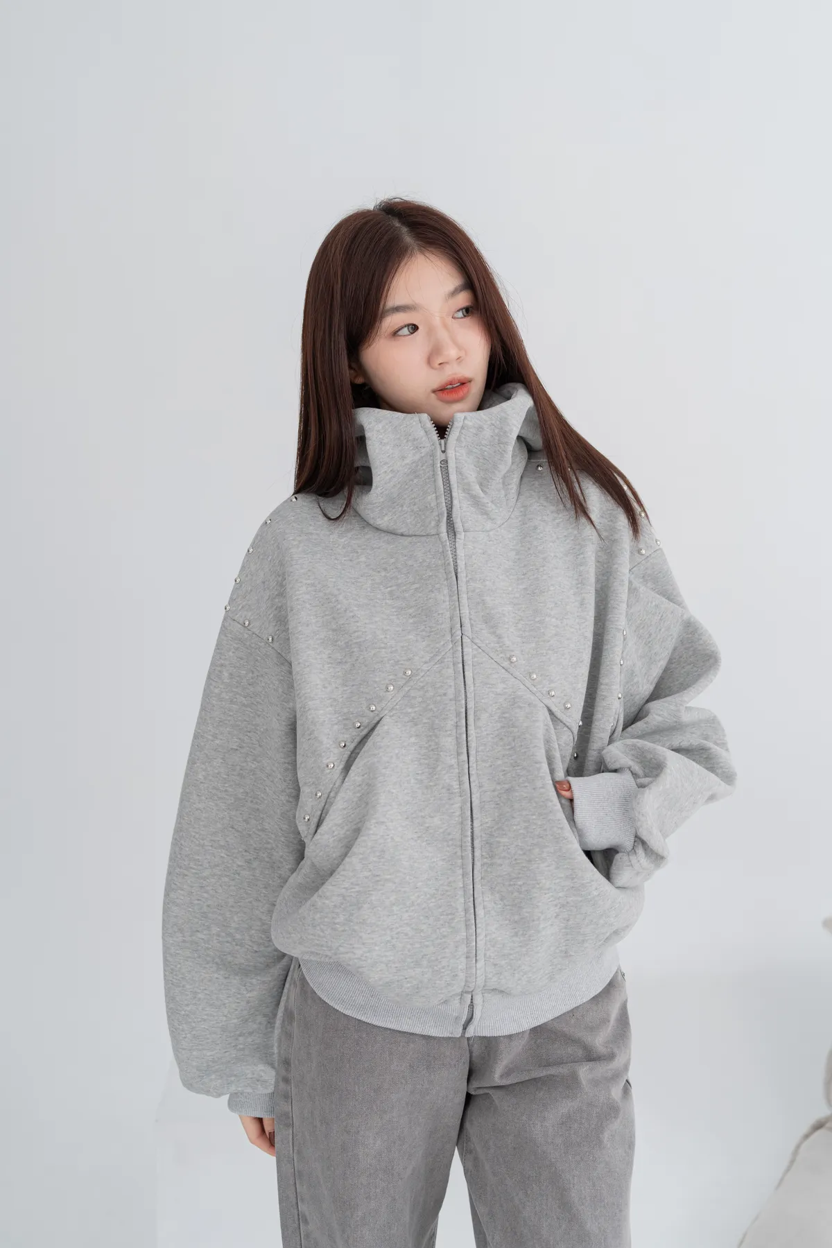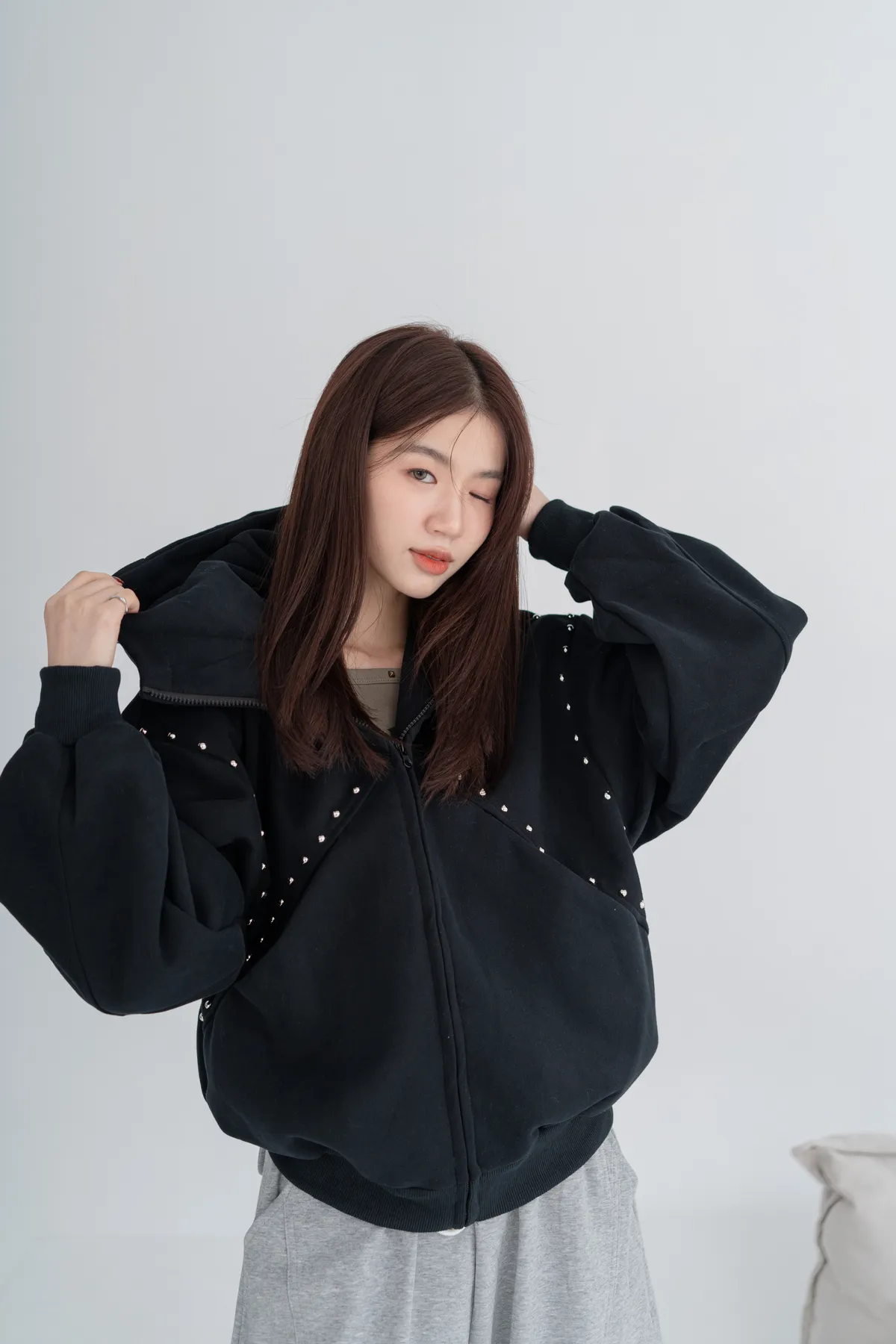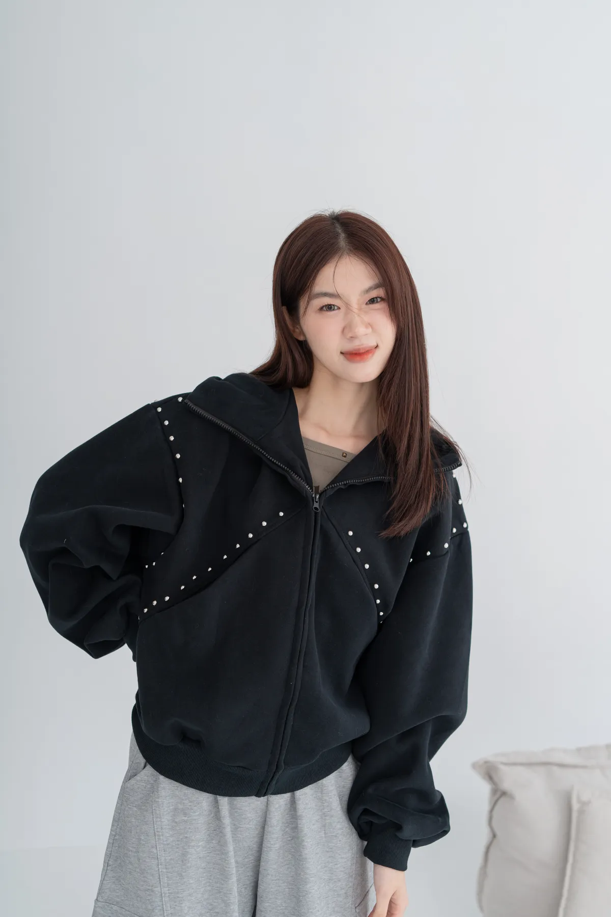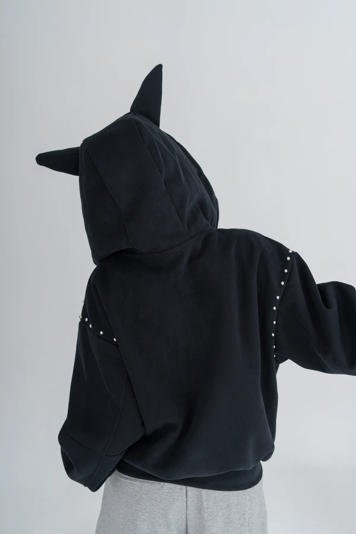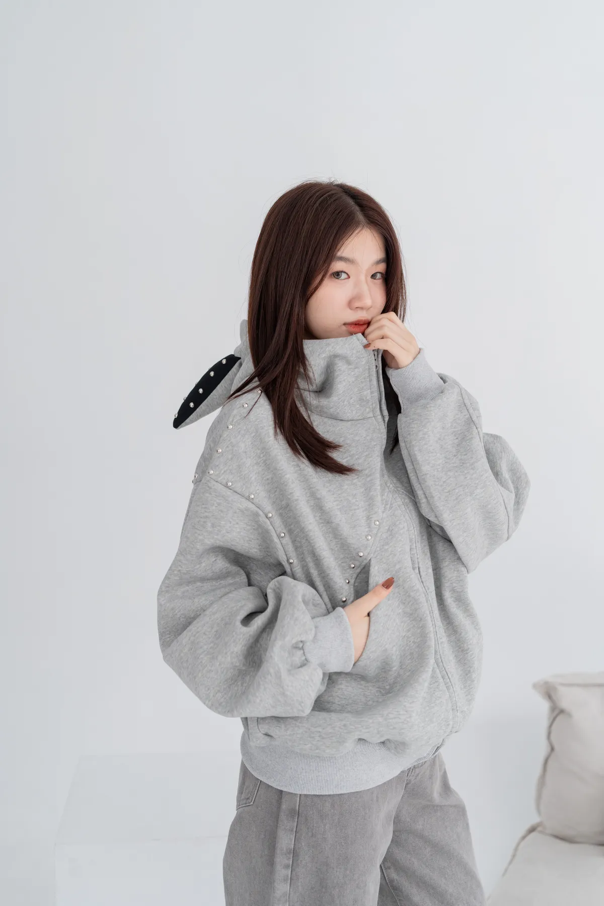 立體耳朵造型,加上金屬鉚釘細節,瞬間把可愛與帥氣合而為一。寬鬆輪廓穿起來不挑人,拉鍊式設計更方便日常搭配,無論內搭運動背心、貼身上衣或簡單 T-shirt 都能強化層次感。