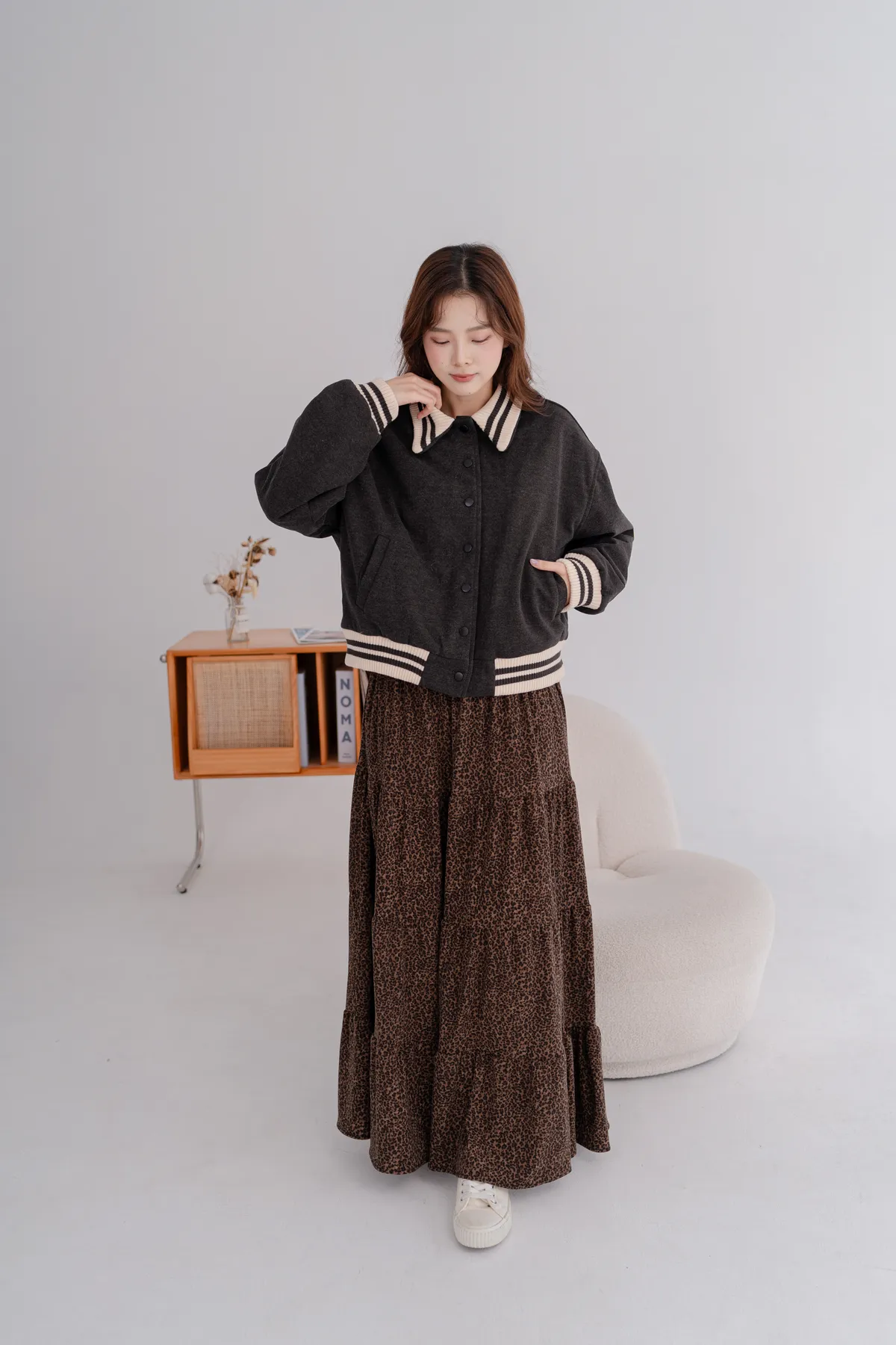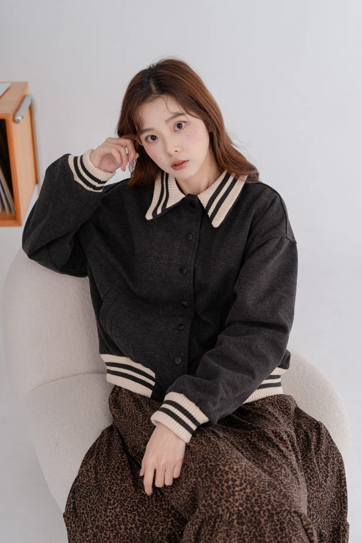 *條紋針織領口+袖口,細節提升整體造型