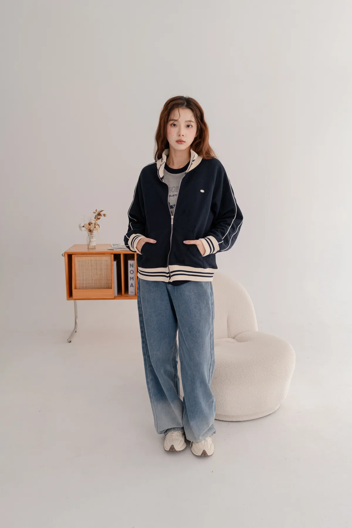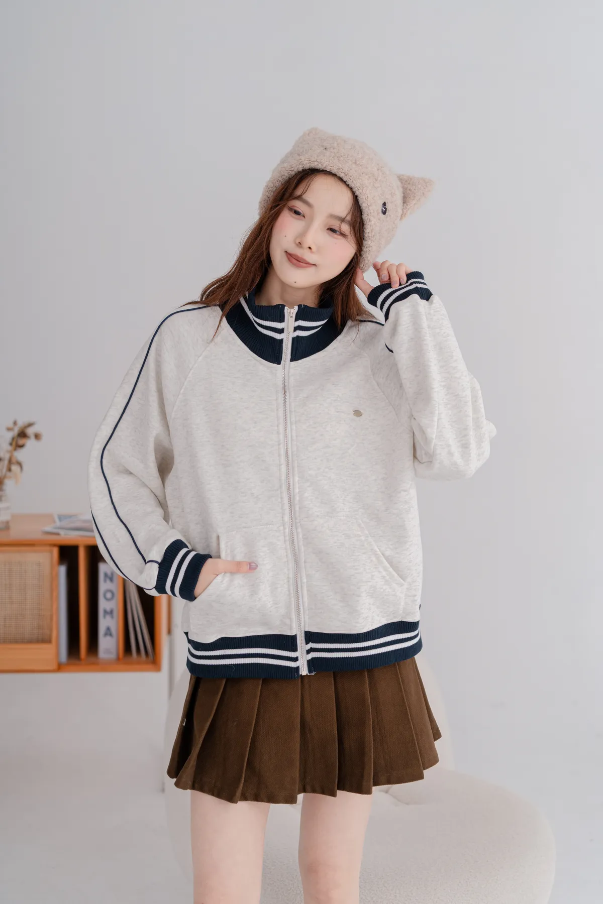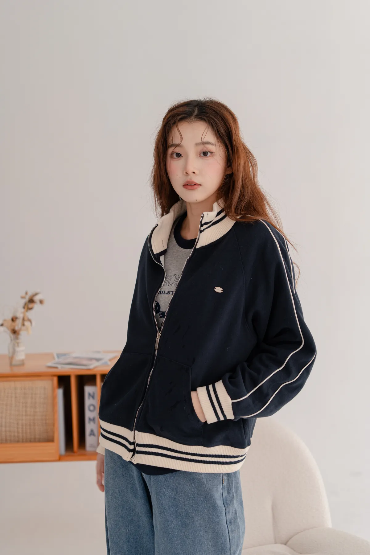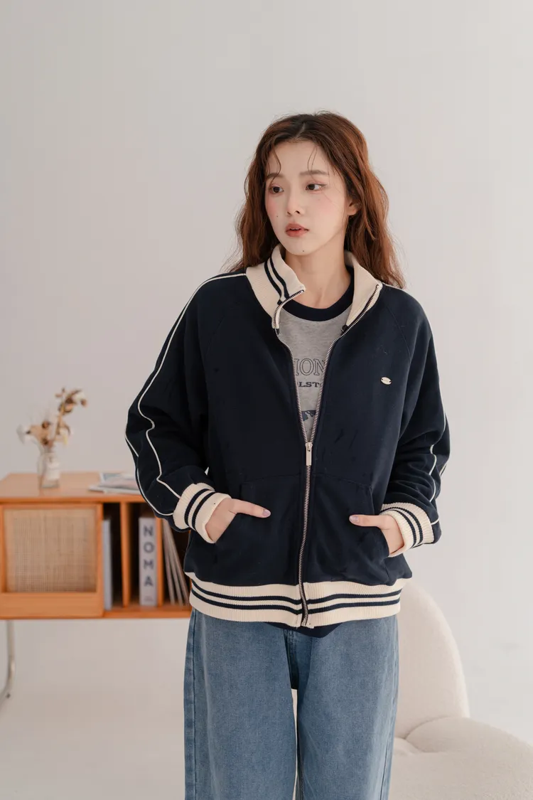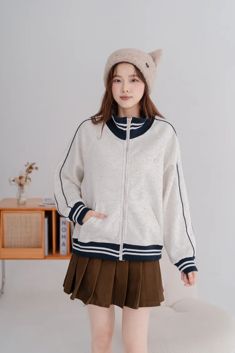 羅紋休閒拉鍊外套