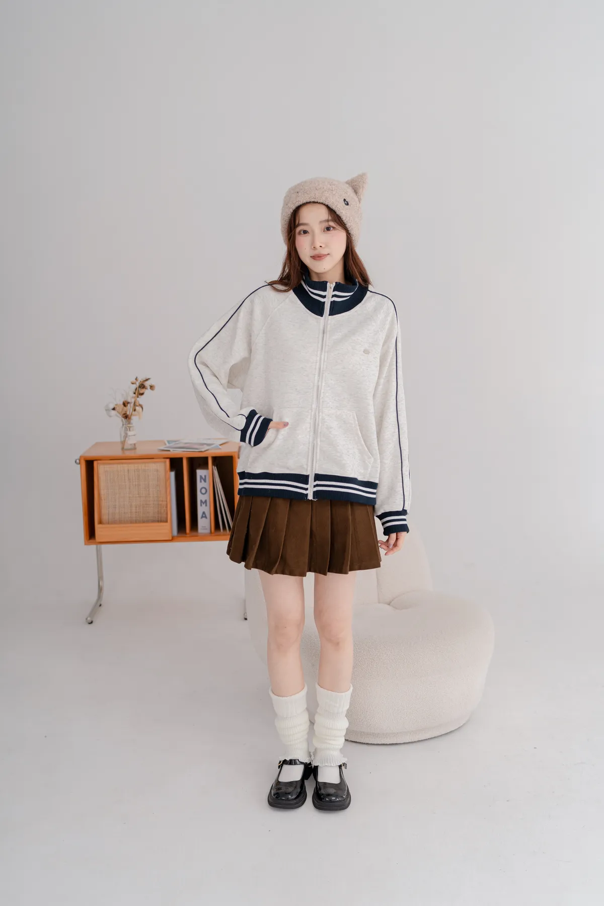 *袖口.領口.下擺,針織滾邊設計