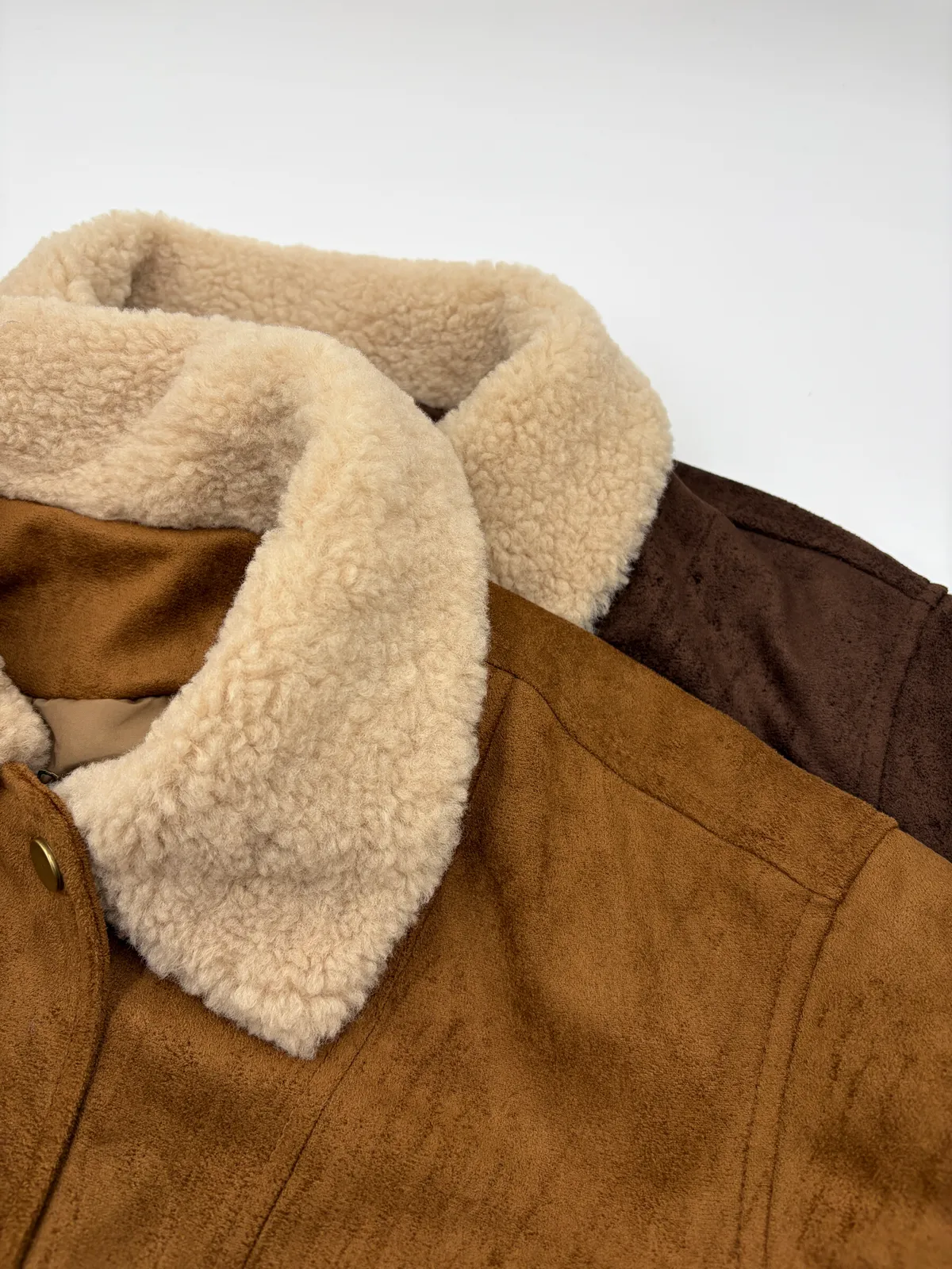 麂皮拼接羊羔毛領外套