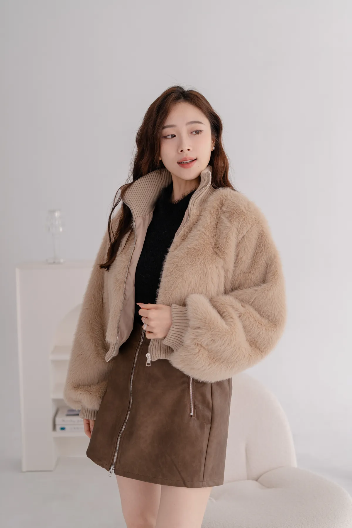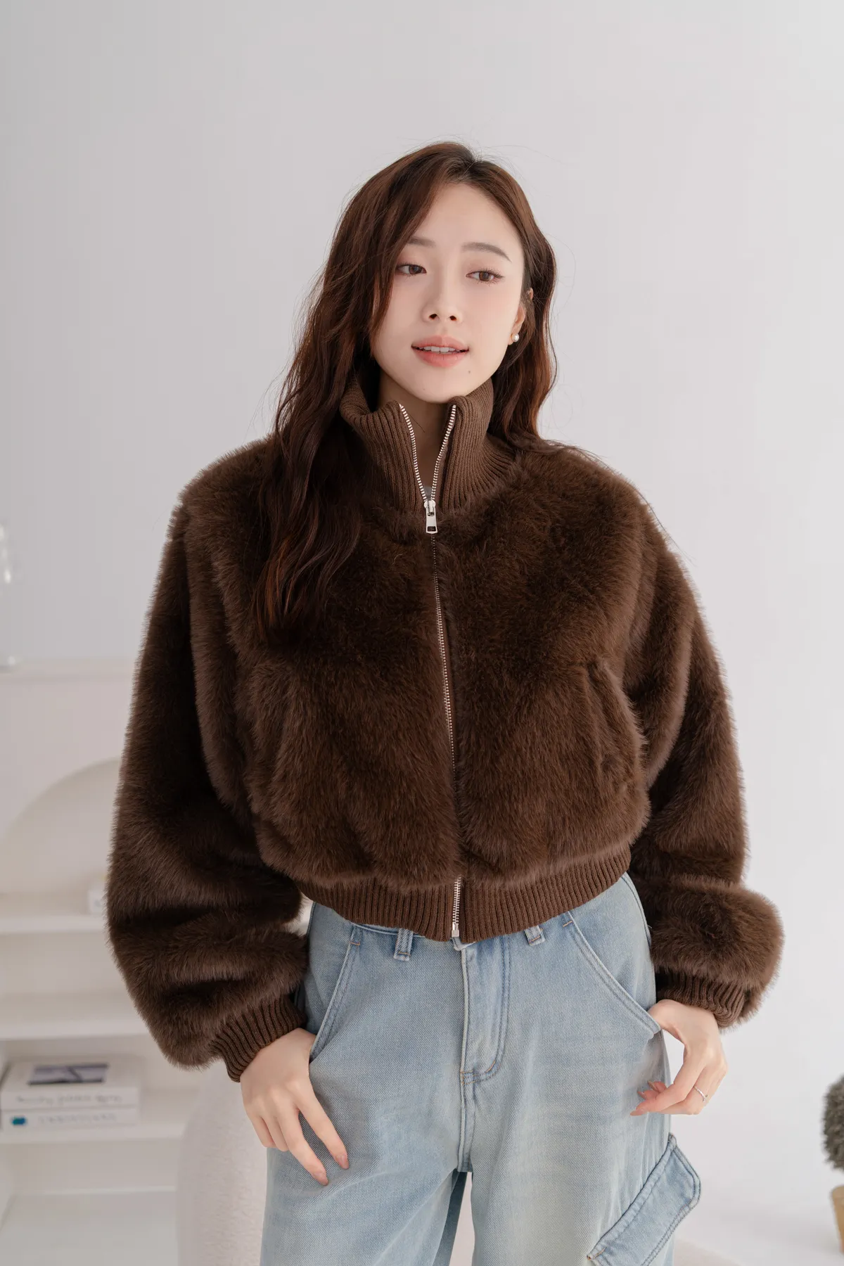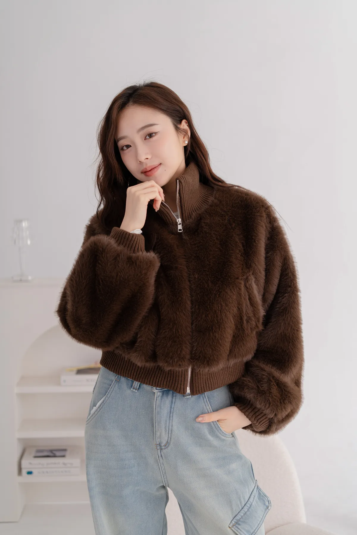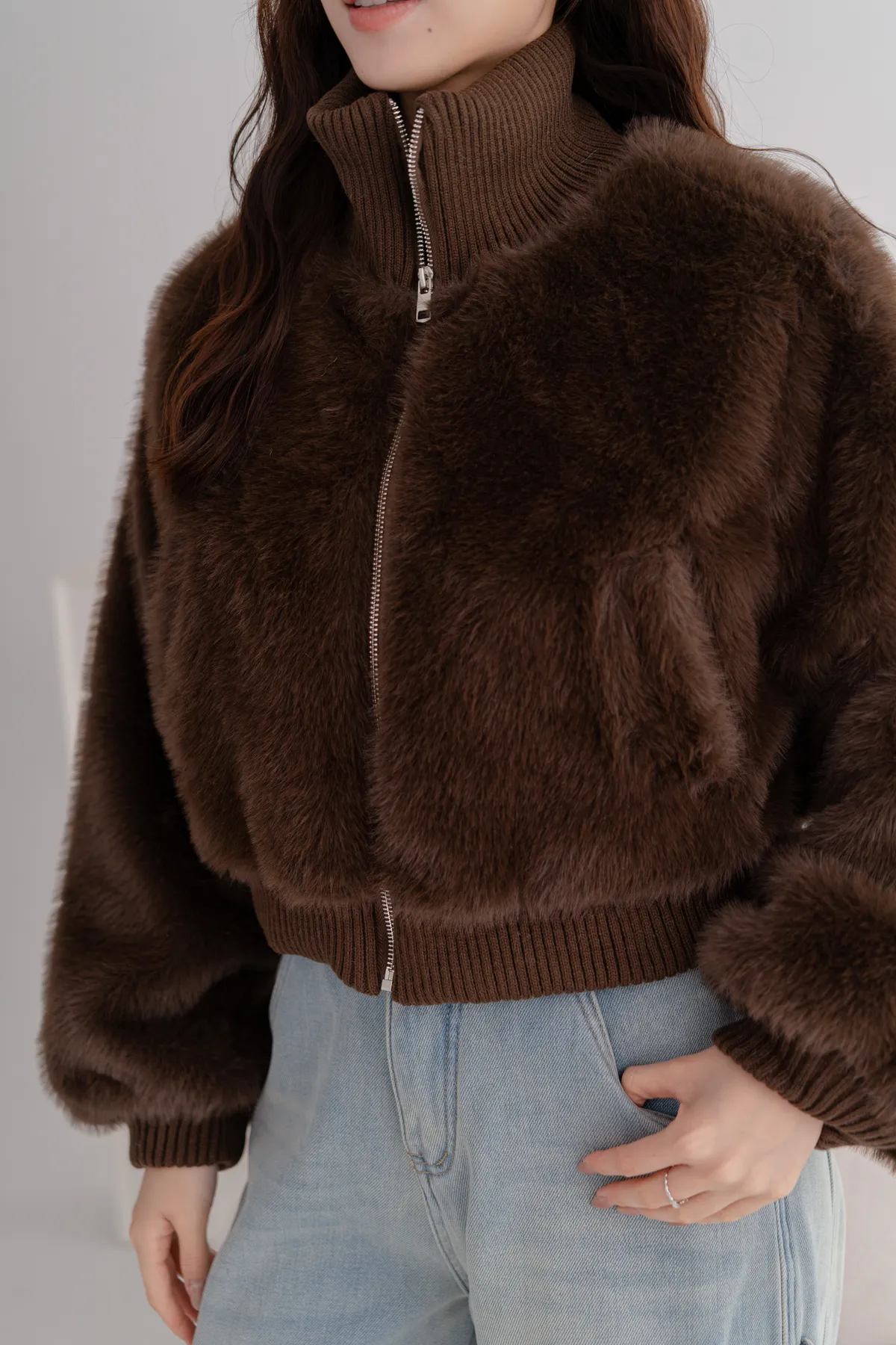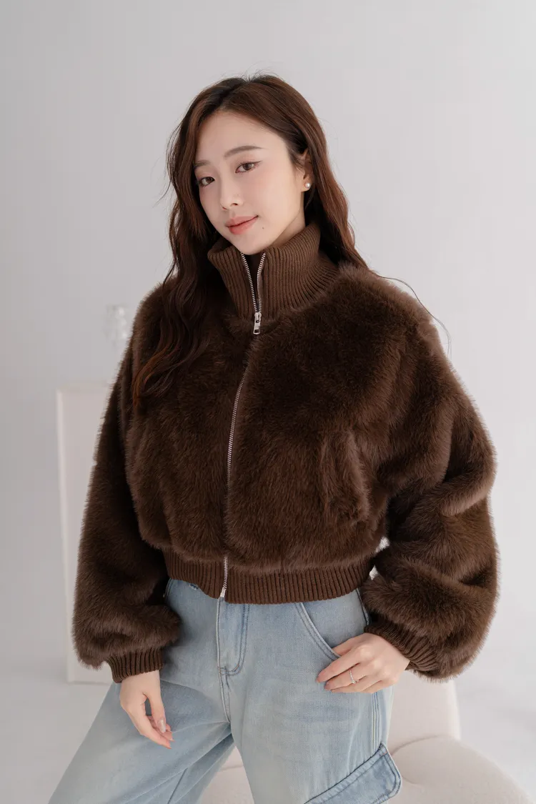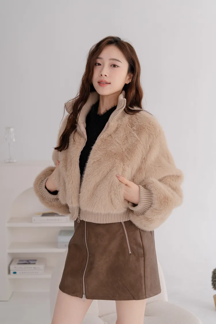立領水貂毛短版外套