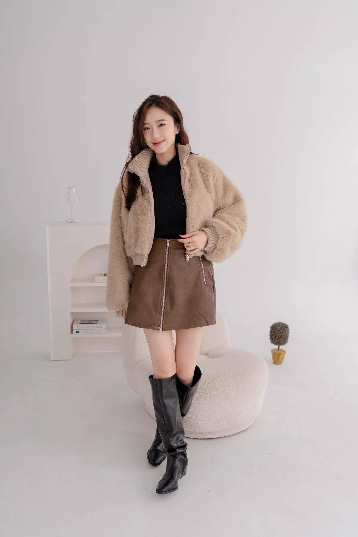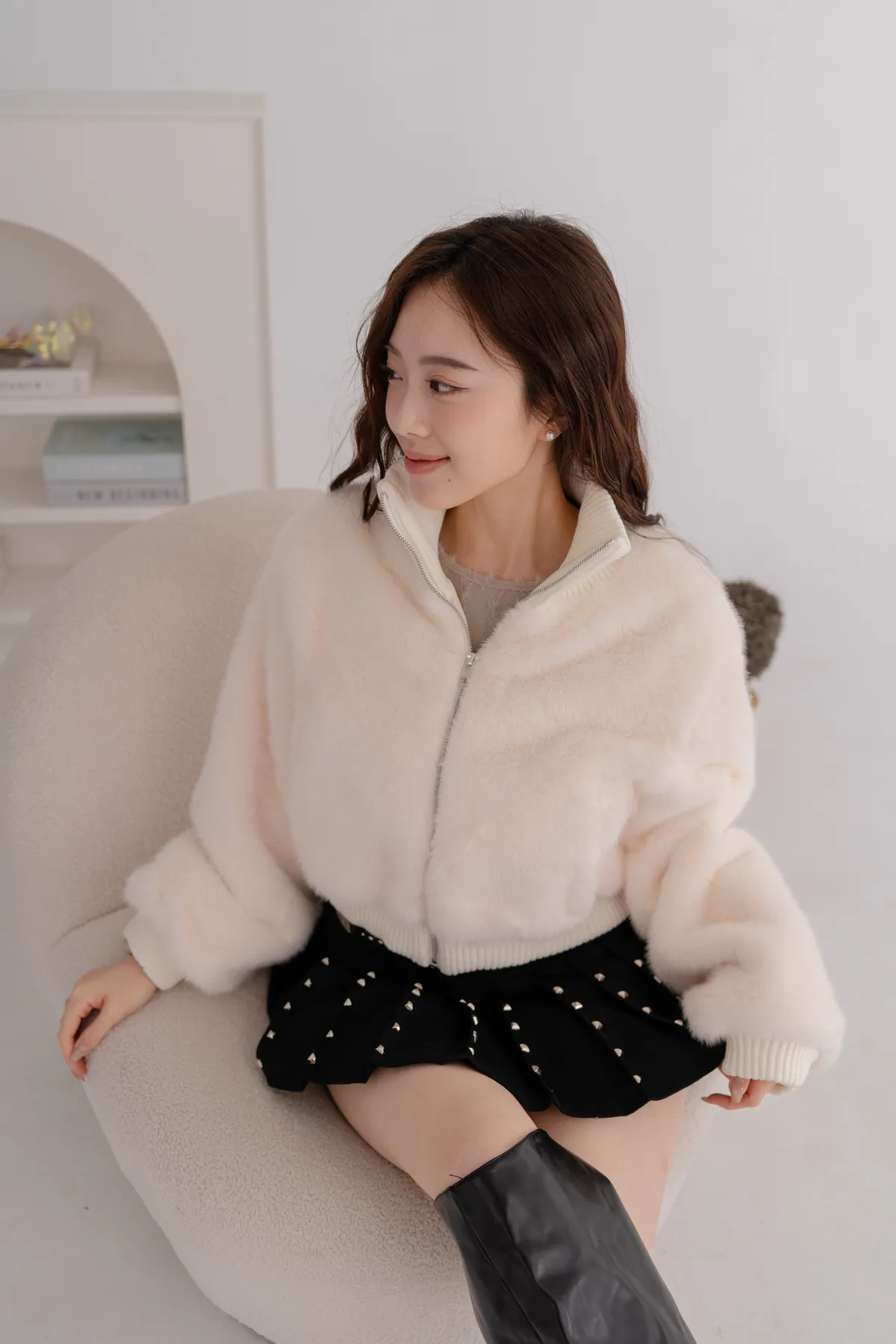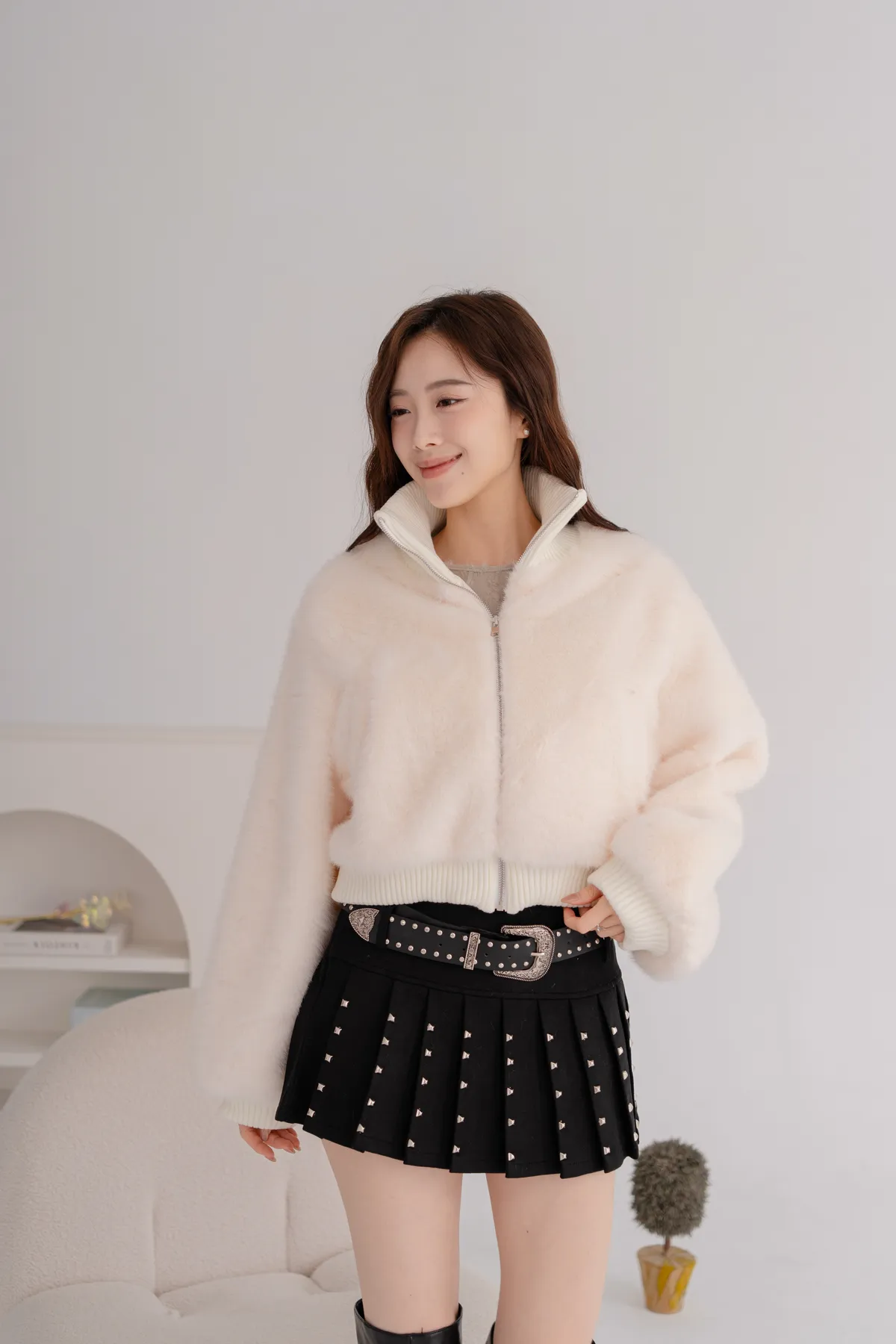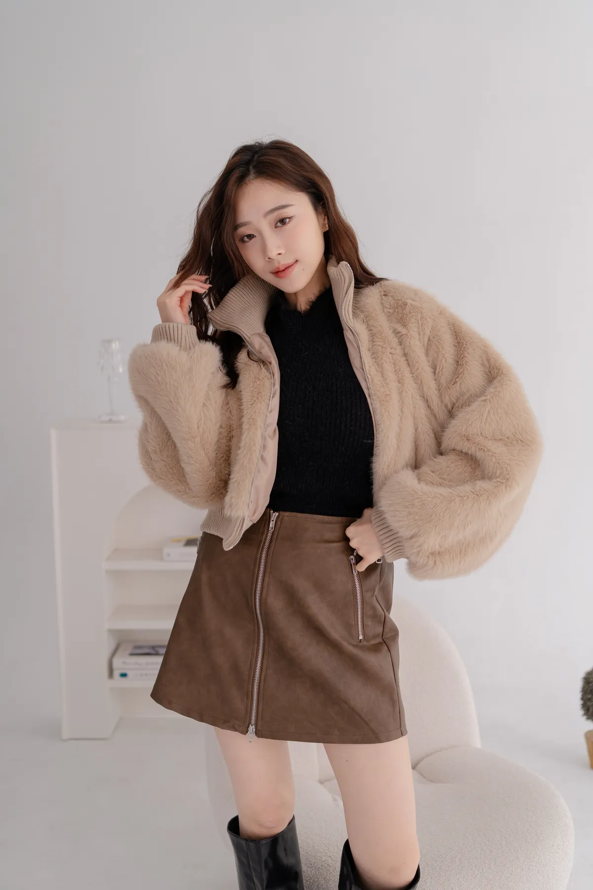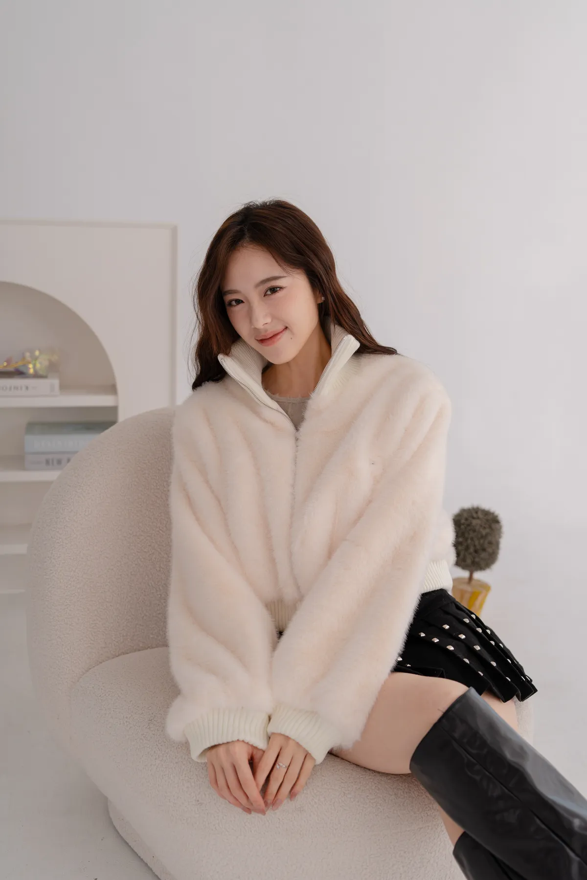 立領水貂毛短版外套