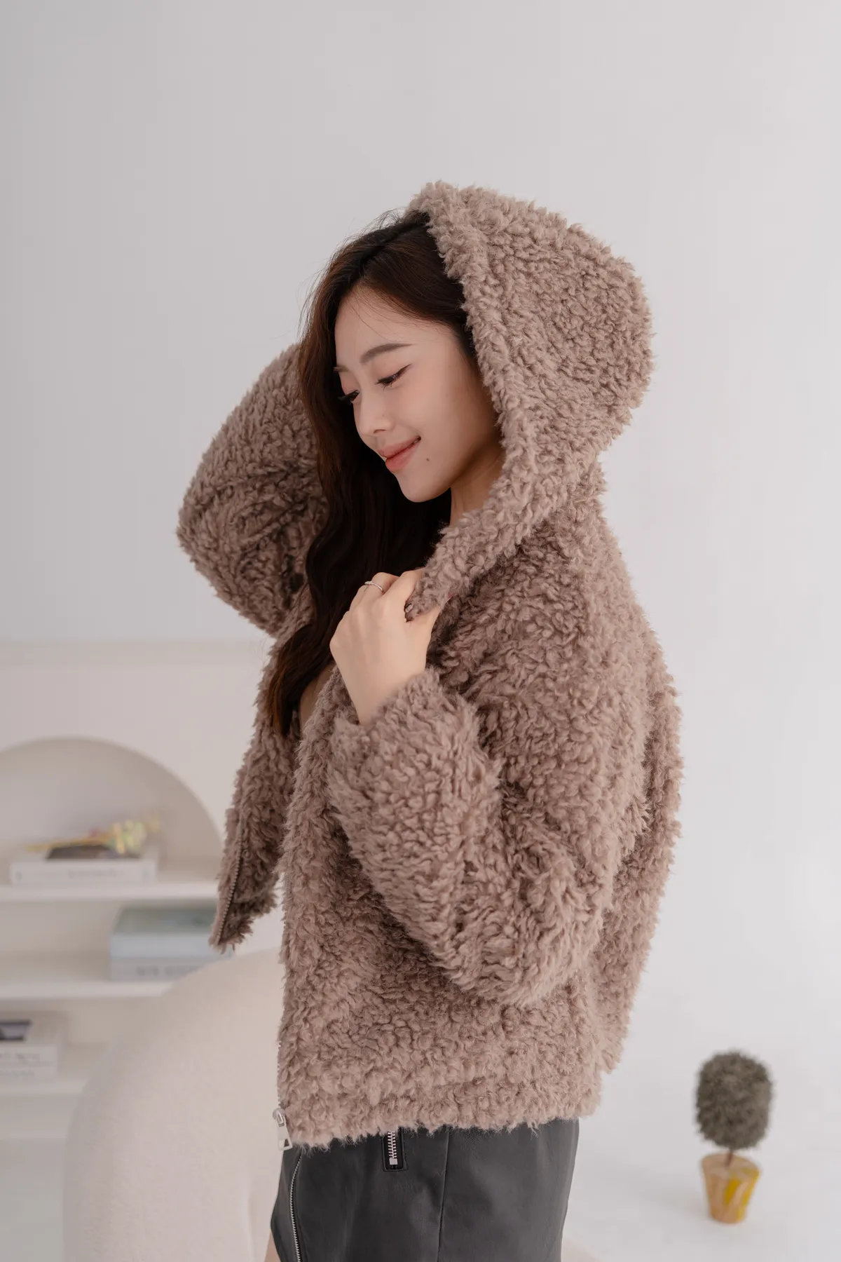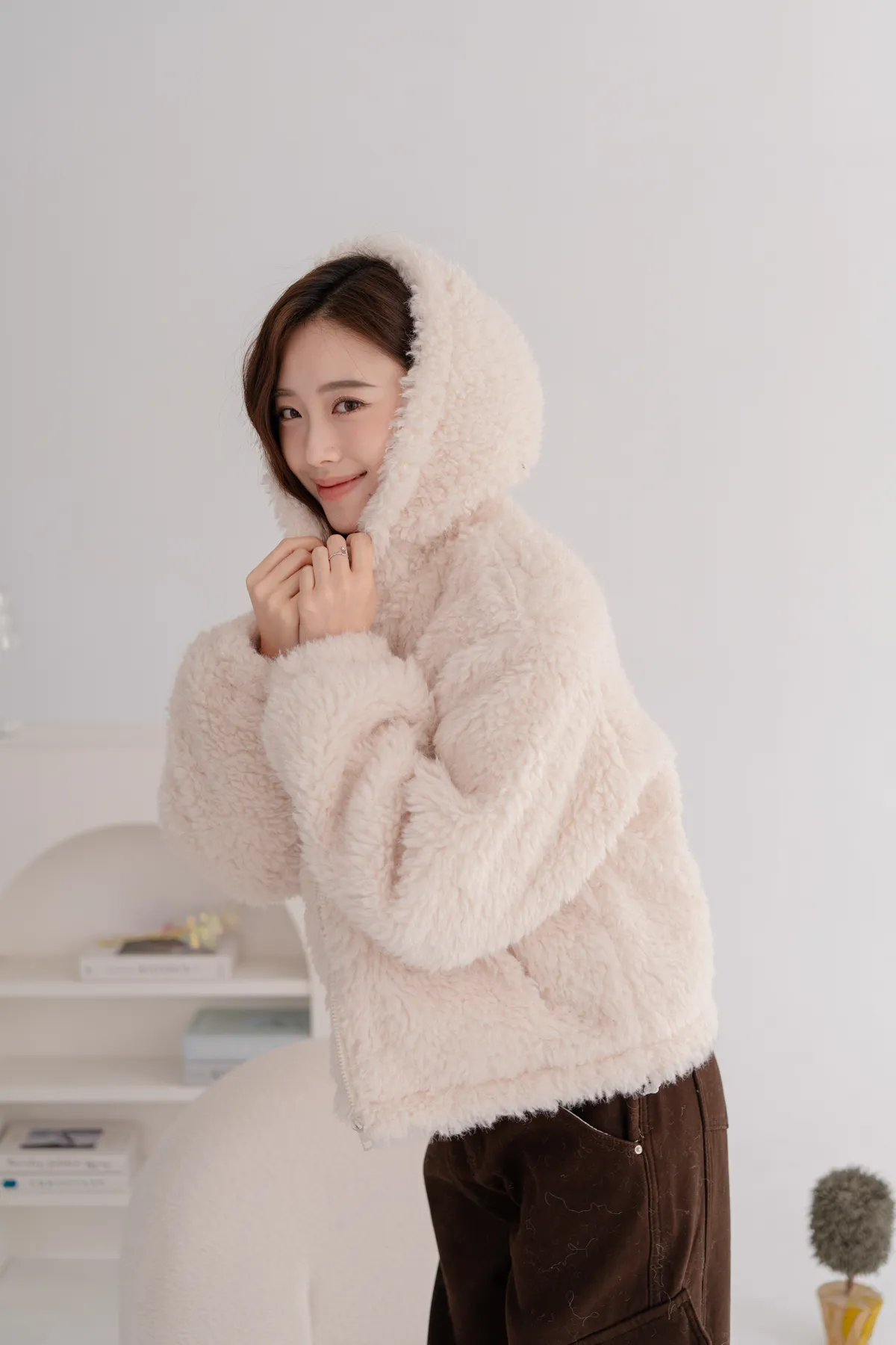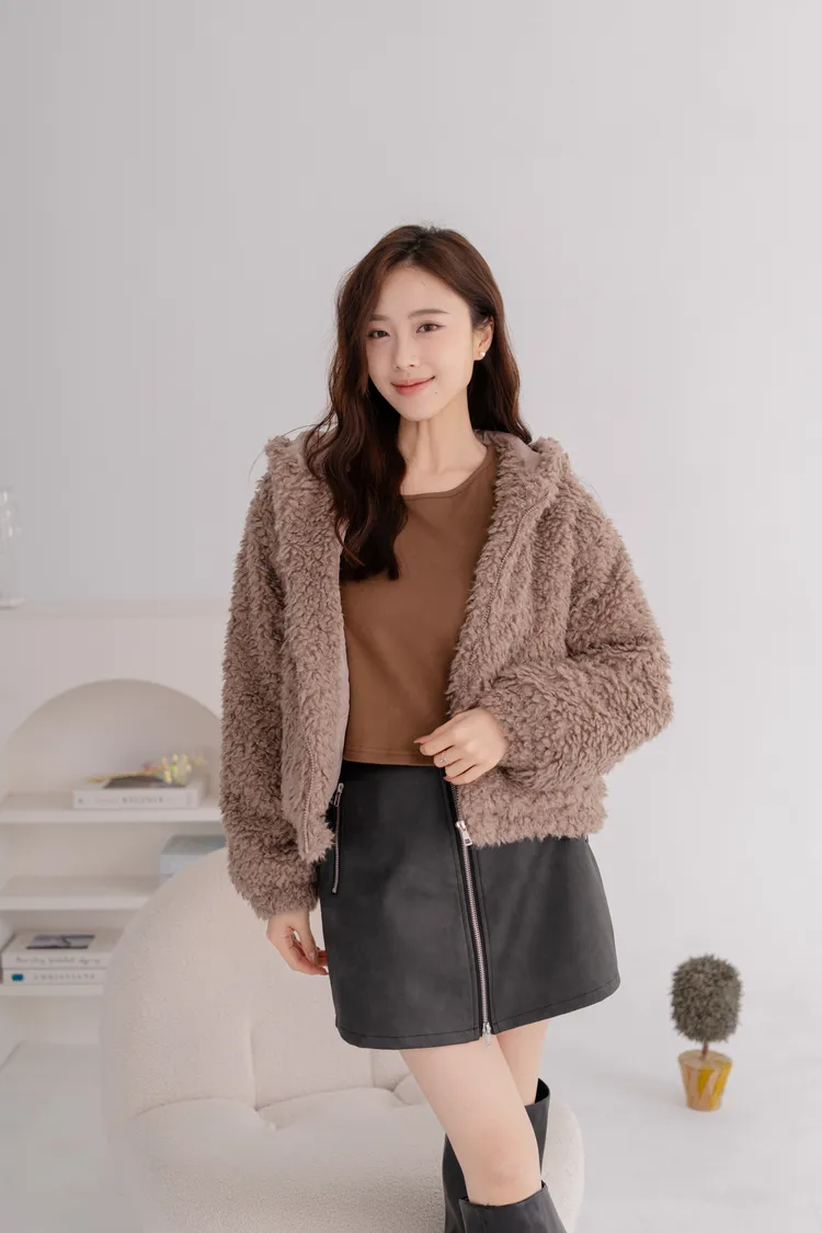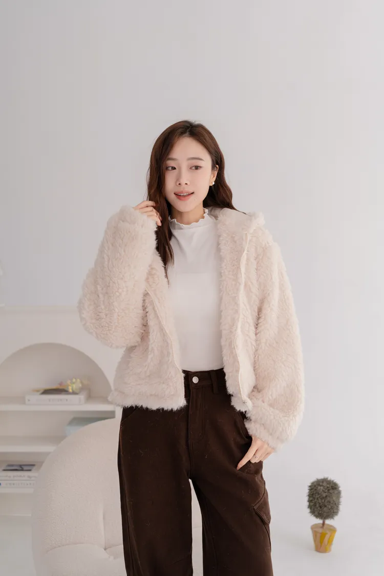 羊羔毛短版連帽外套