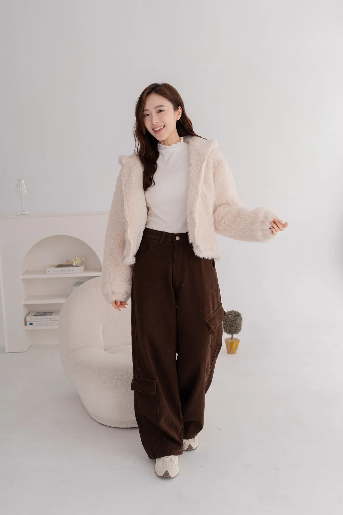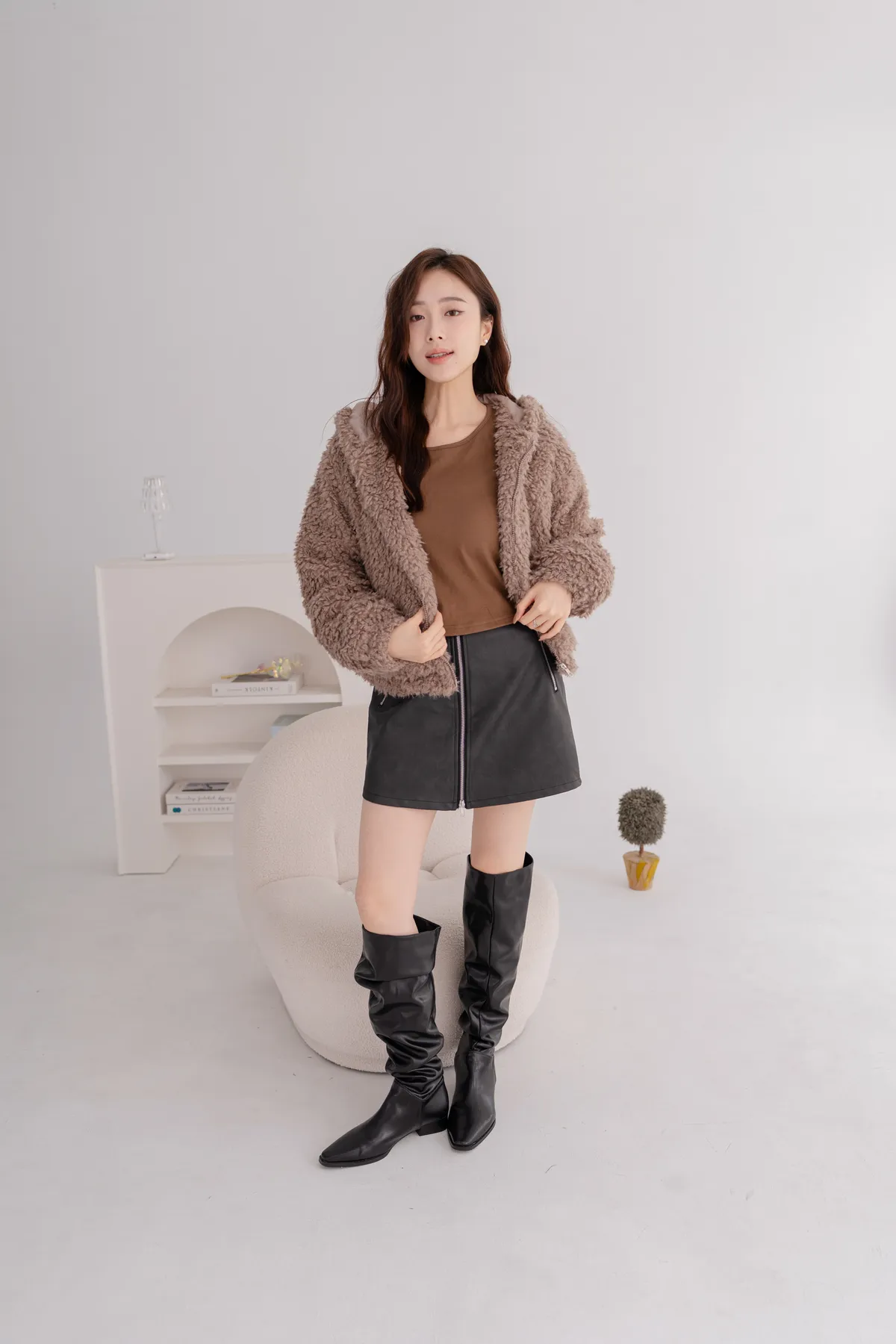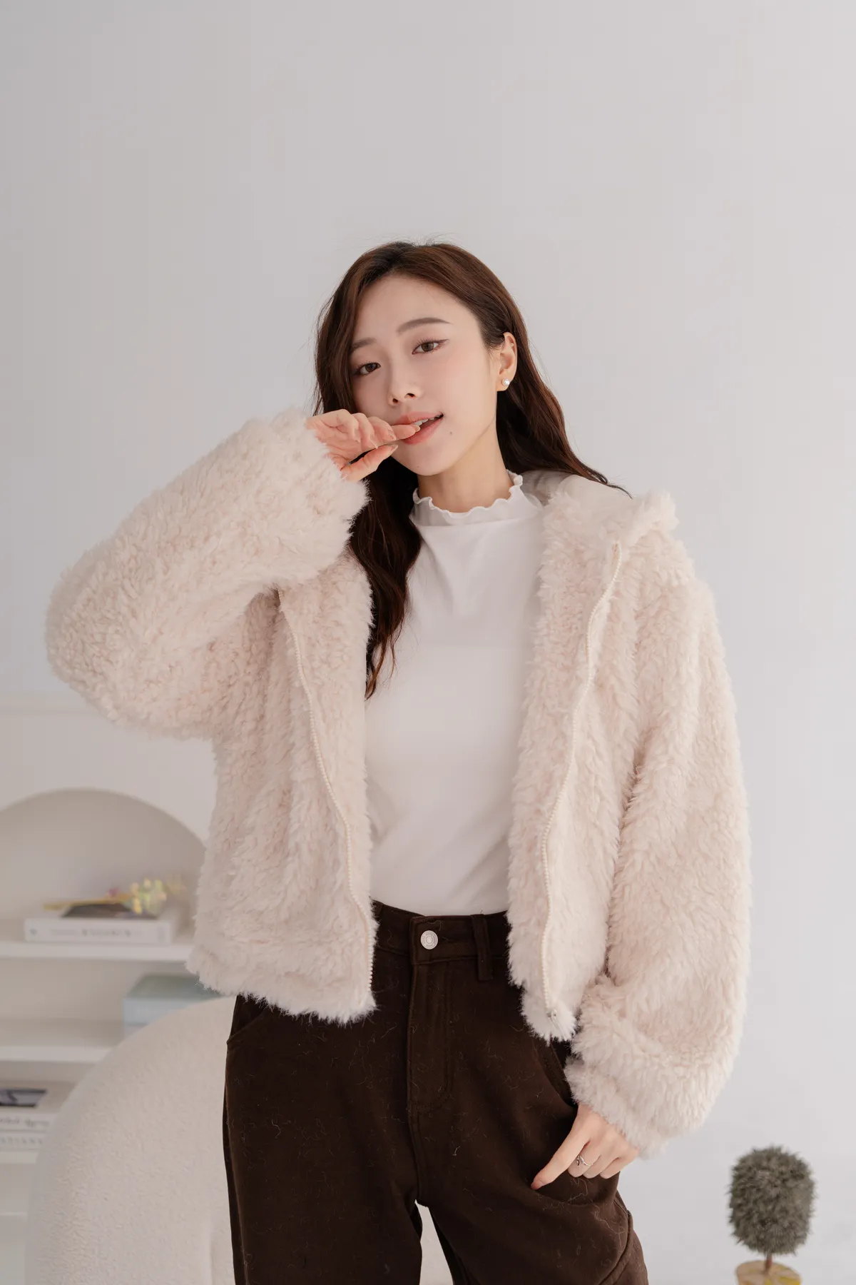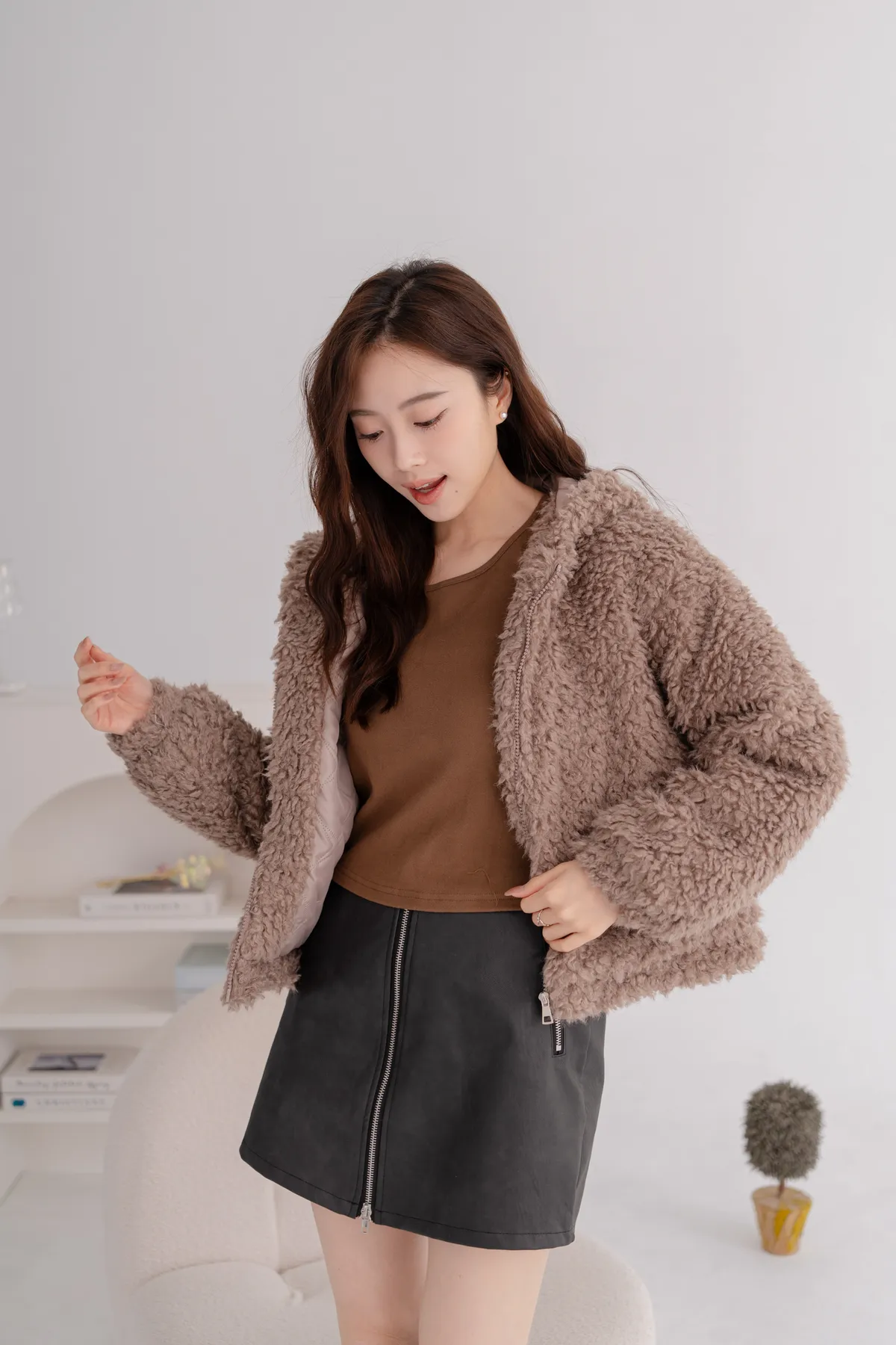 羊羔毛短版連帽外套