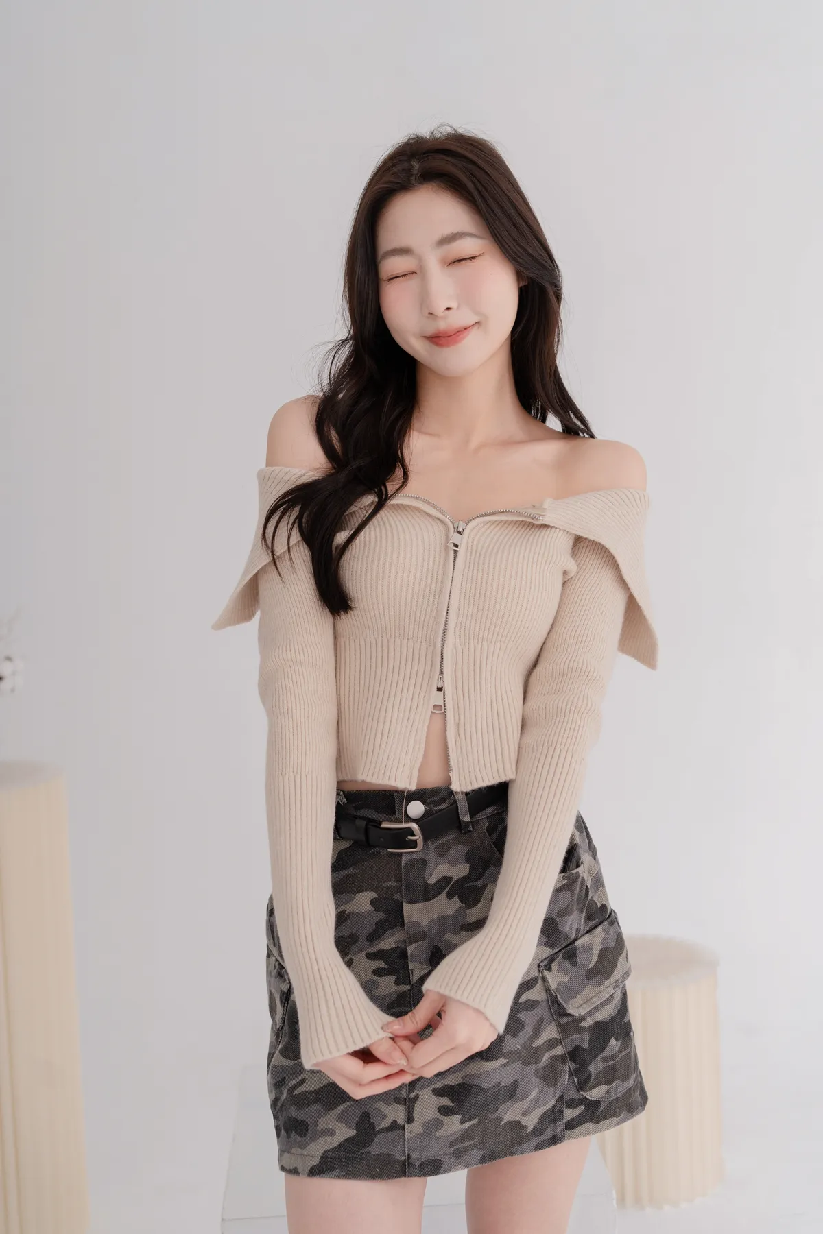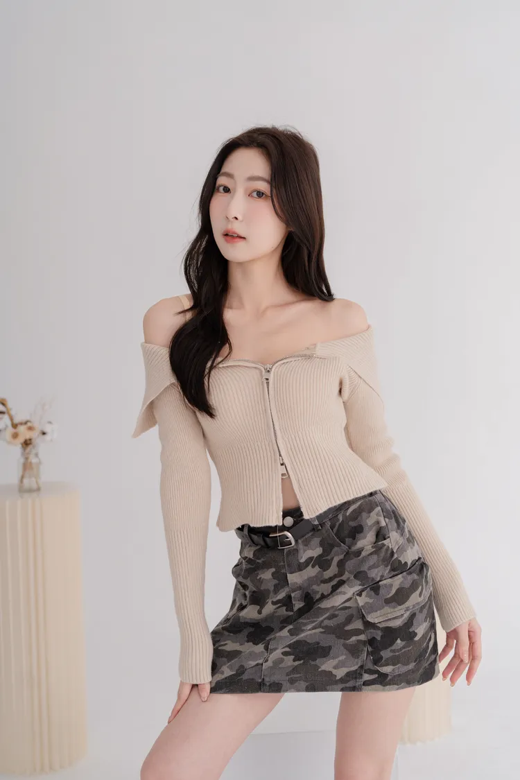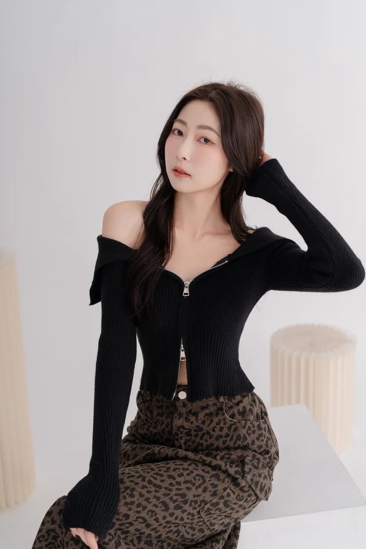 翻領雙拉鍊針織上衣