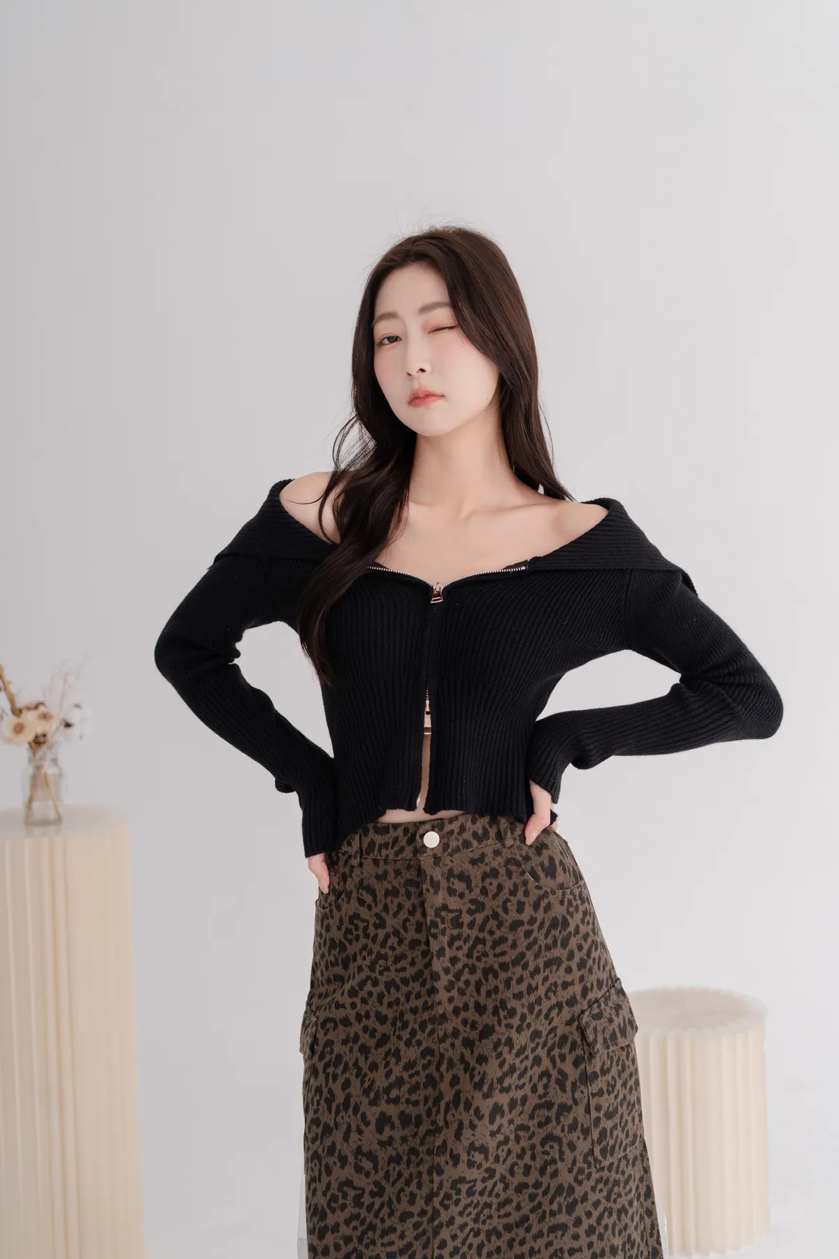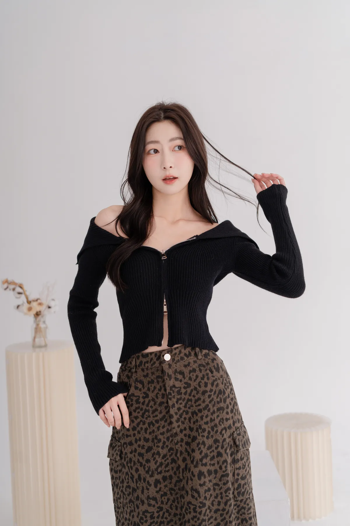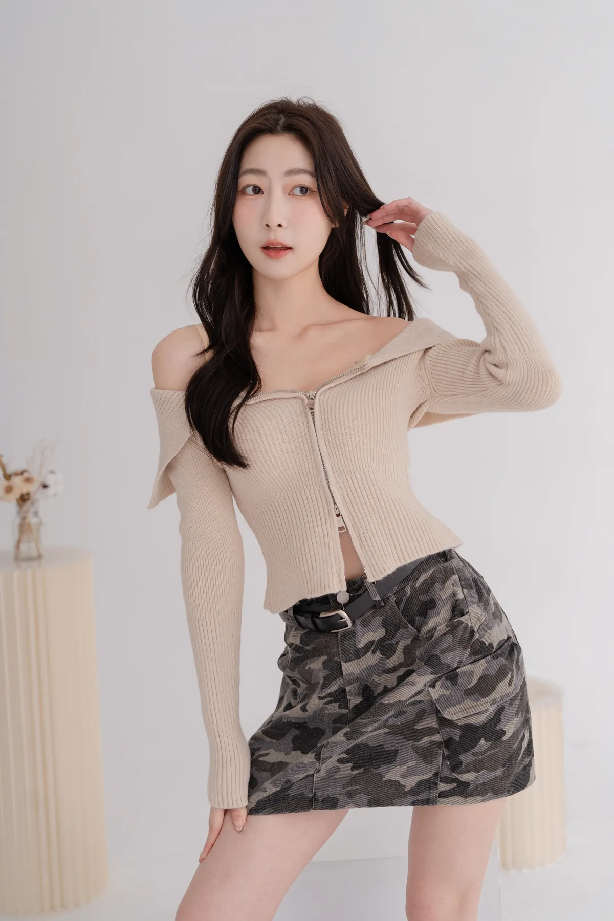 翻領雙拉鍊針織上衣