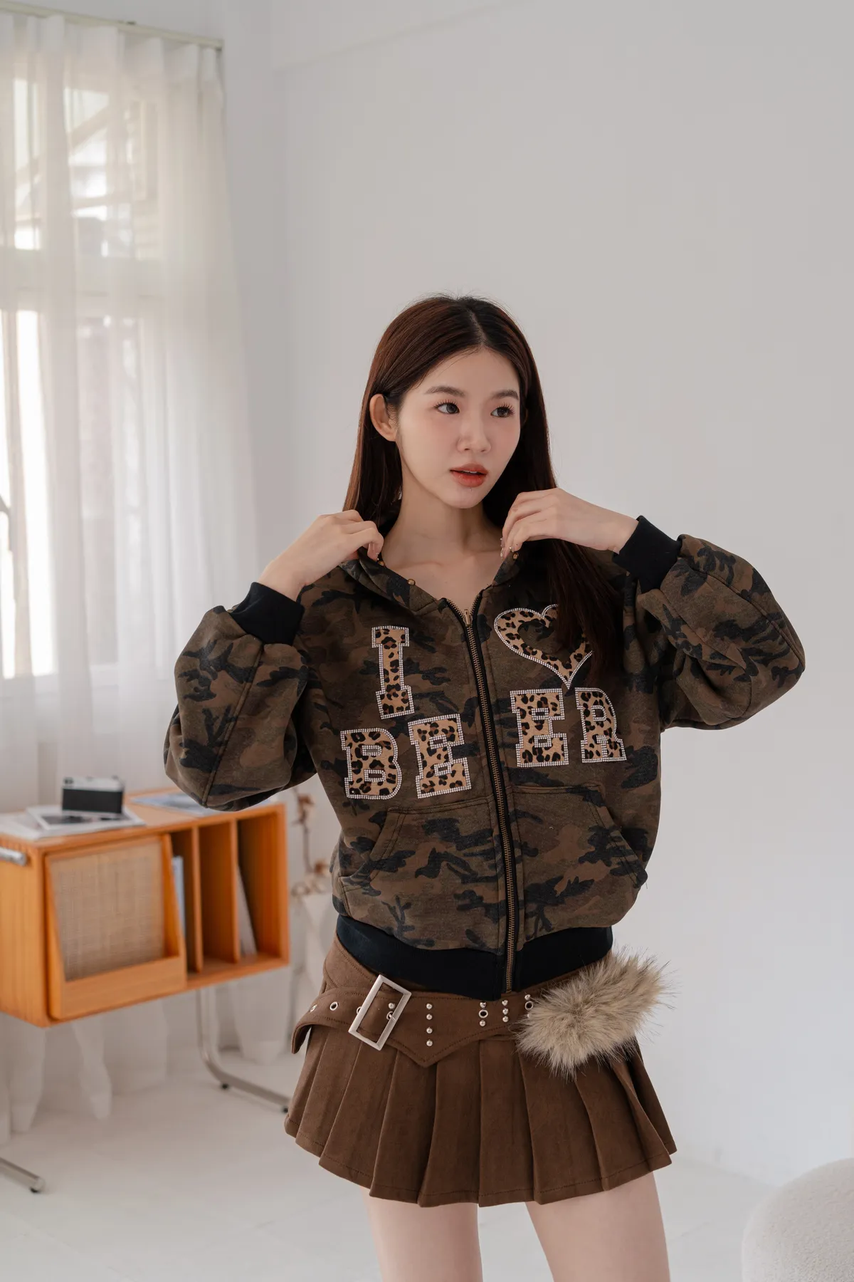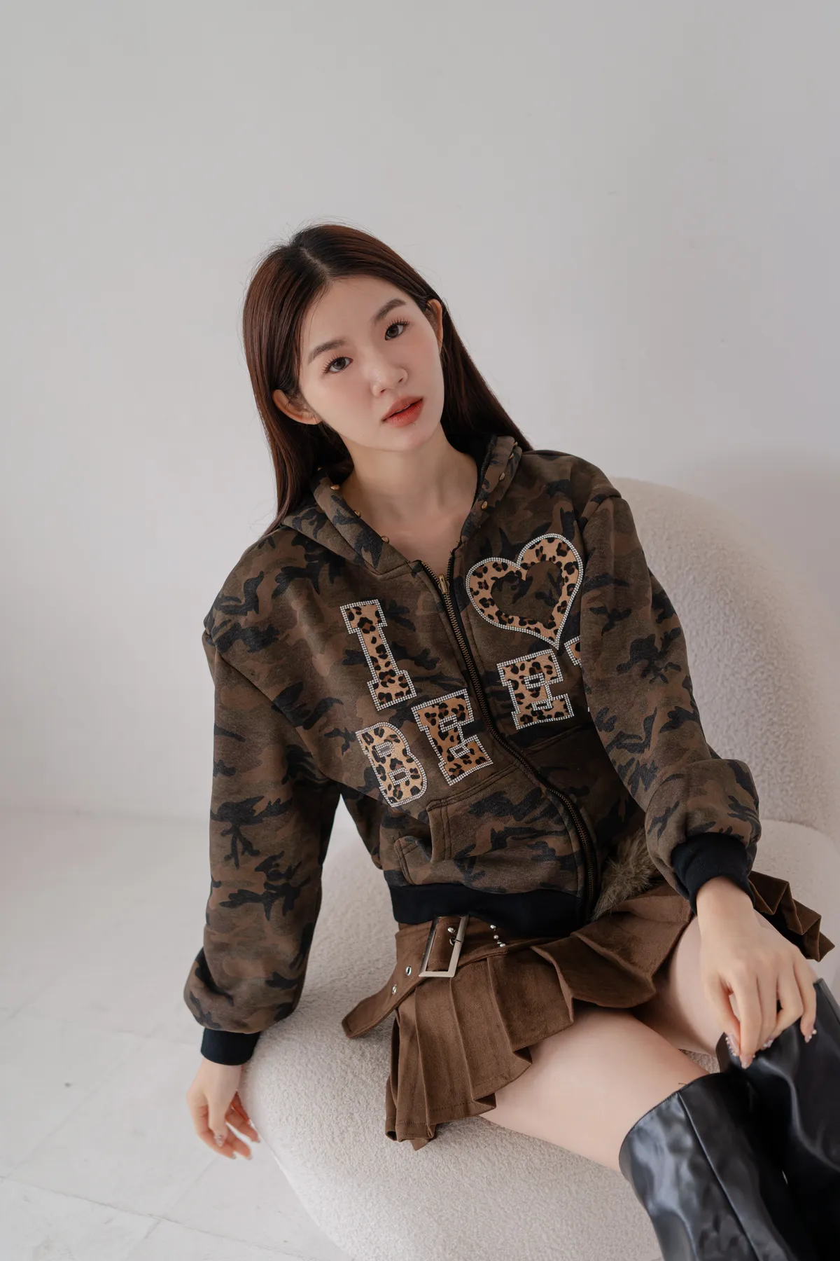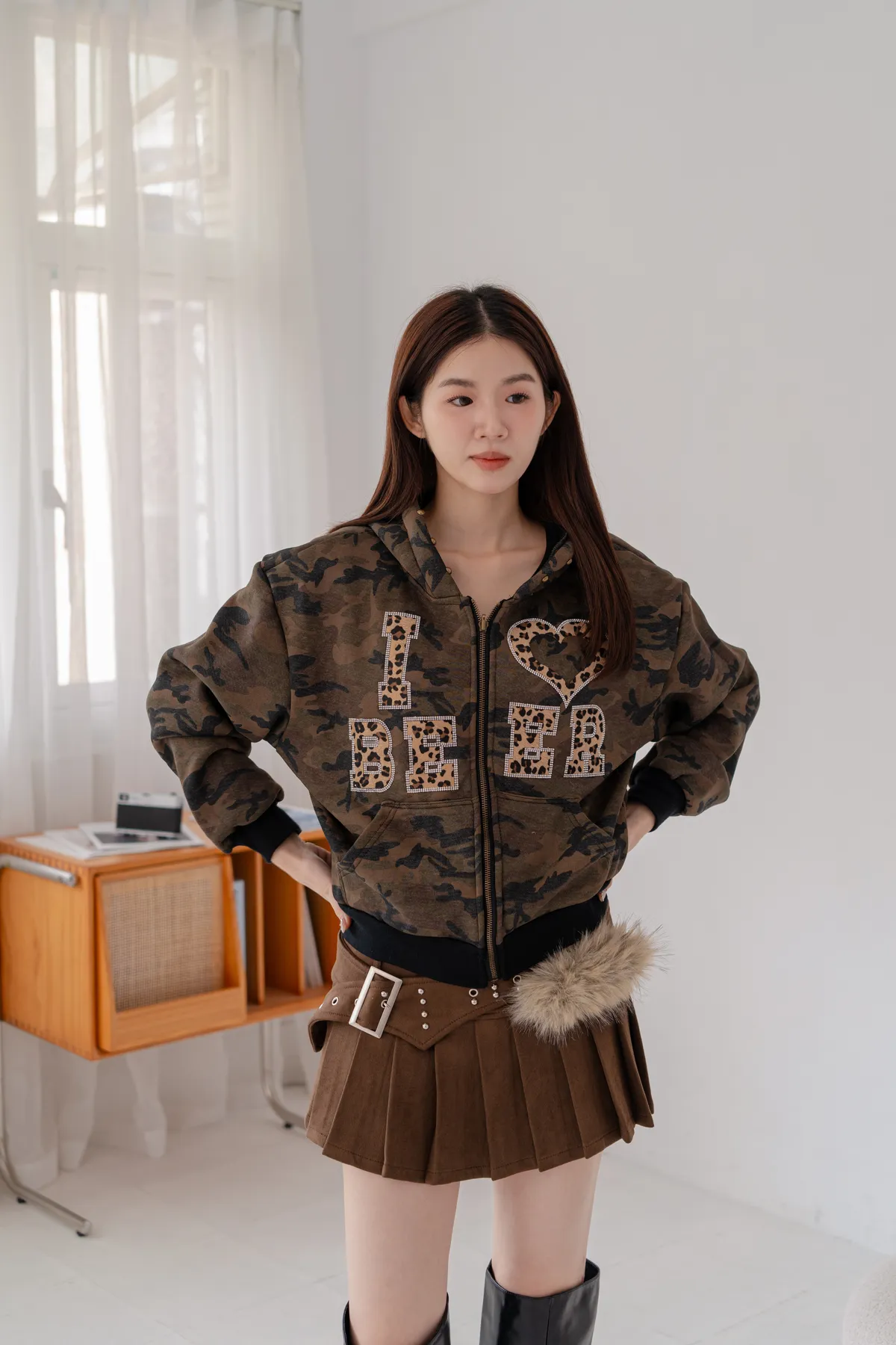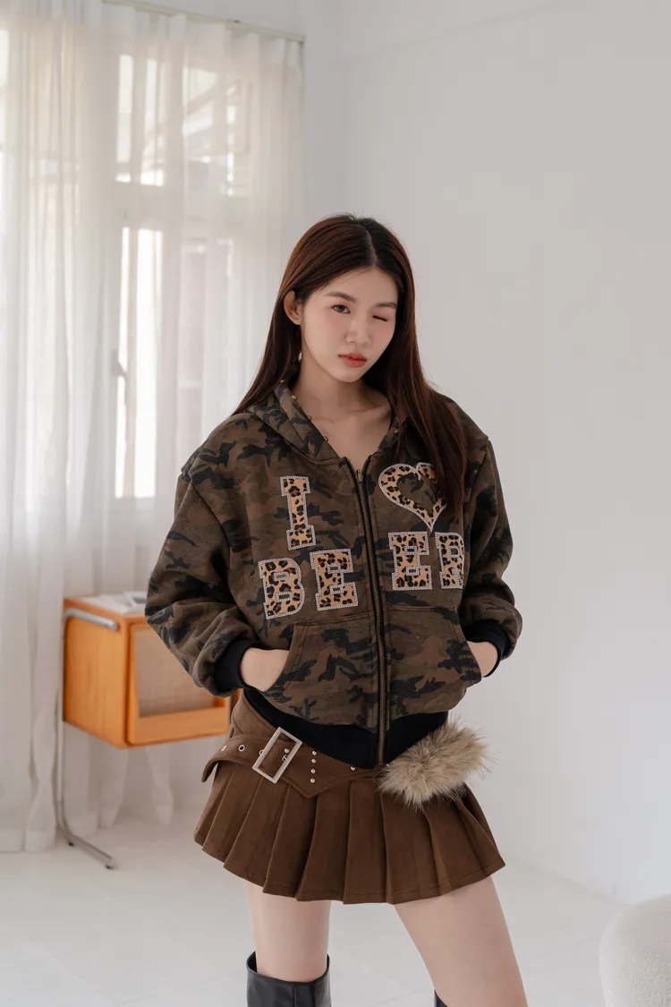 豹紋貼鑽迷彩刷絨外套
