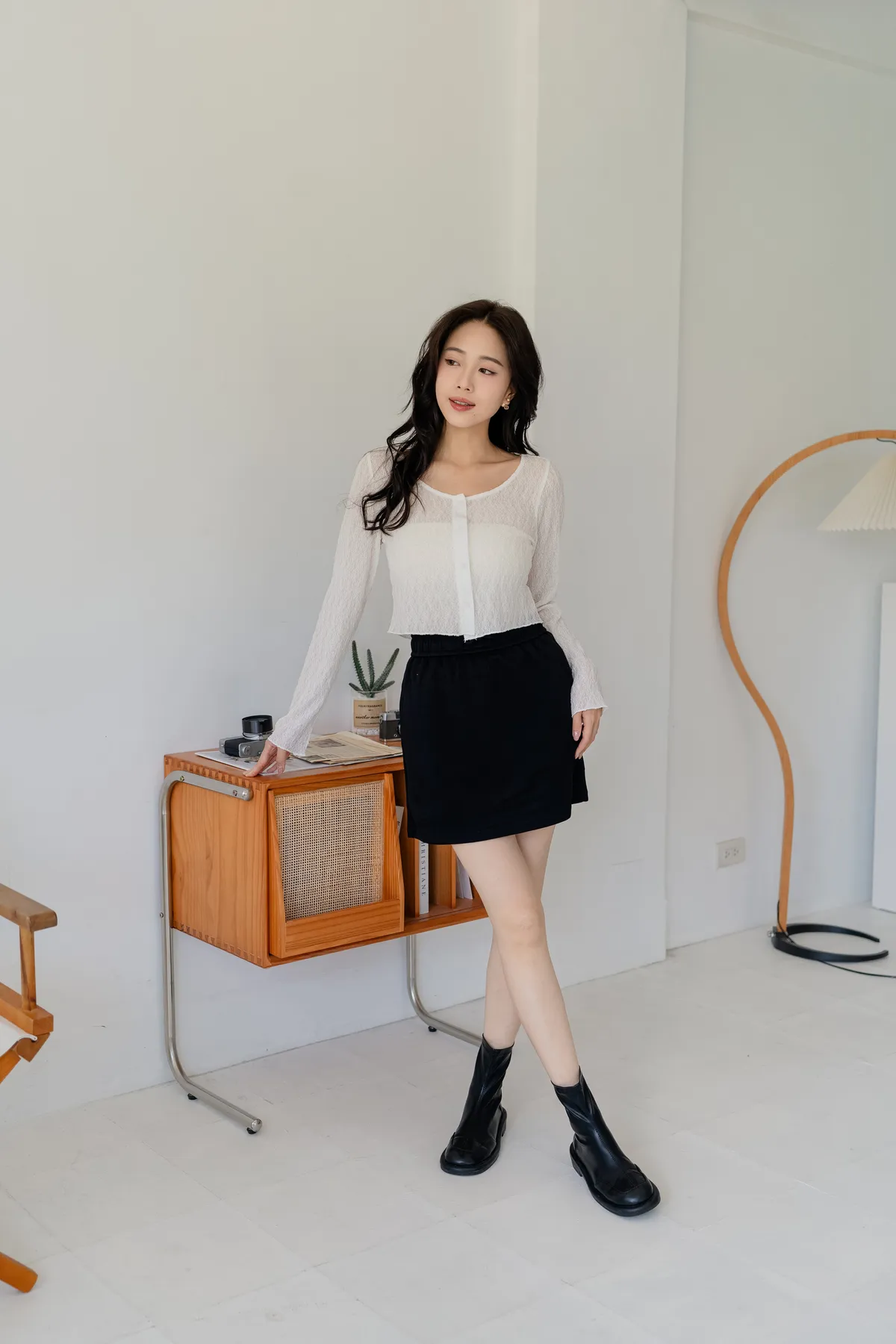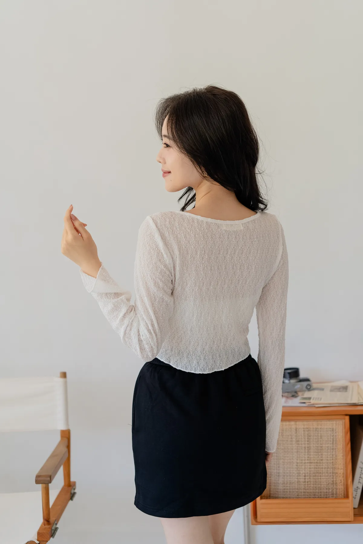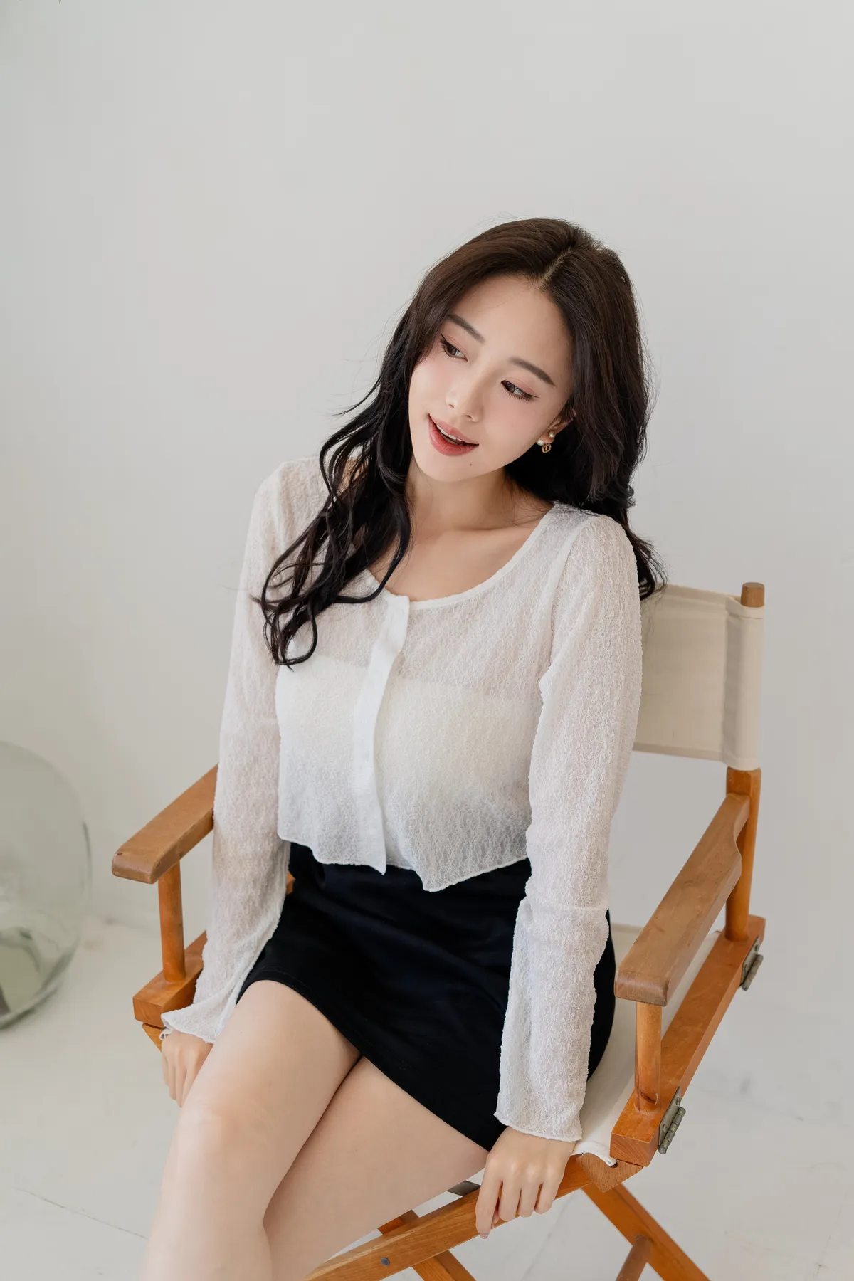 商品資訊:短版設計巧妙拉長身形比例,搭配微透膚質地,呈現若隱若現的性感與優雅.單穿或作為外搭,都能展現俐落清爽的氣息。
