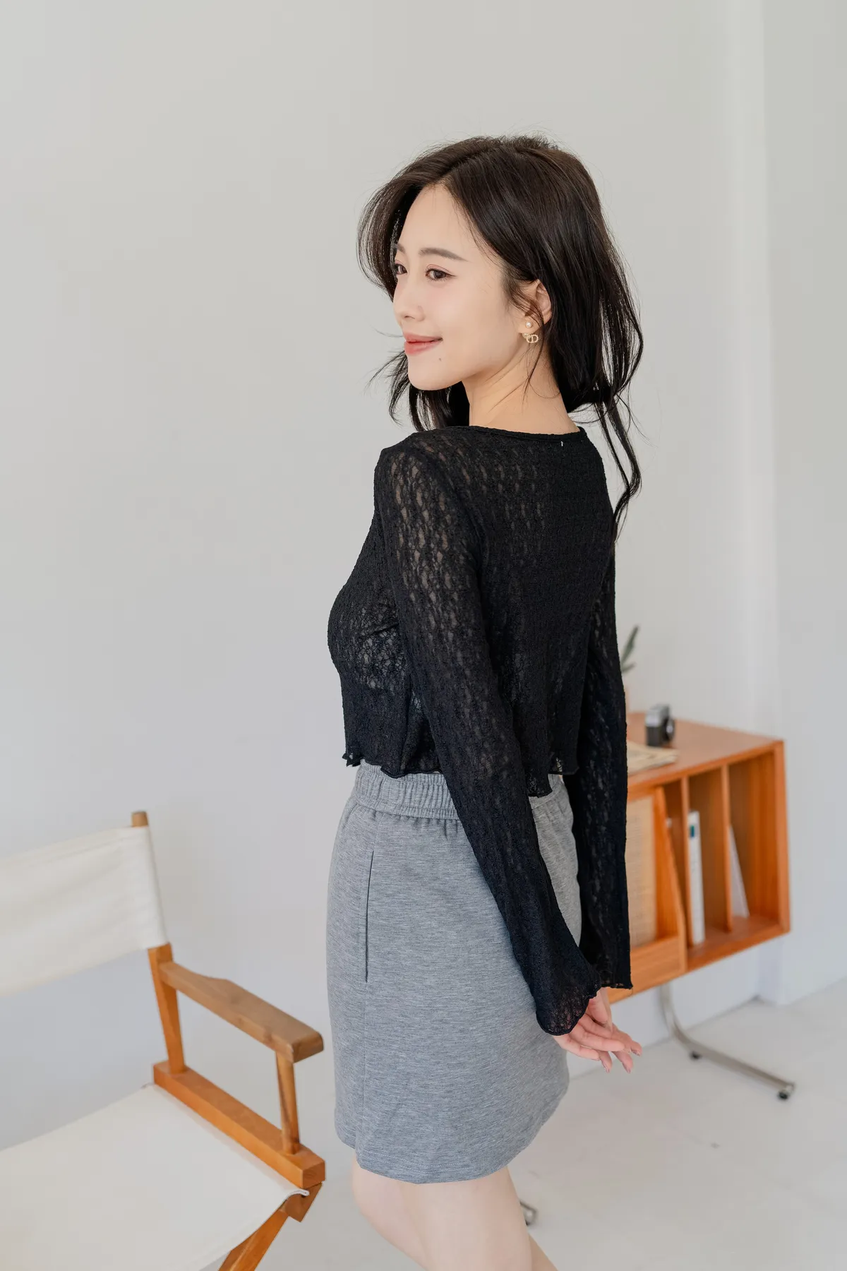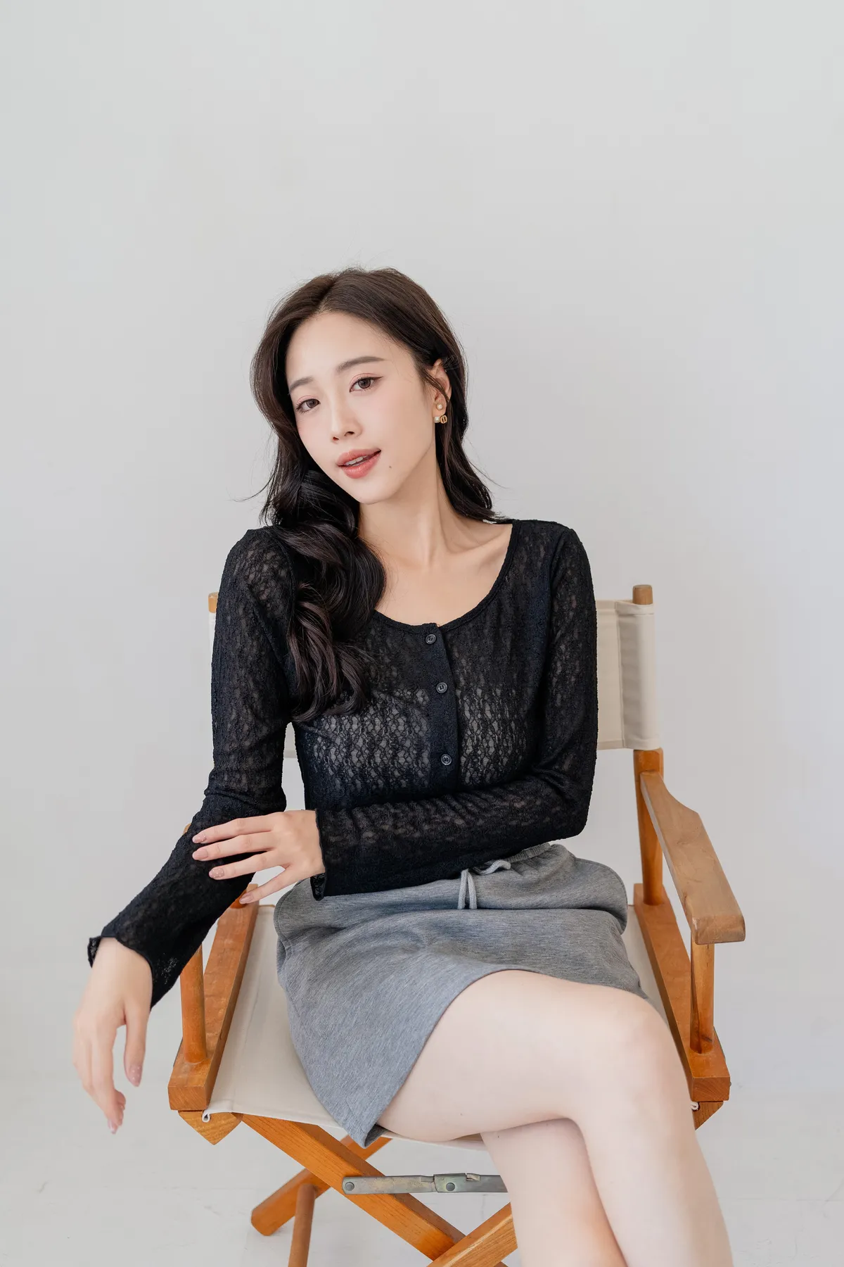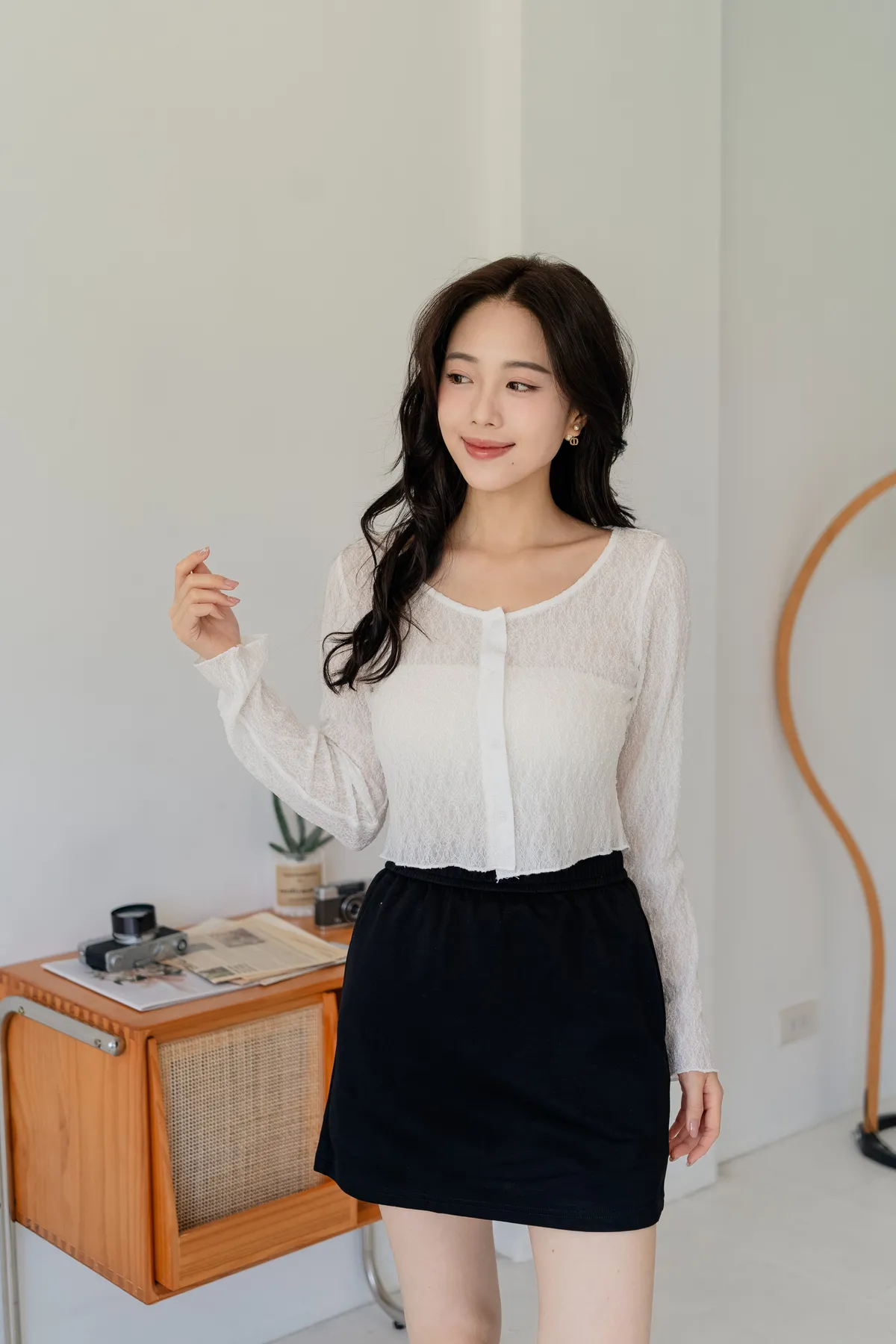 商品資訊:短版設計巧妙拉長身形比例,搭配微透膚質地,呈現若隱若現的性感與優雅.單穿或作為外搭,都能展現俐落清爽的氣息。