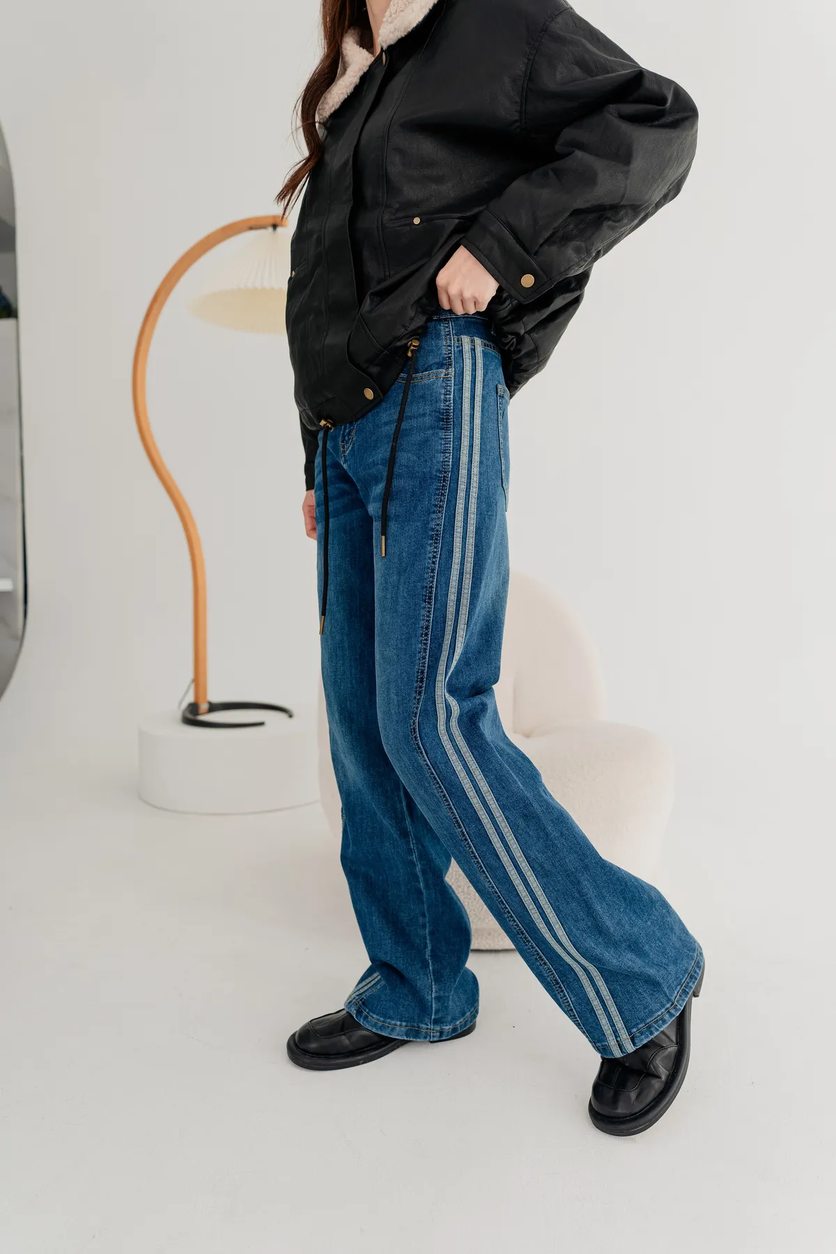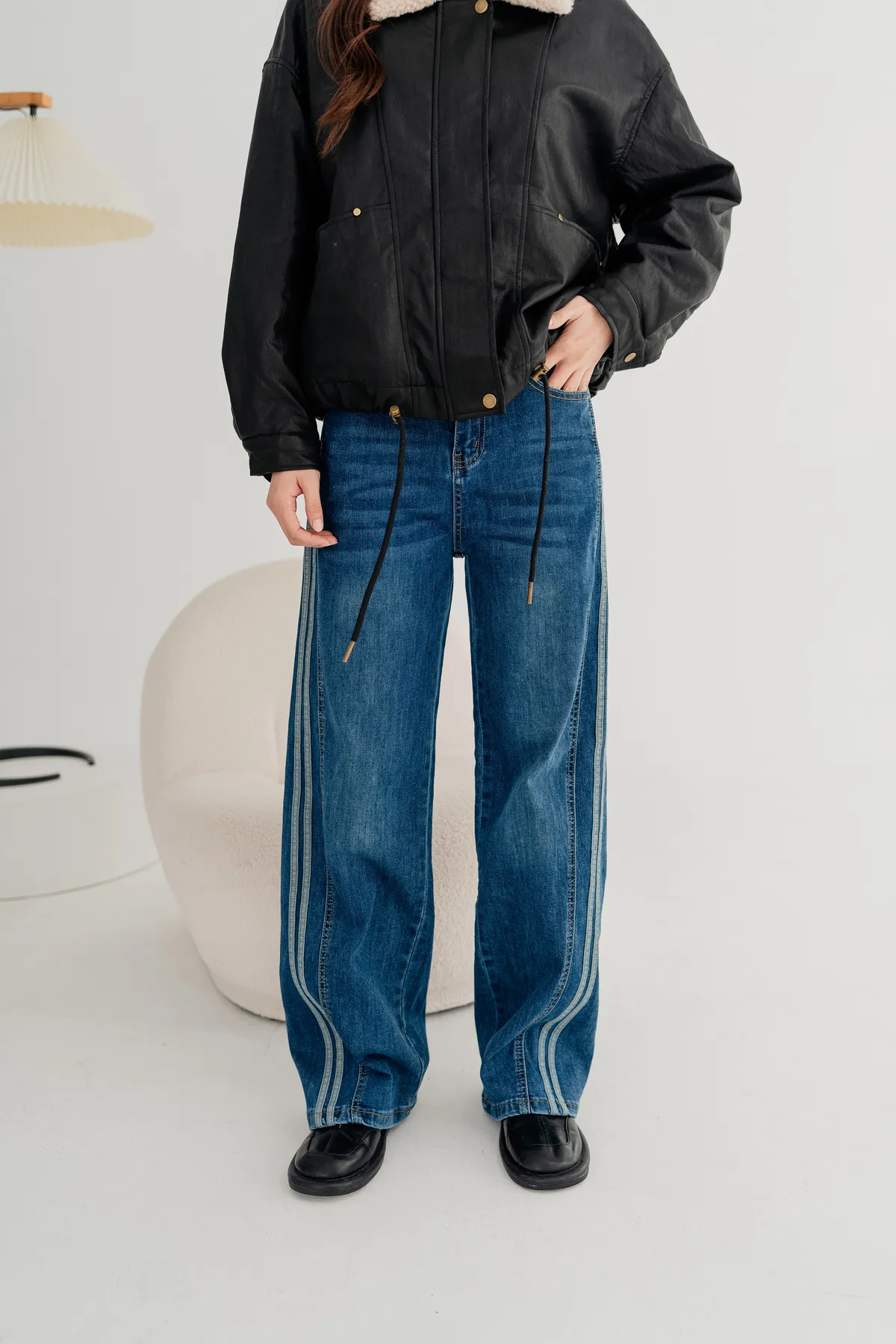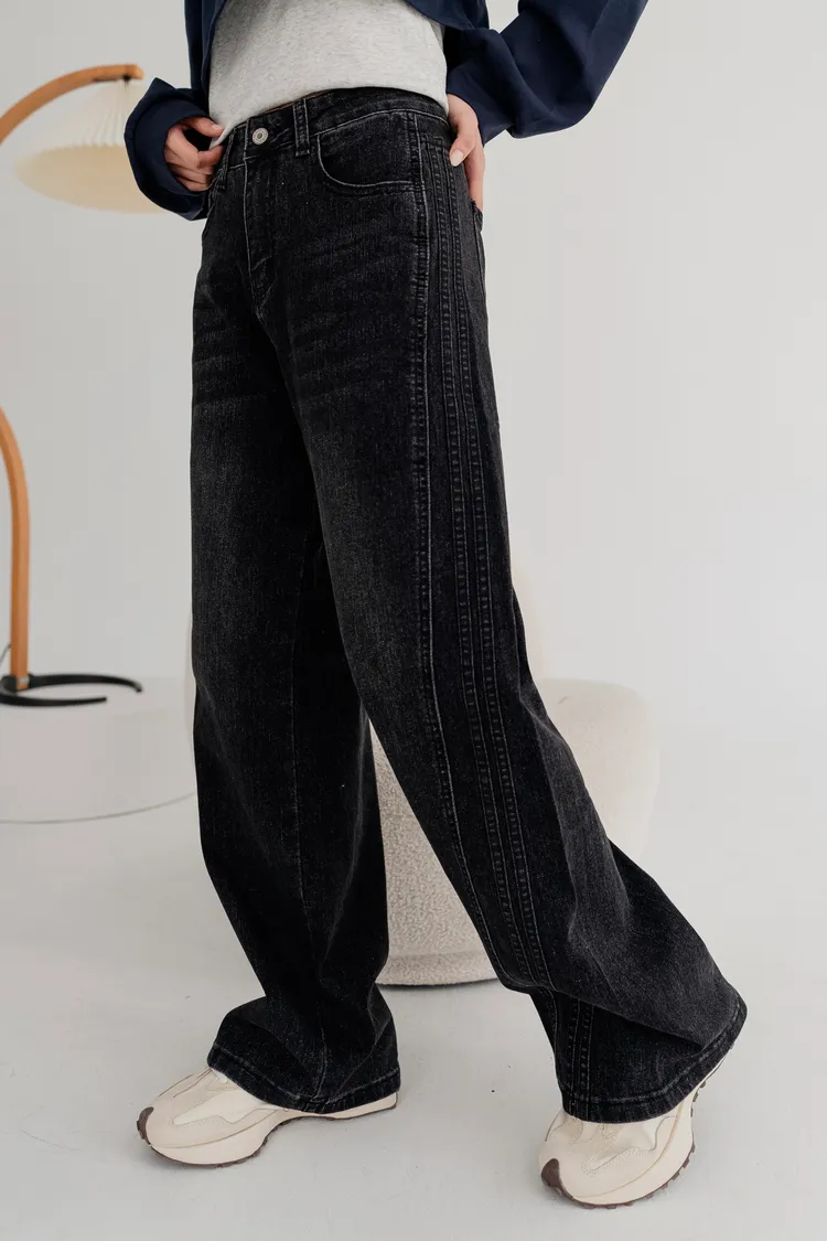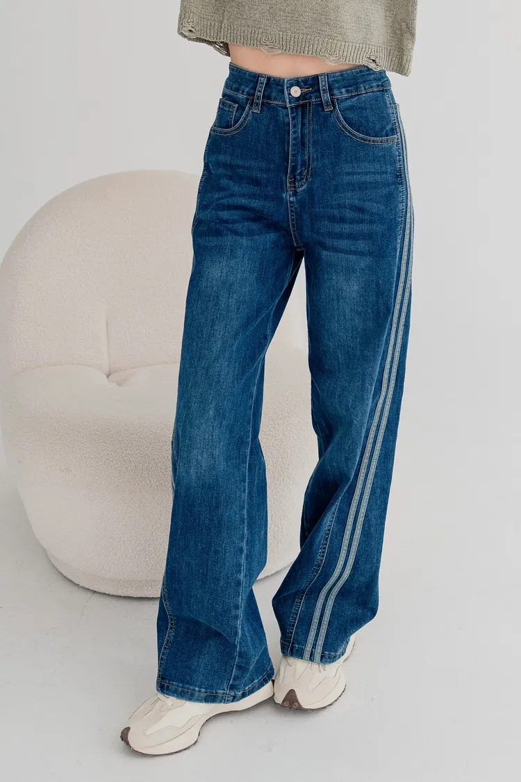 水洗車線牛仔寬褲