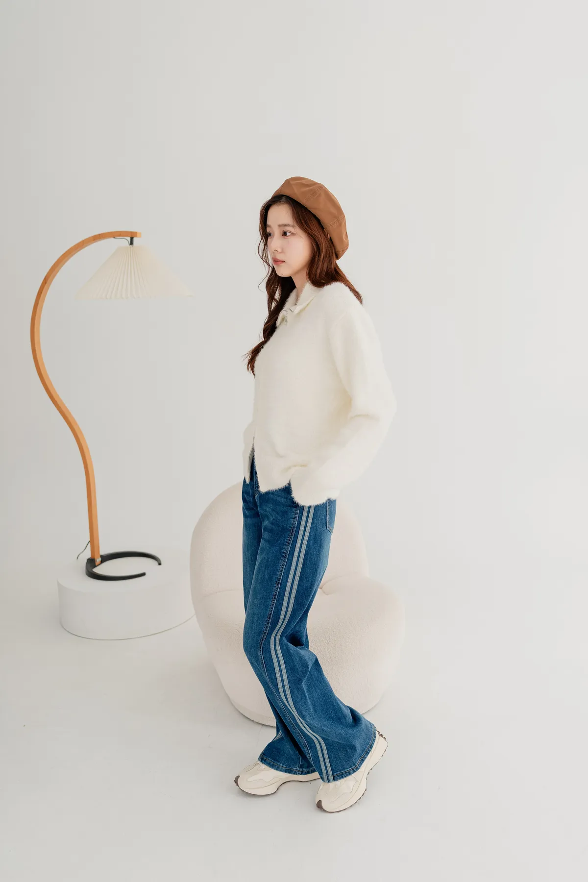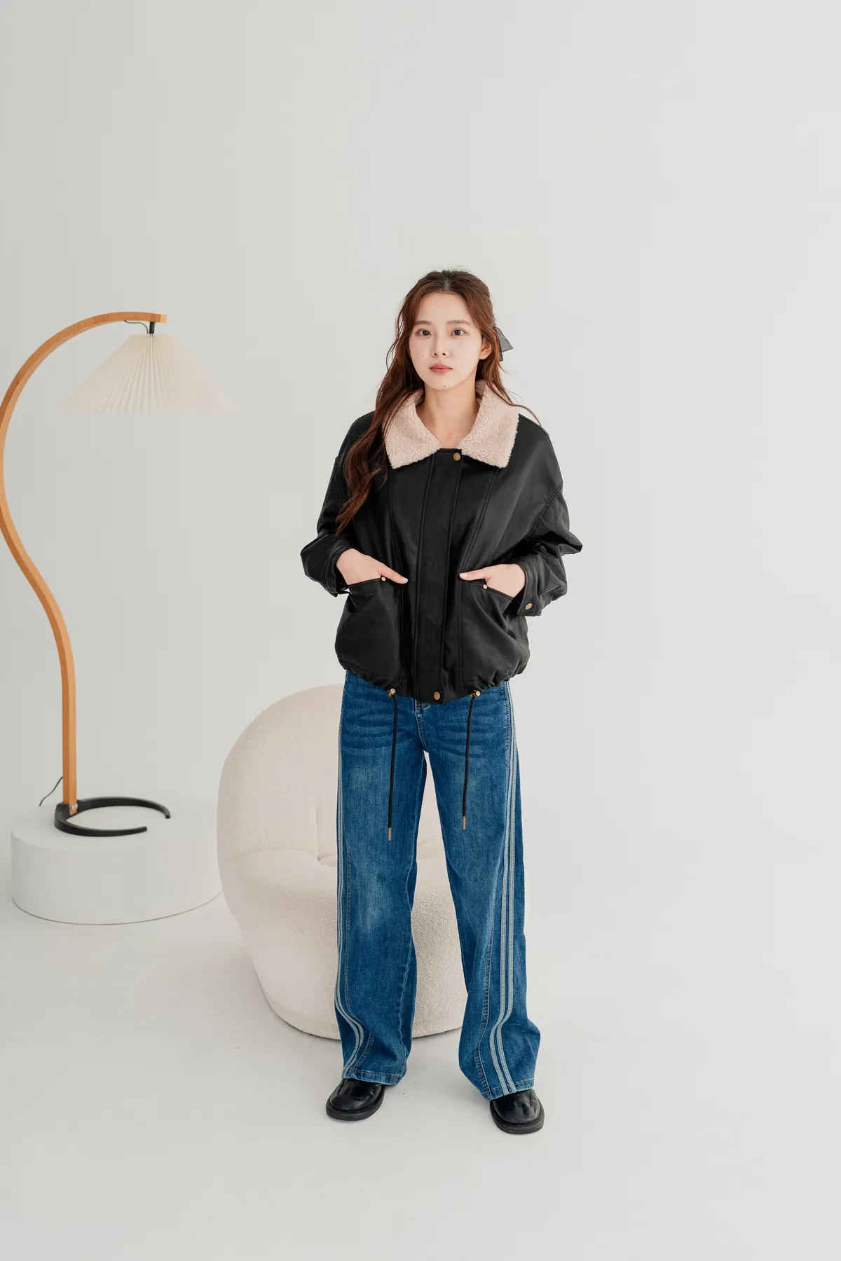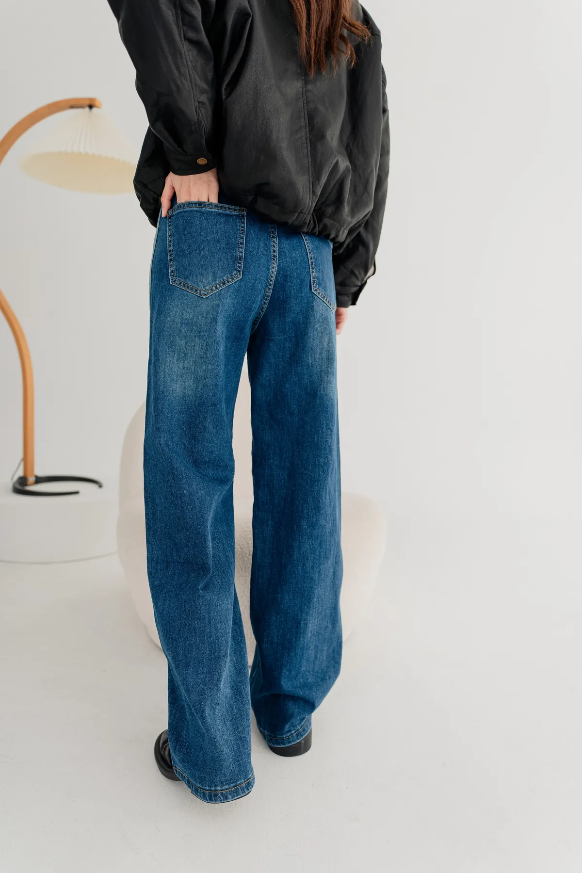 水洗車線牛仔寬褲
