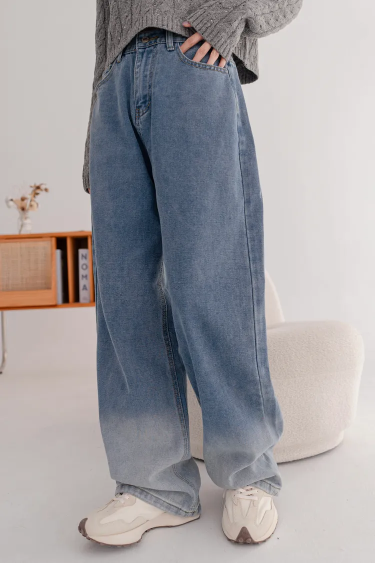 漸層刷色牛仔寬褲