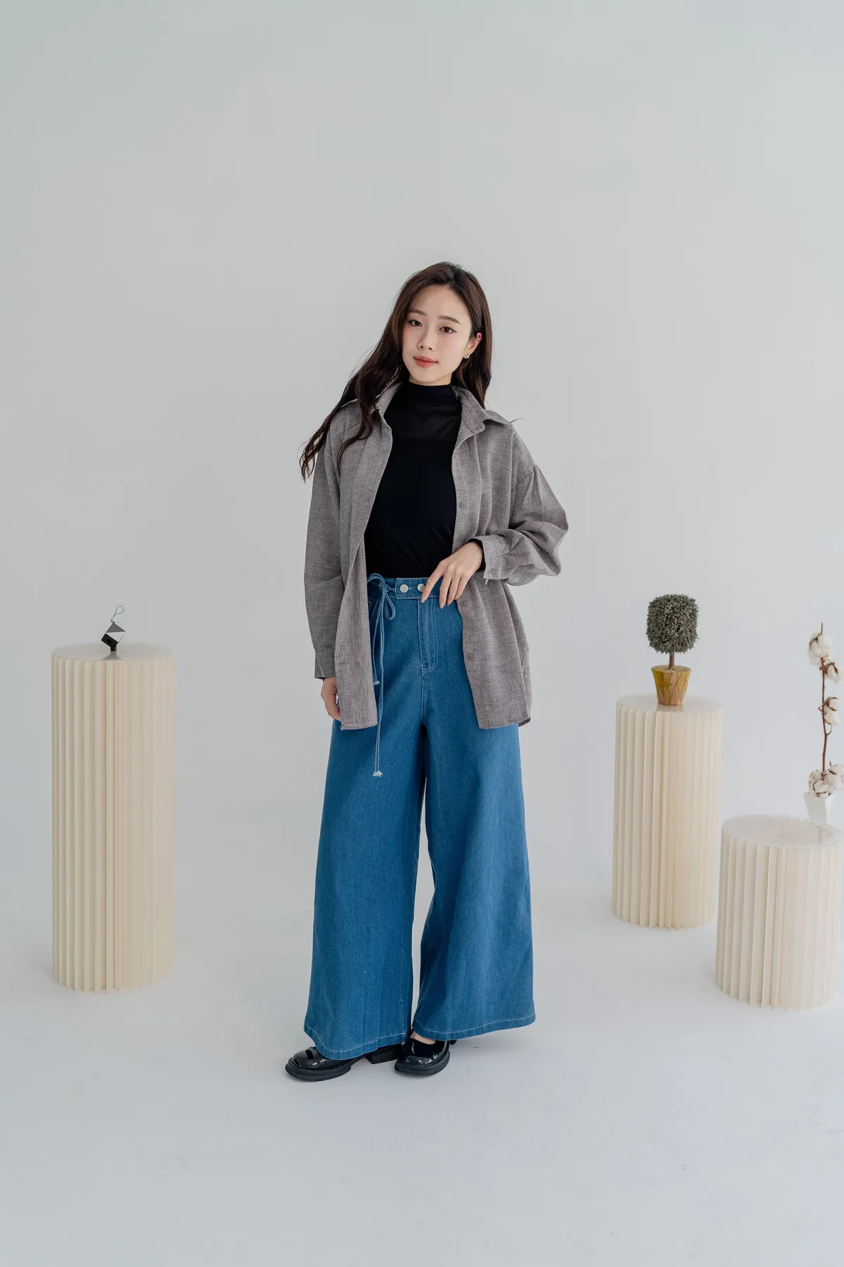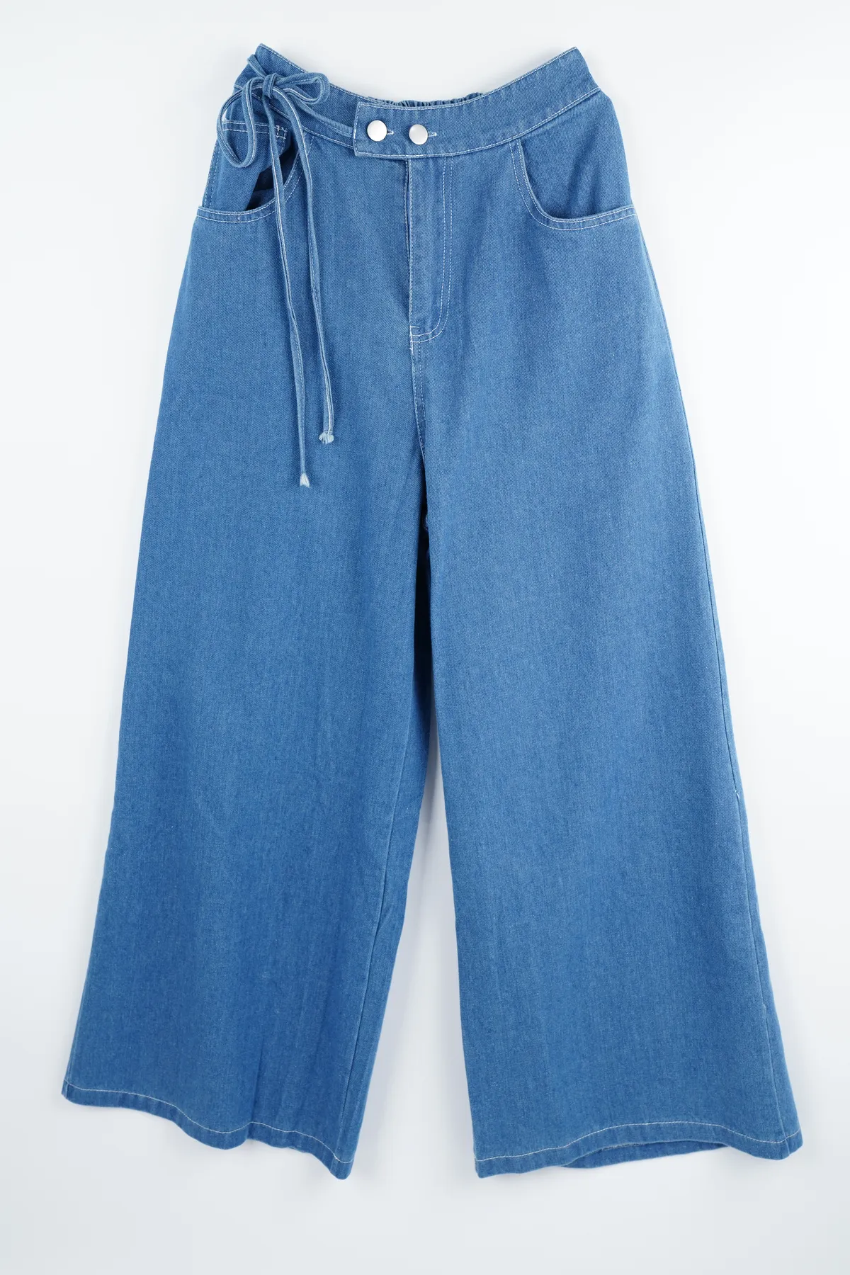 商品資訊:高腰版型拉長腿部線條,打造筆直修長比例。腰間綁帶設計增添細節層次,後鬆緊腰