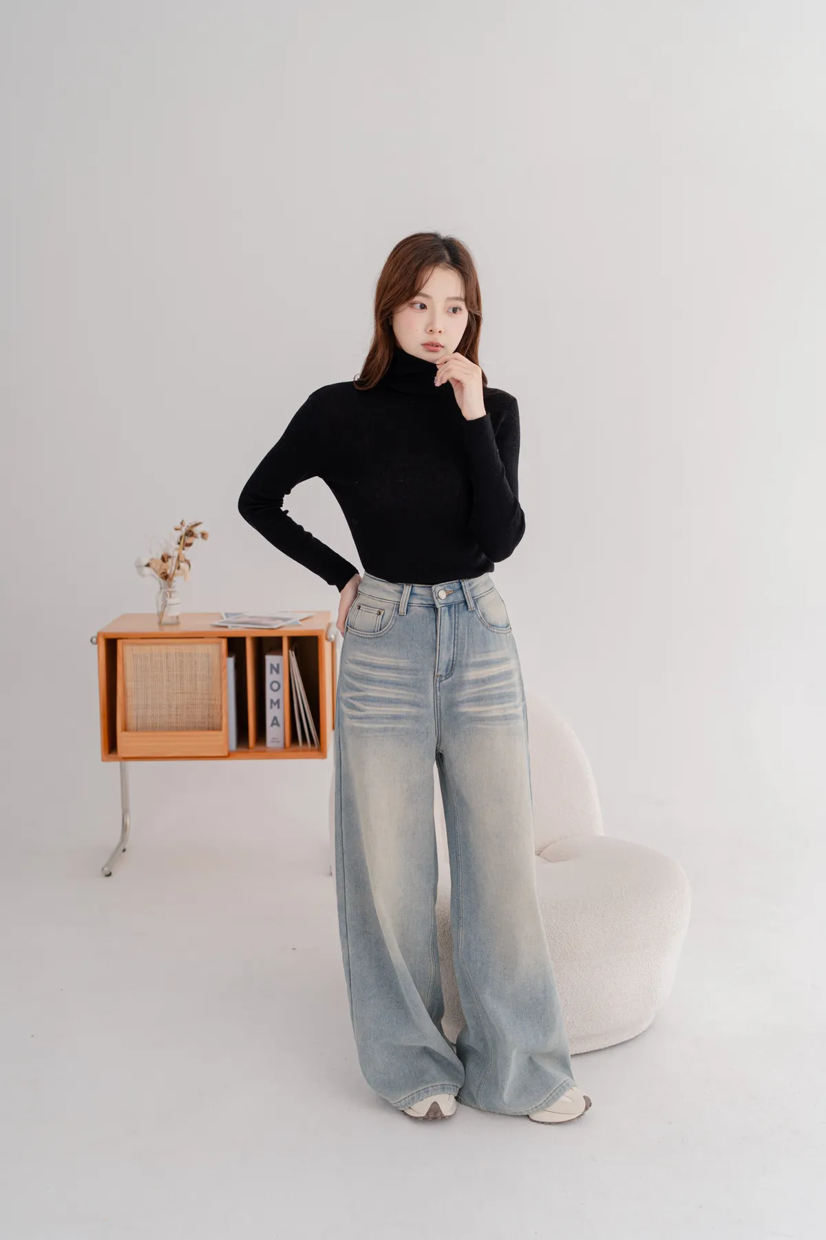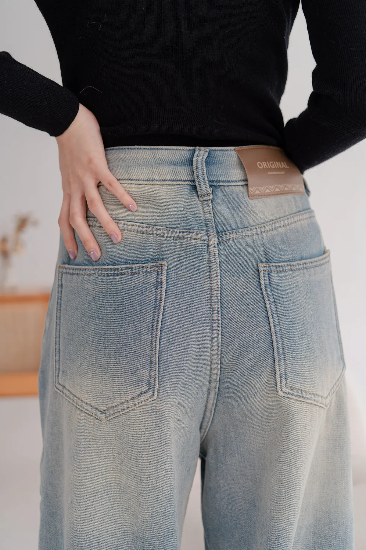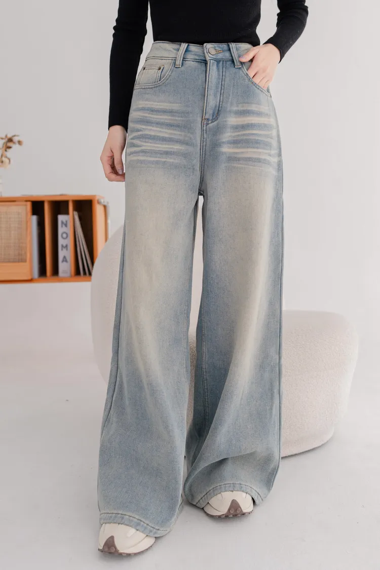 刷絨復古刷色牛仔寬褲