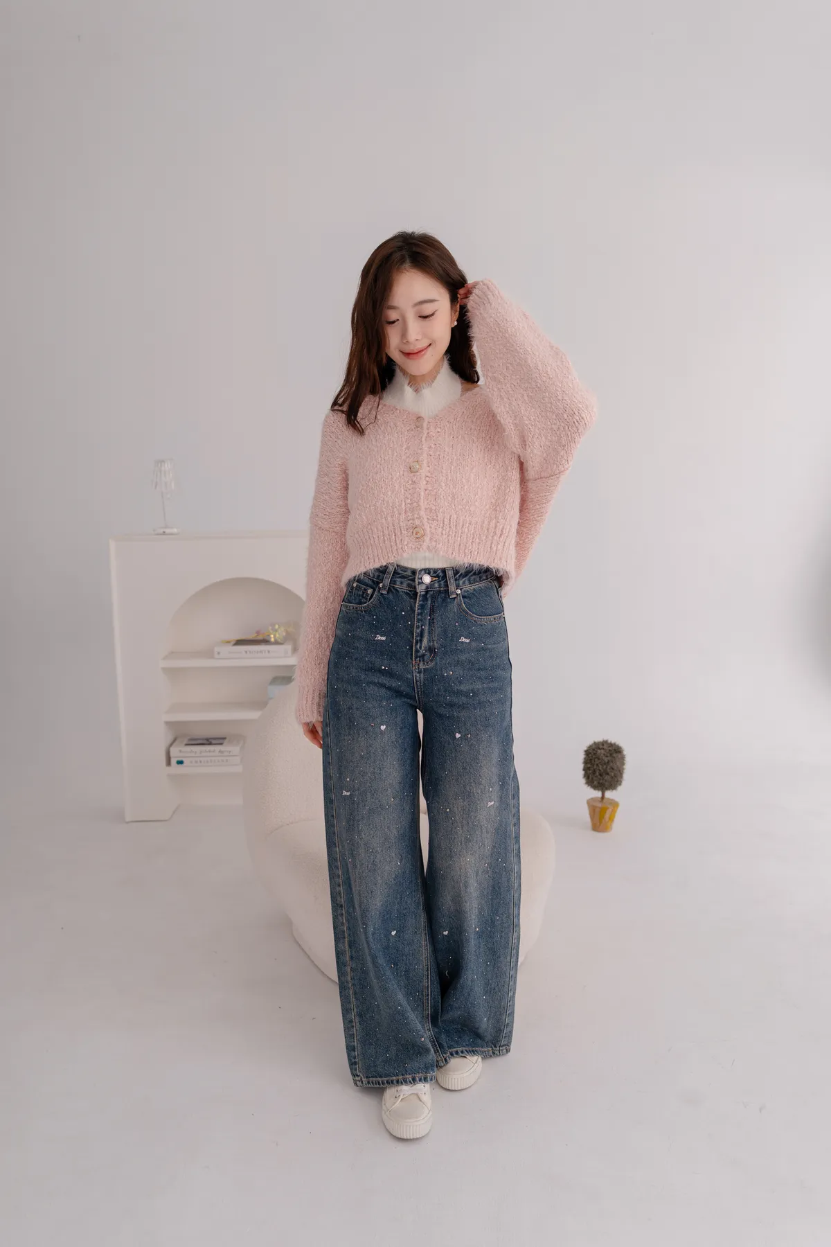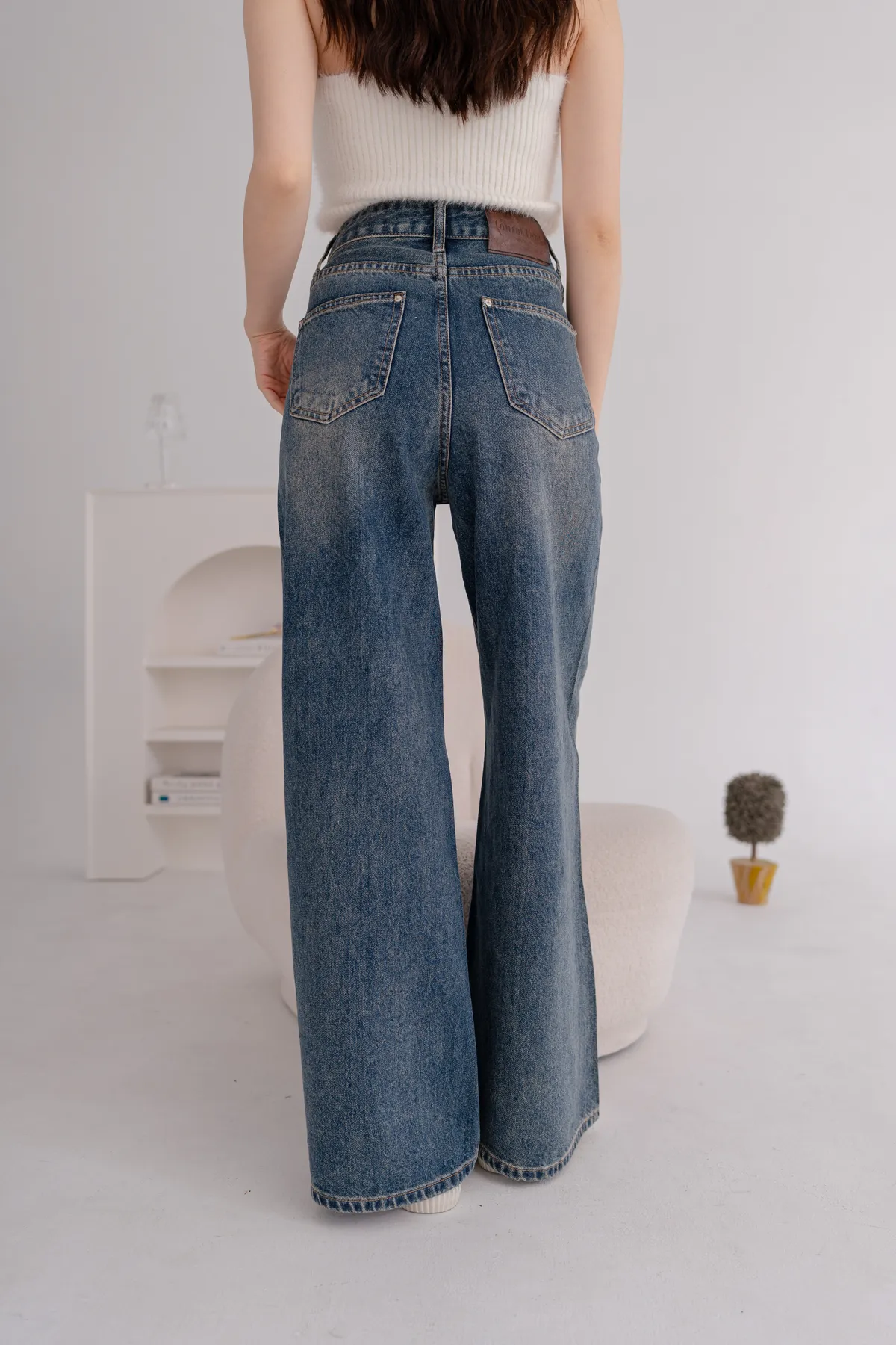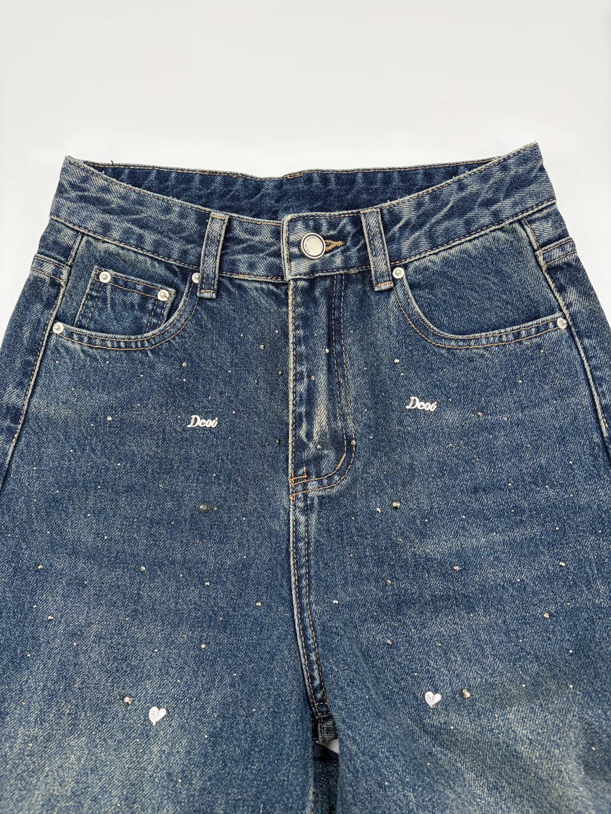 亮鑽貓抓水洗牛仔寬褲
