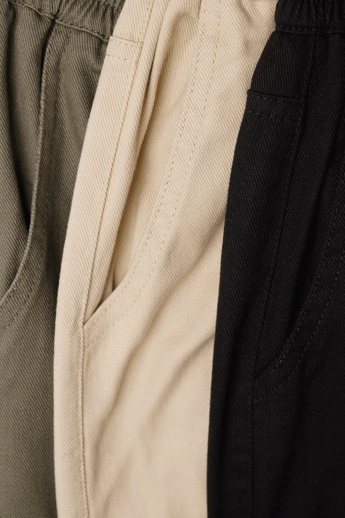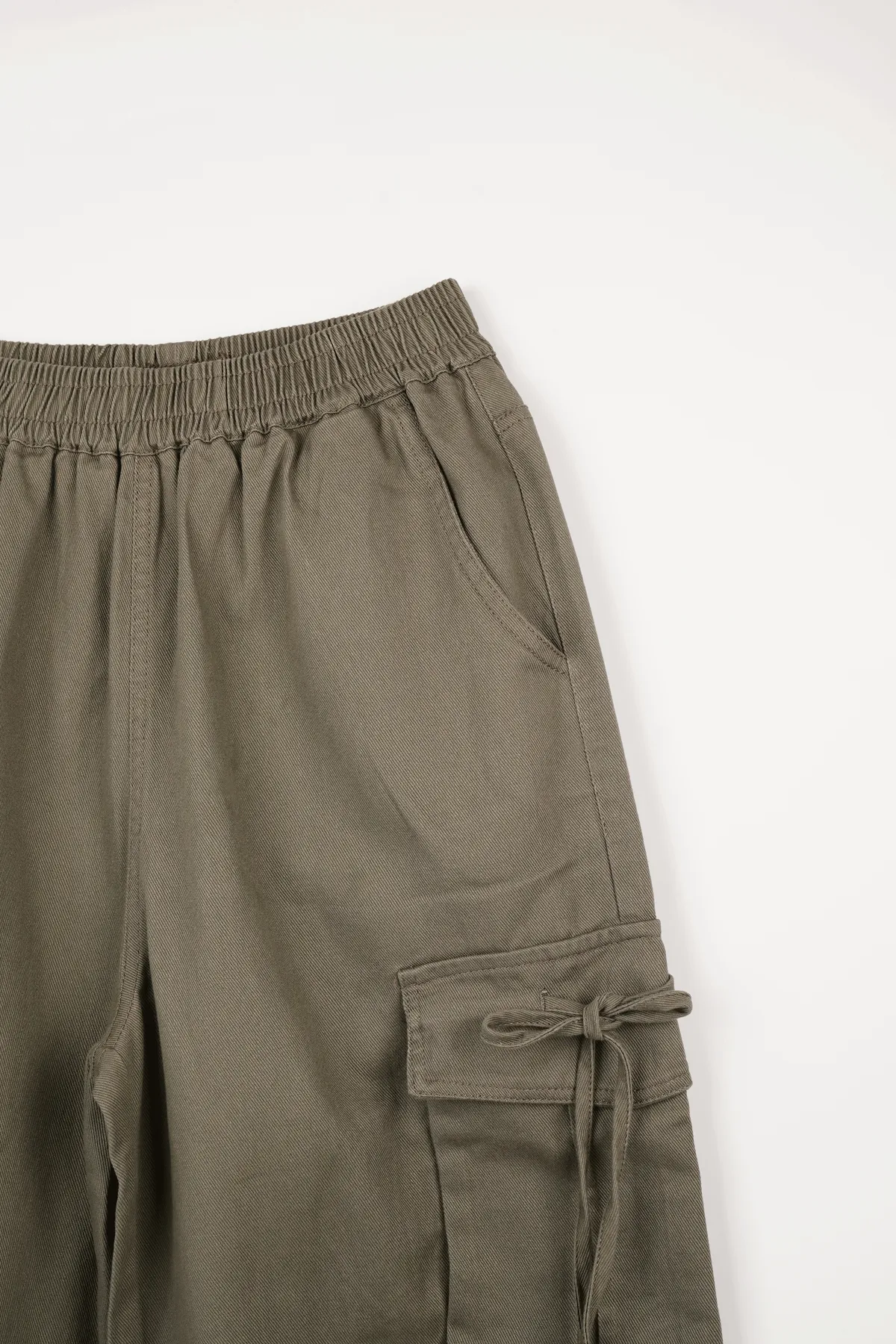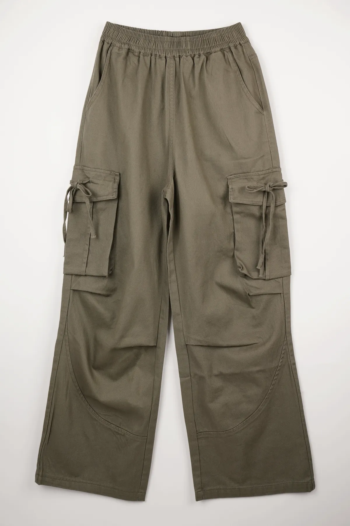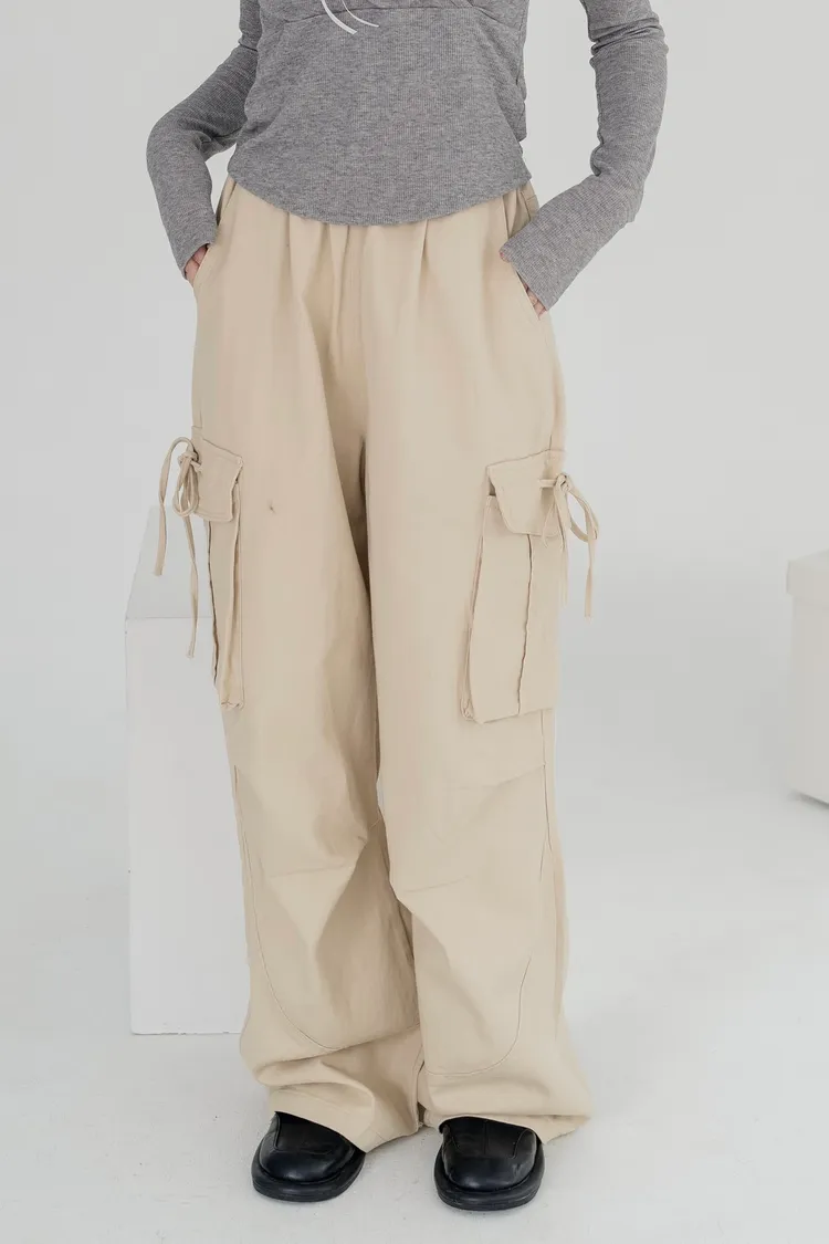 高腰剪裁拉長比例,寬直褲管設計修飾腿部線條,腰頭鬆緊設計不勒肚