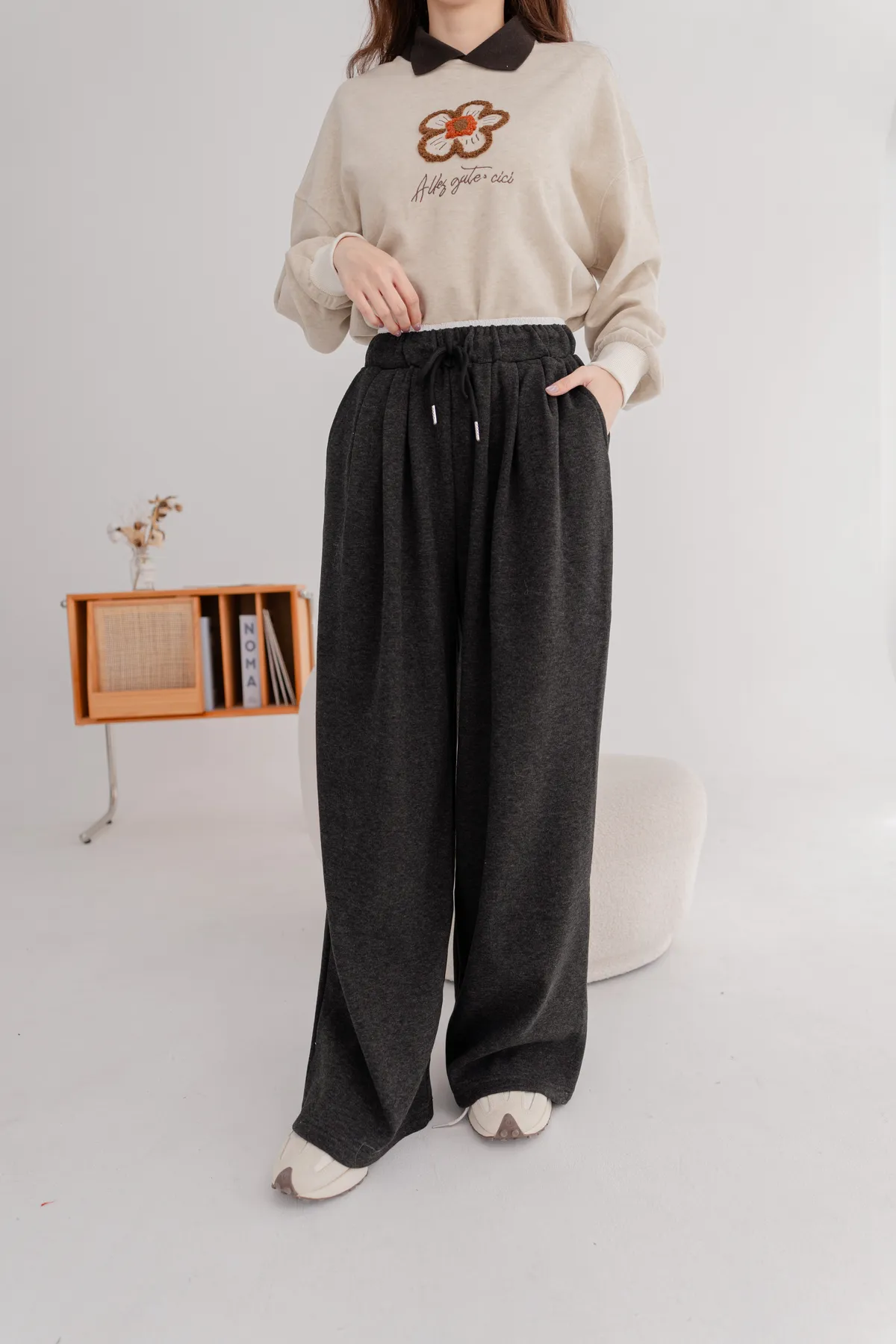 舒適刷絨保暖寬褲