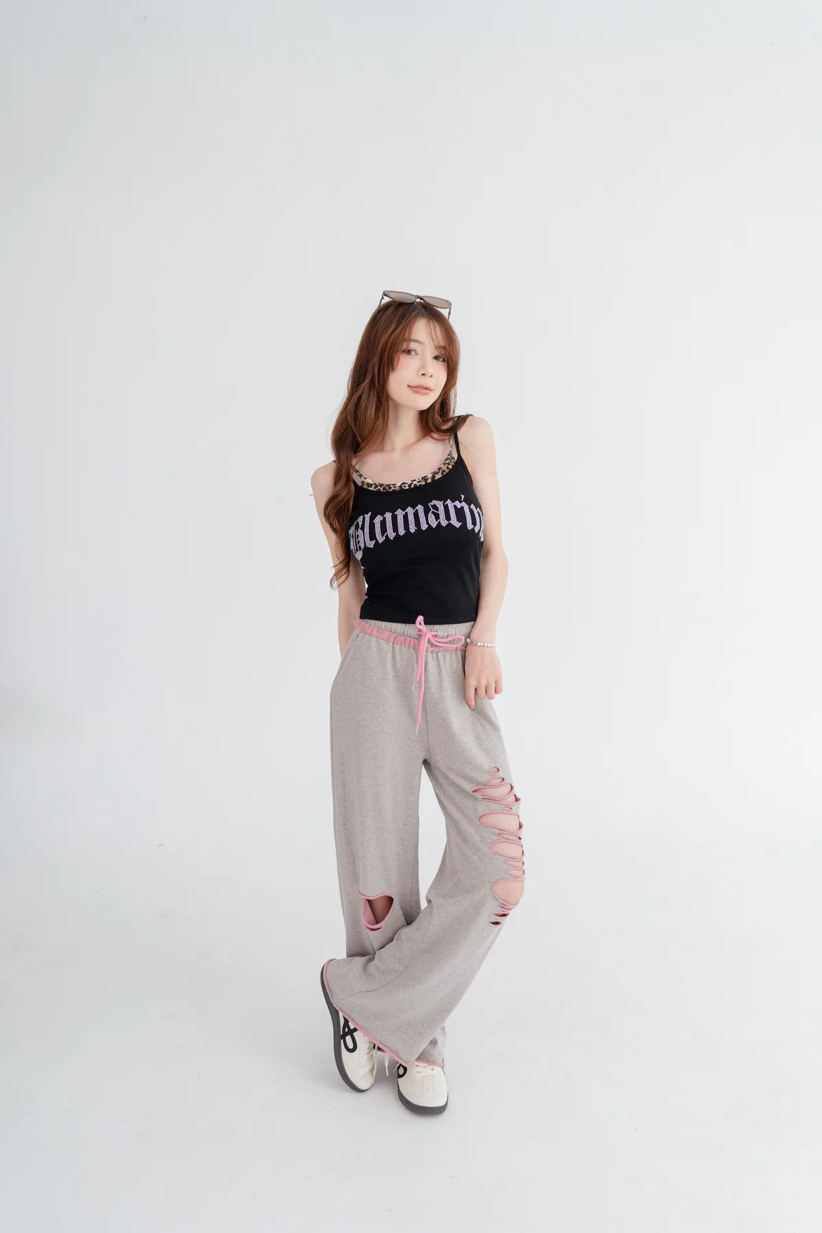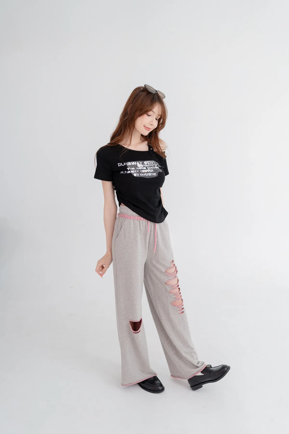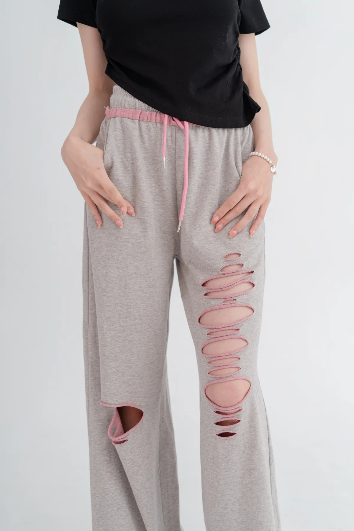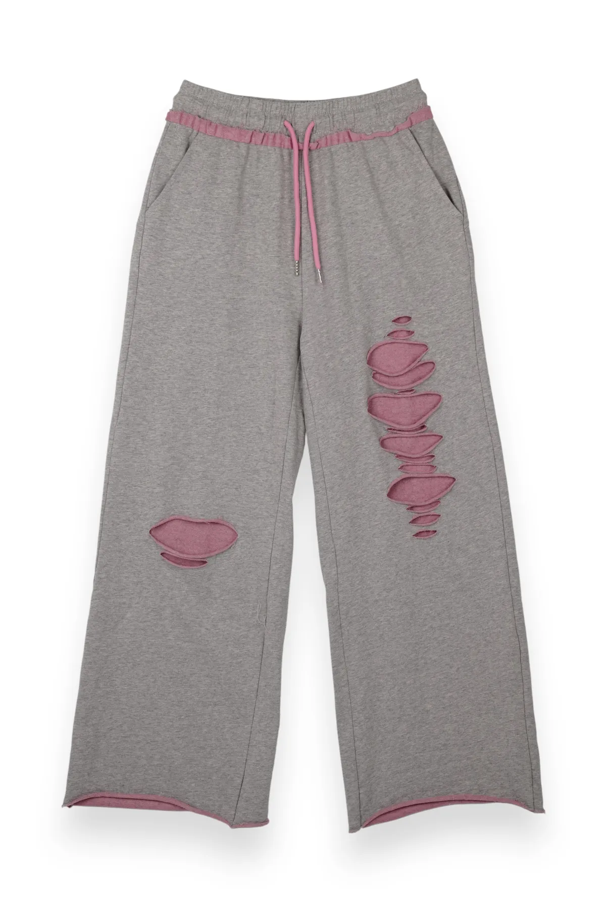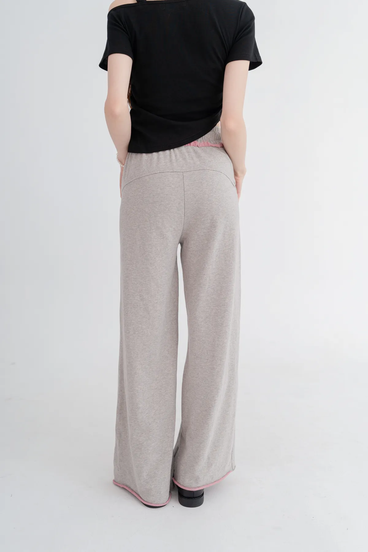 撞色割破棉質休閒褲