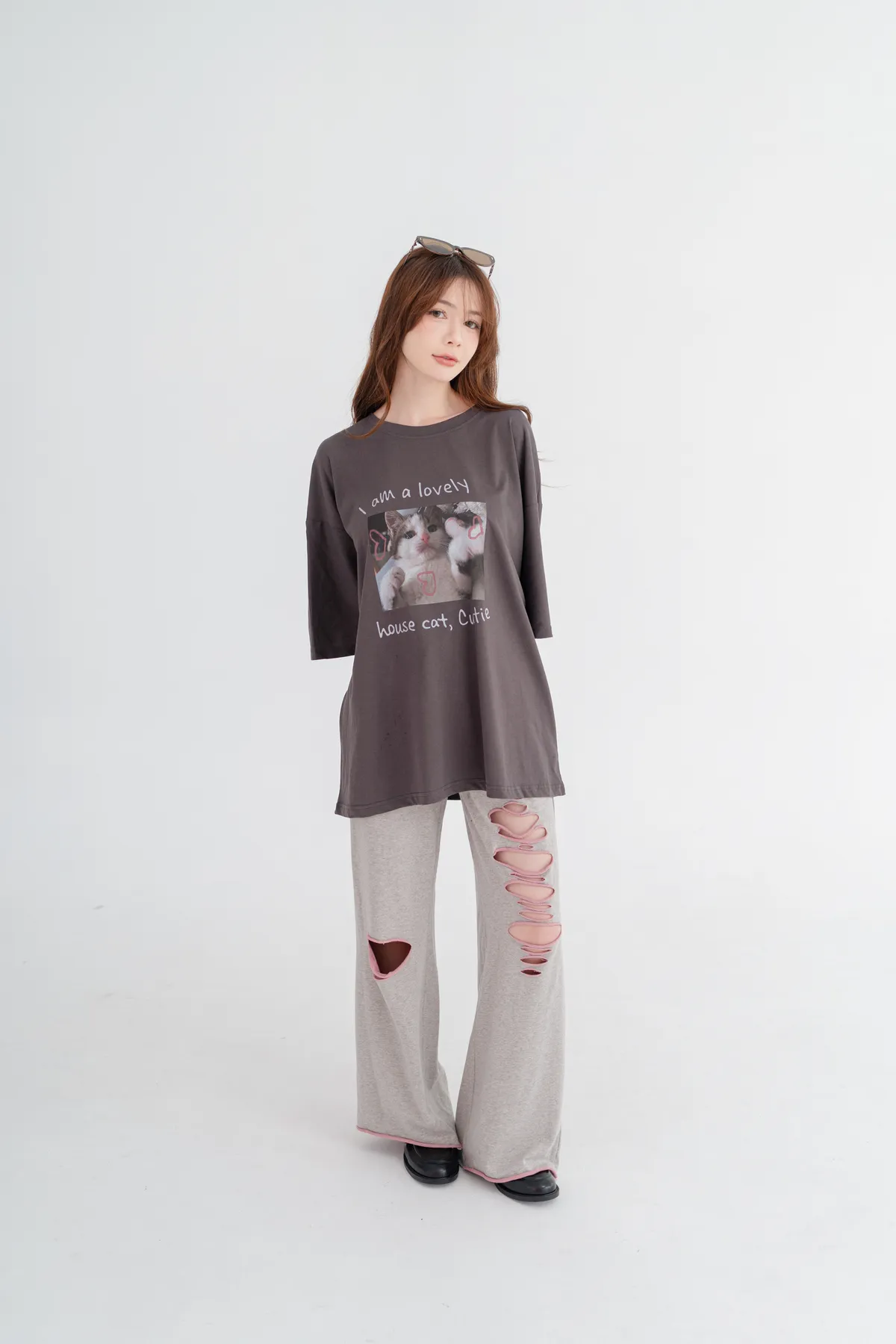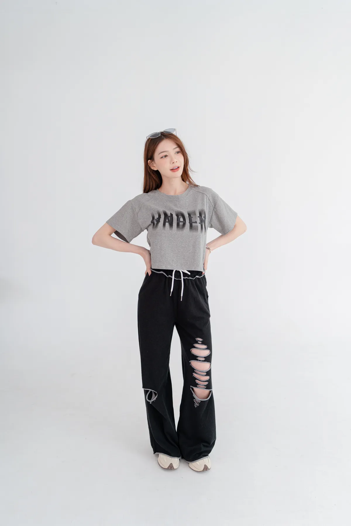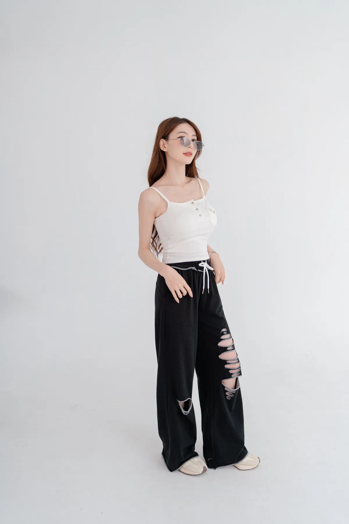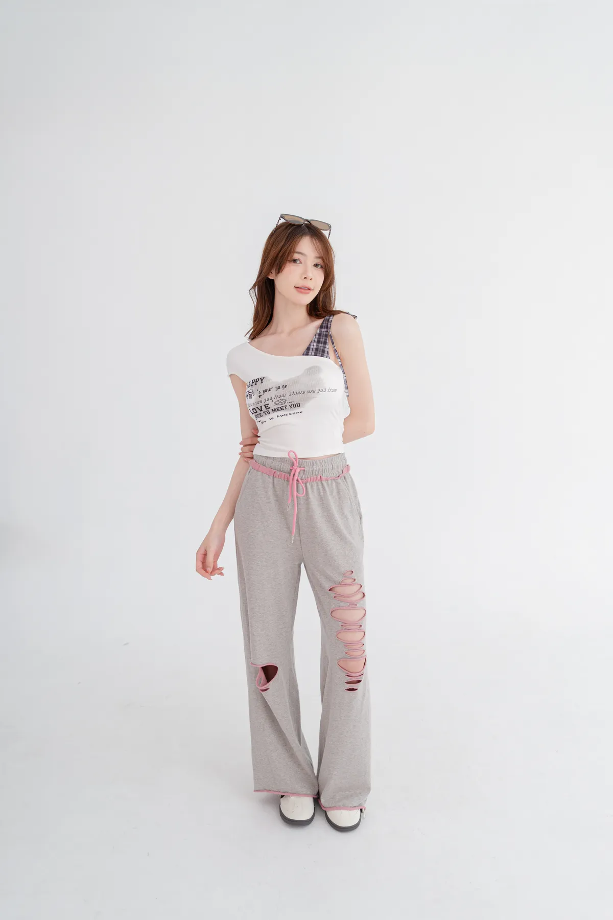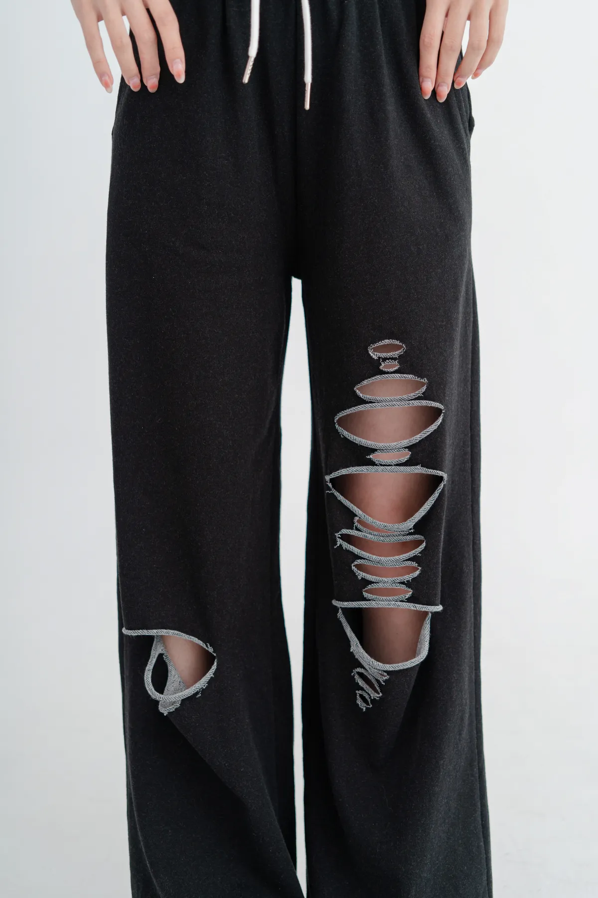 撞色割破棉質休閒褲
