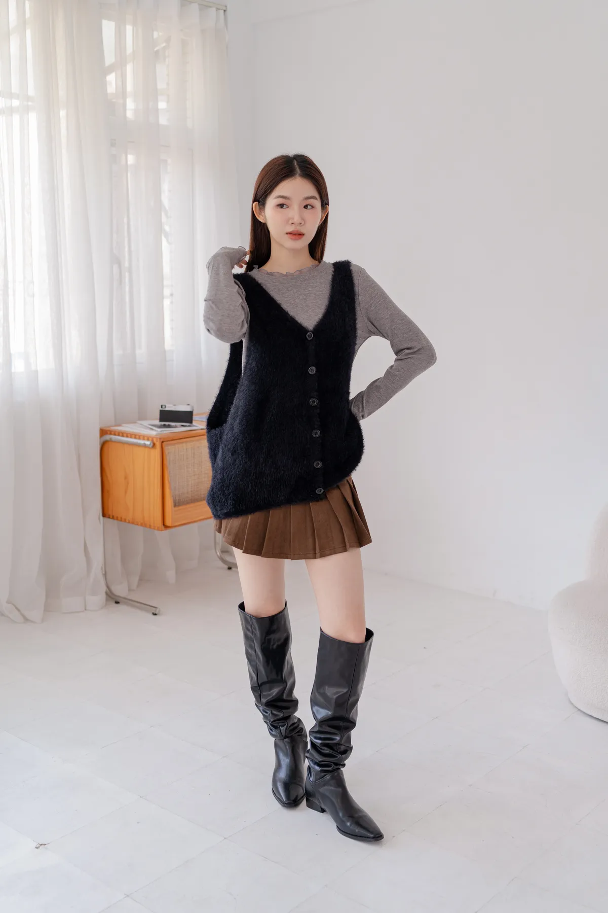 *麂皮絨材質,觸感舒適柔軟帶點挺度