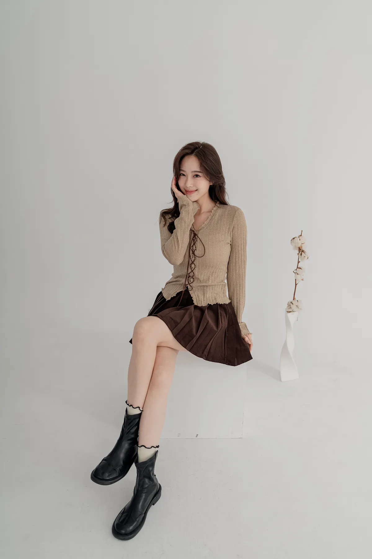 熱賣百摺版型,改成冬季燈芯絨暖呼呼材質,穿出冬季甜美感。內有安全褲,側隱形拉鍊