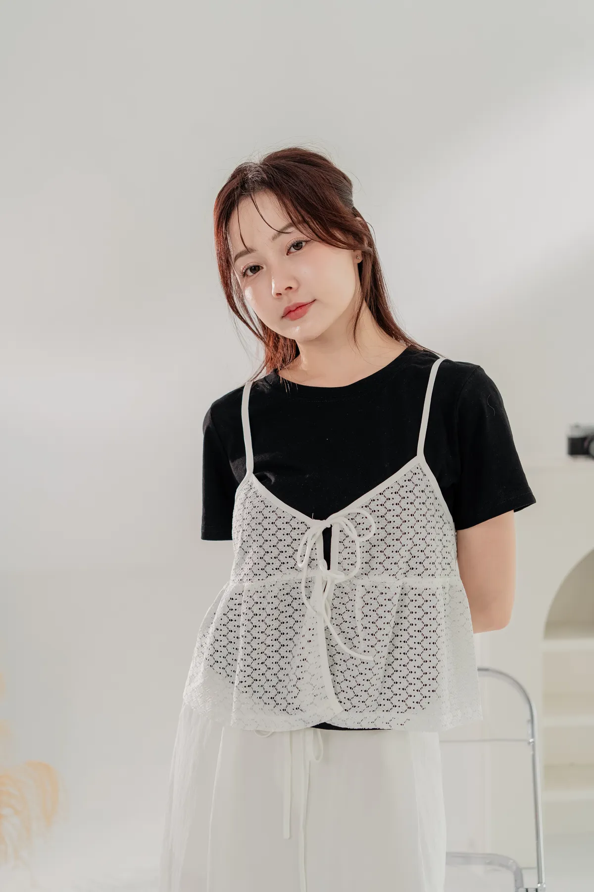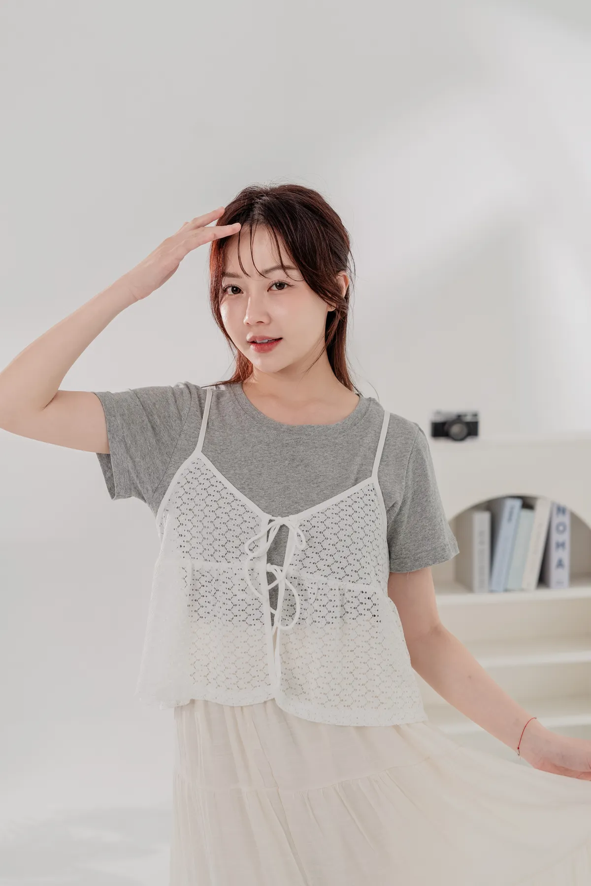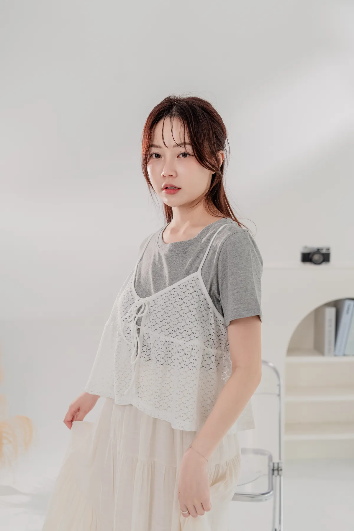 商品資訊:輕柔鏤空花紋搭配雙綁結設計,層層堆疊出日系感生活穿搭,真兩件式可拆開穿搭
