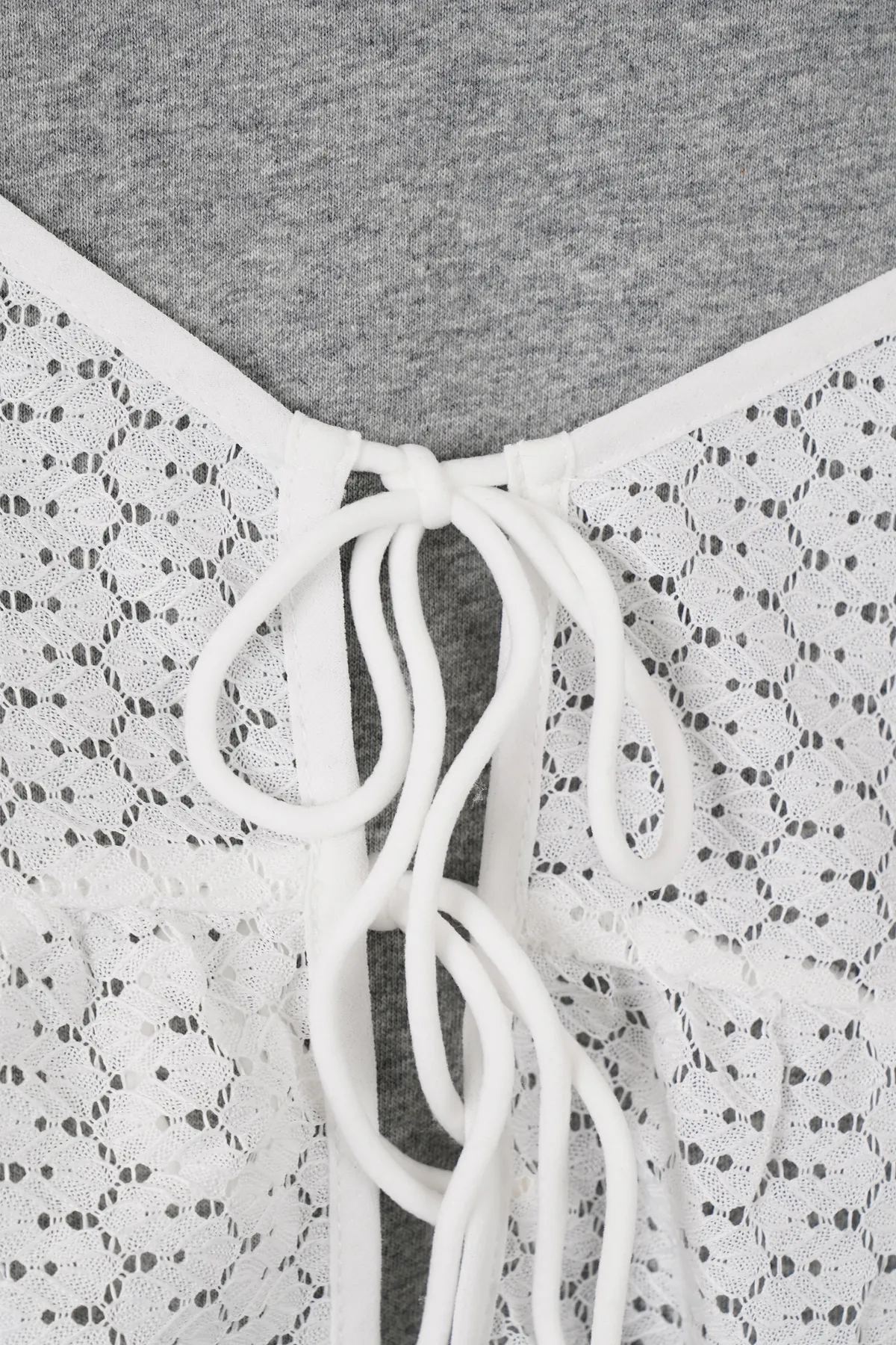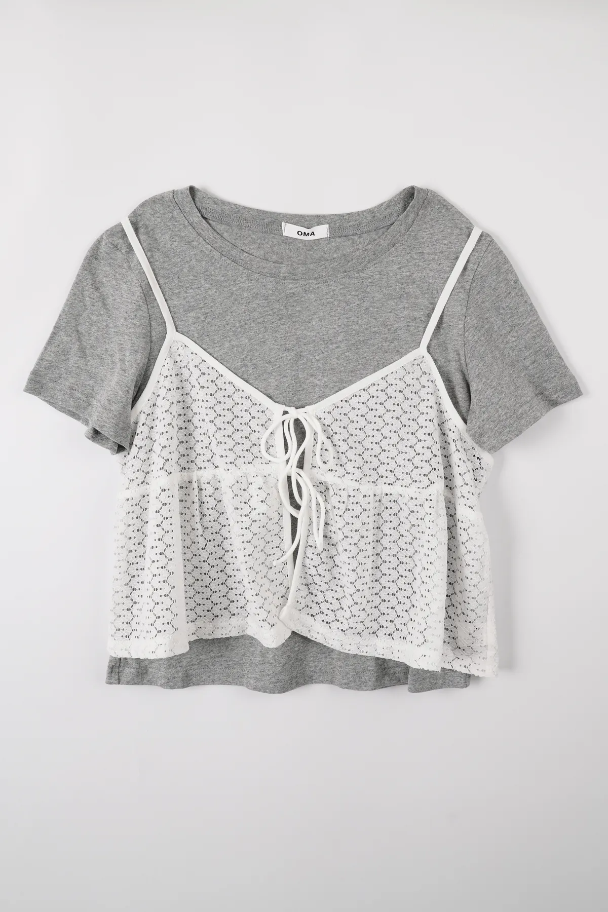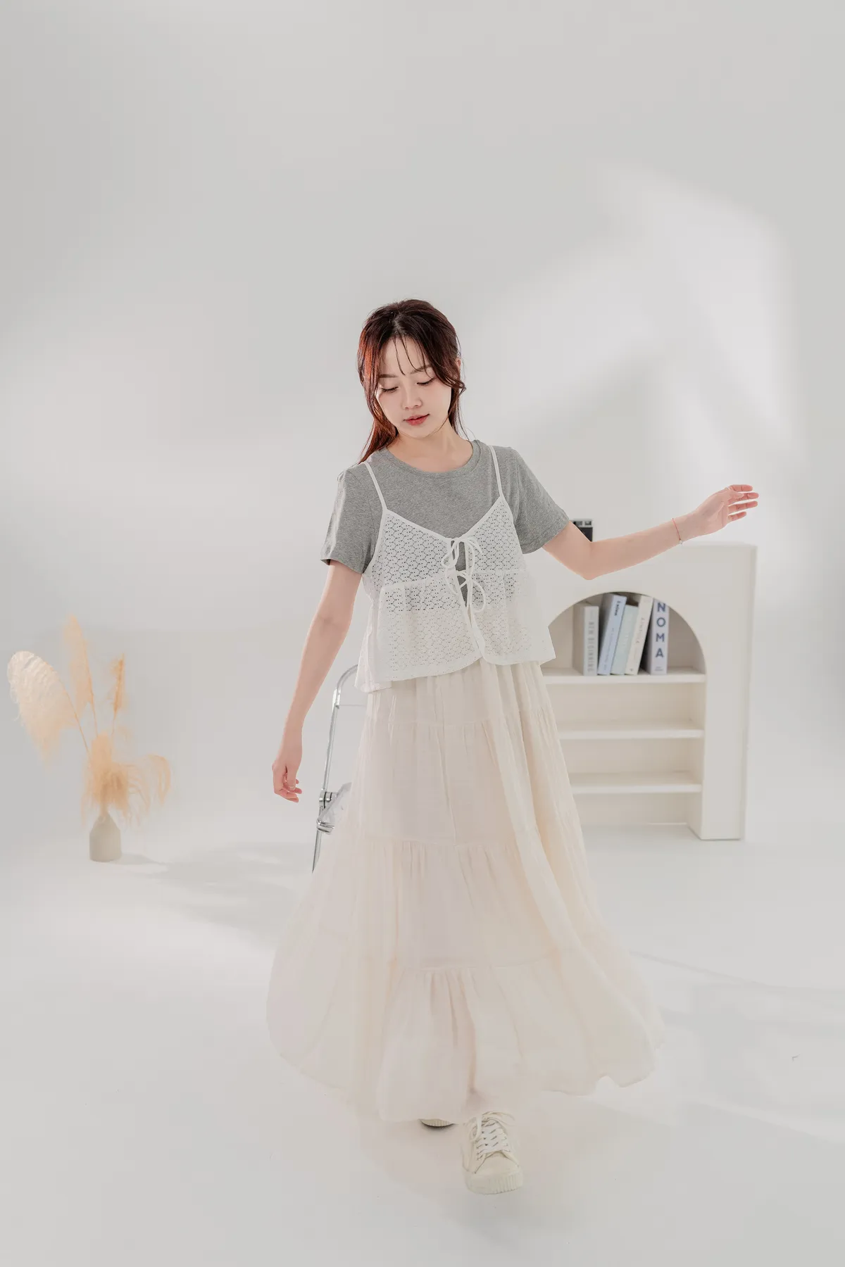 商品資訊:輕柔鏤空花紋搭配雙綁結設計,層層堆疊出日系感生活穿搭,真兩件式可拆開穿搭