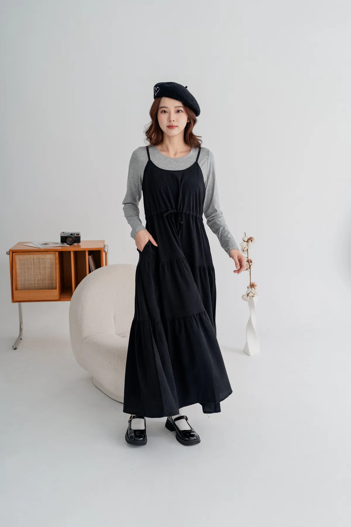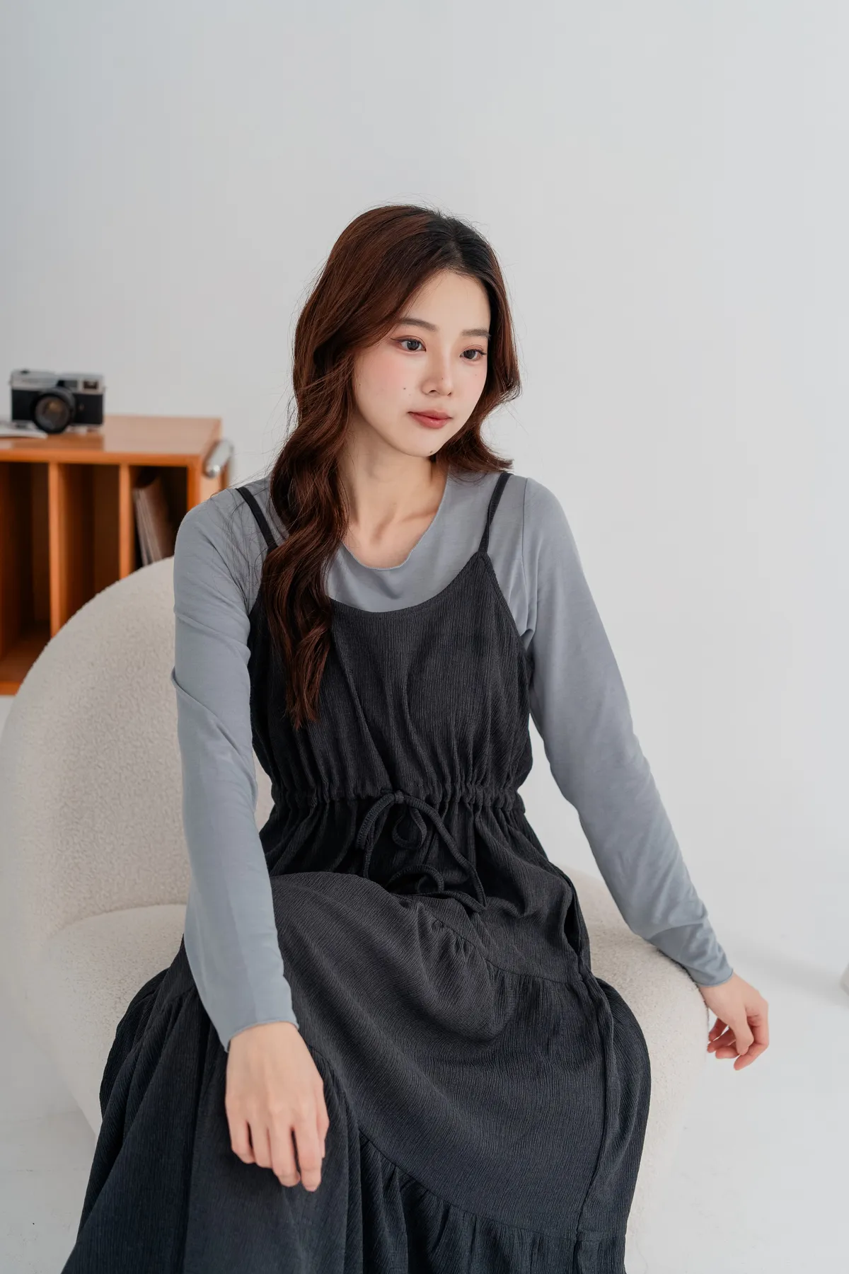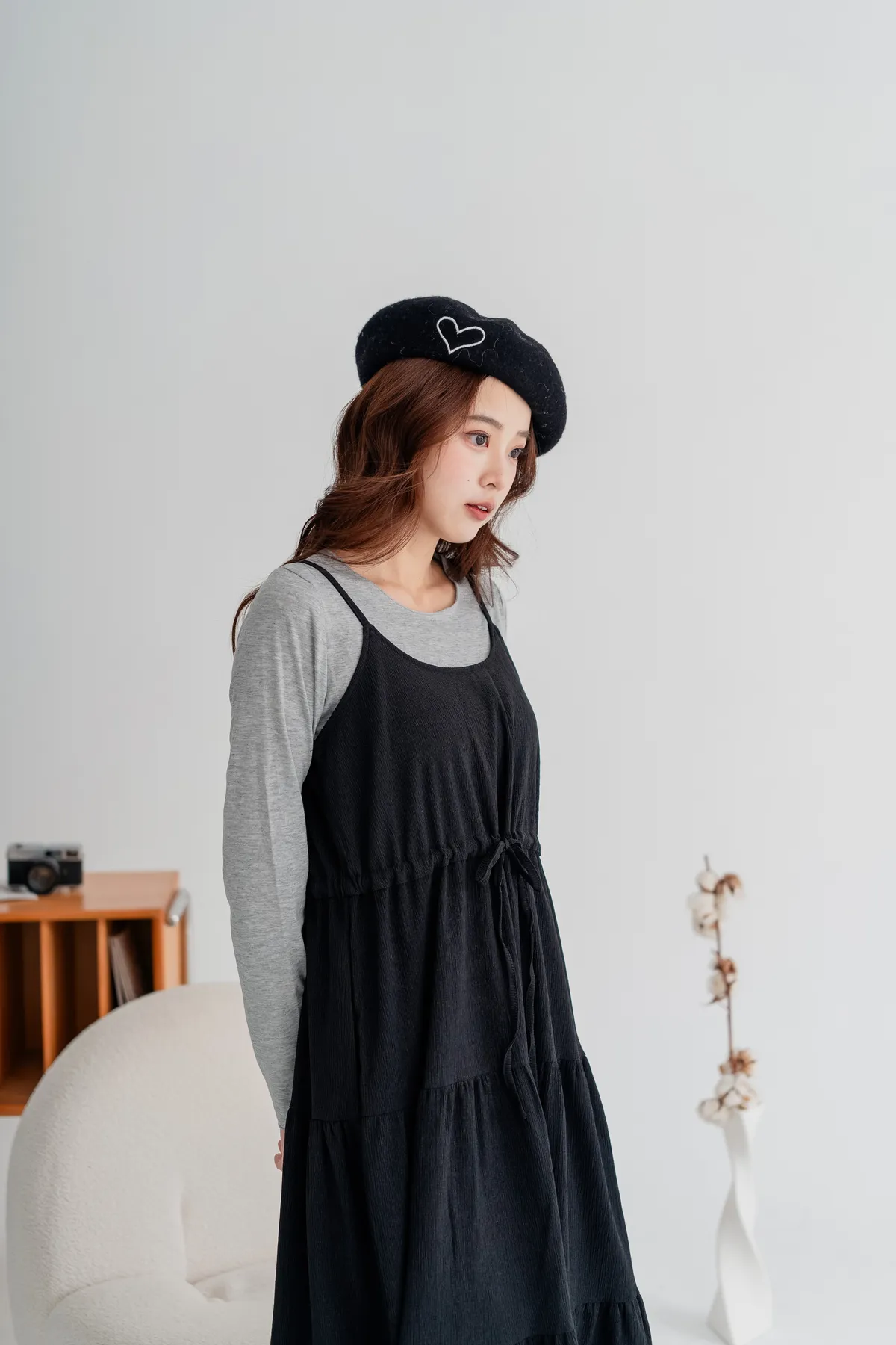 真兩件式設計,蛋糕吊帶裙,選用微皺霧面布料,低調又優雅
