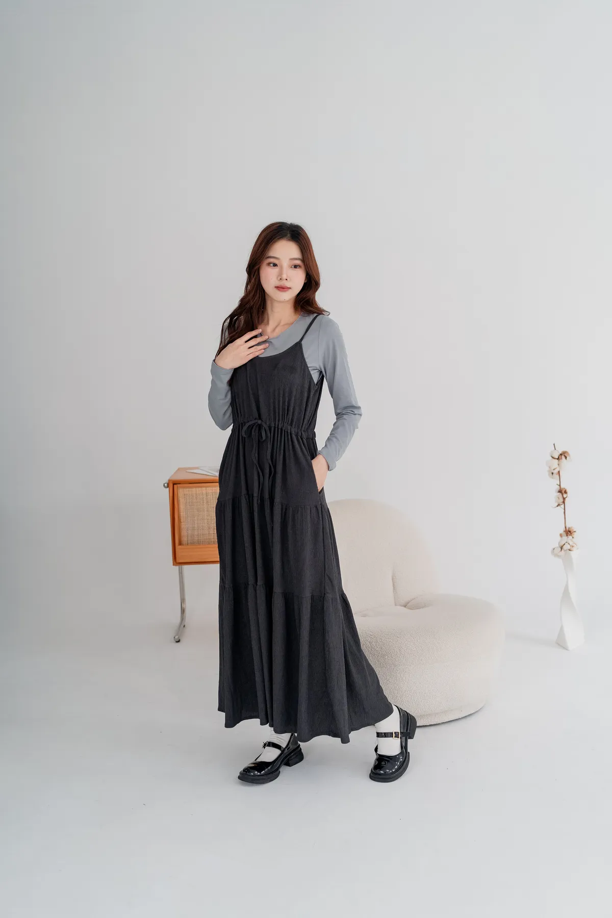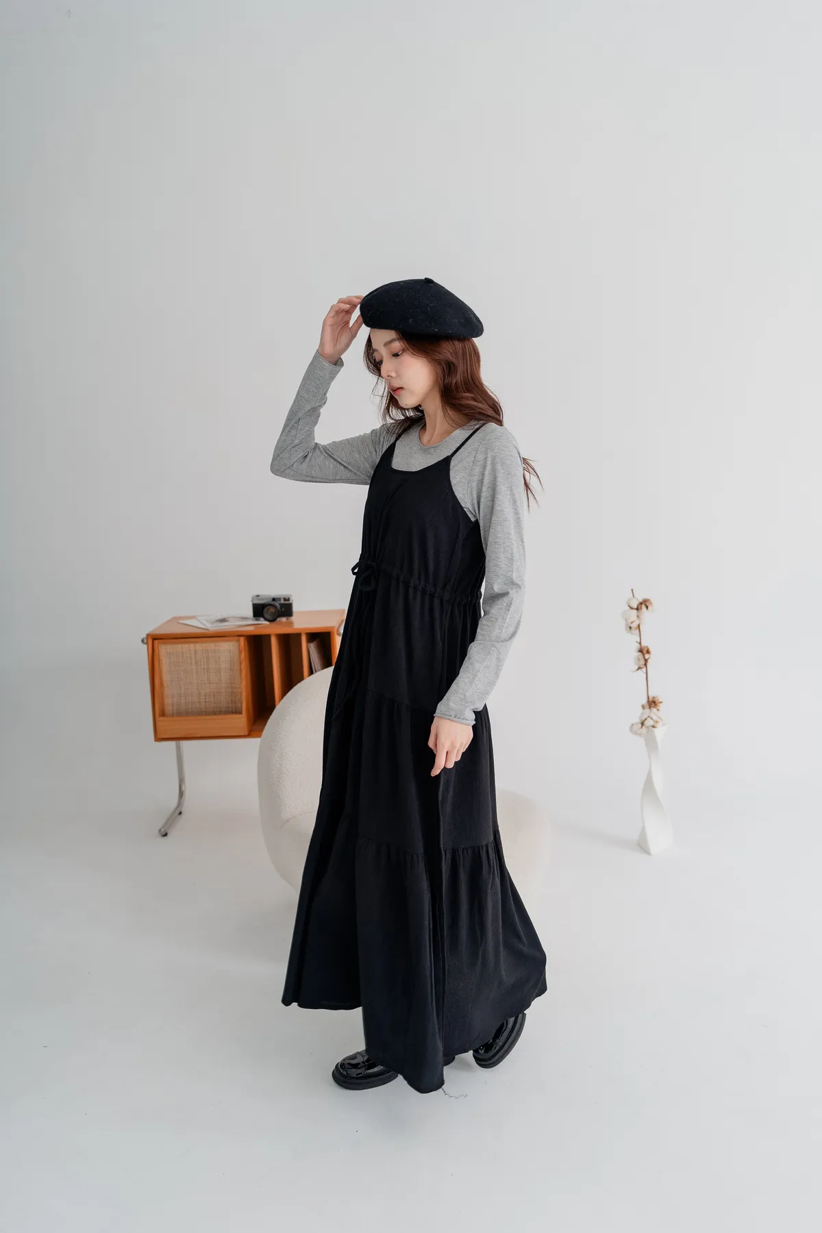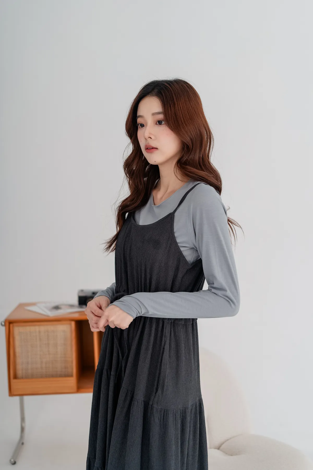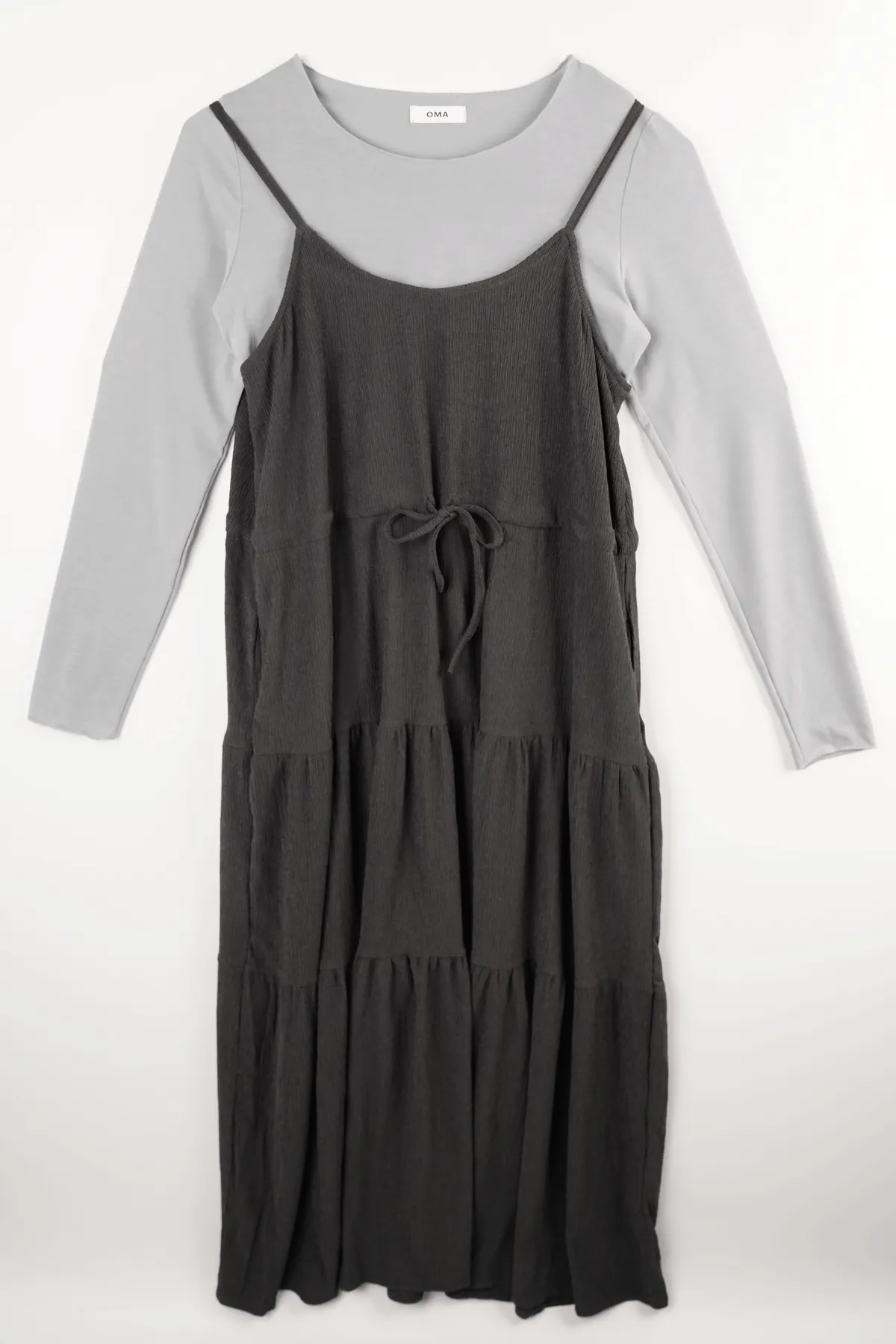真兩件式設計,蛋糕吊帶裙,選用微皺霧面布料,低調又優雅
