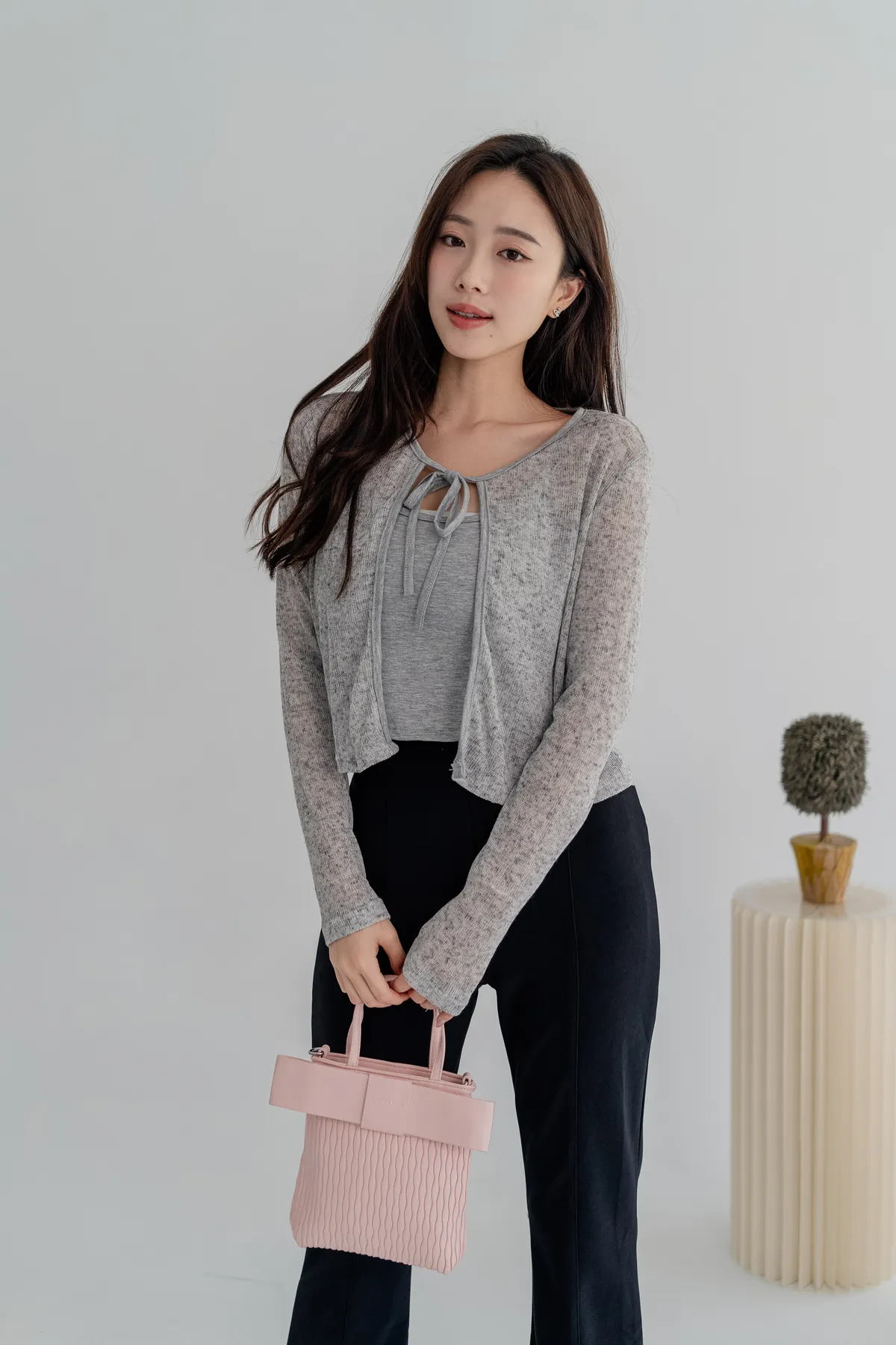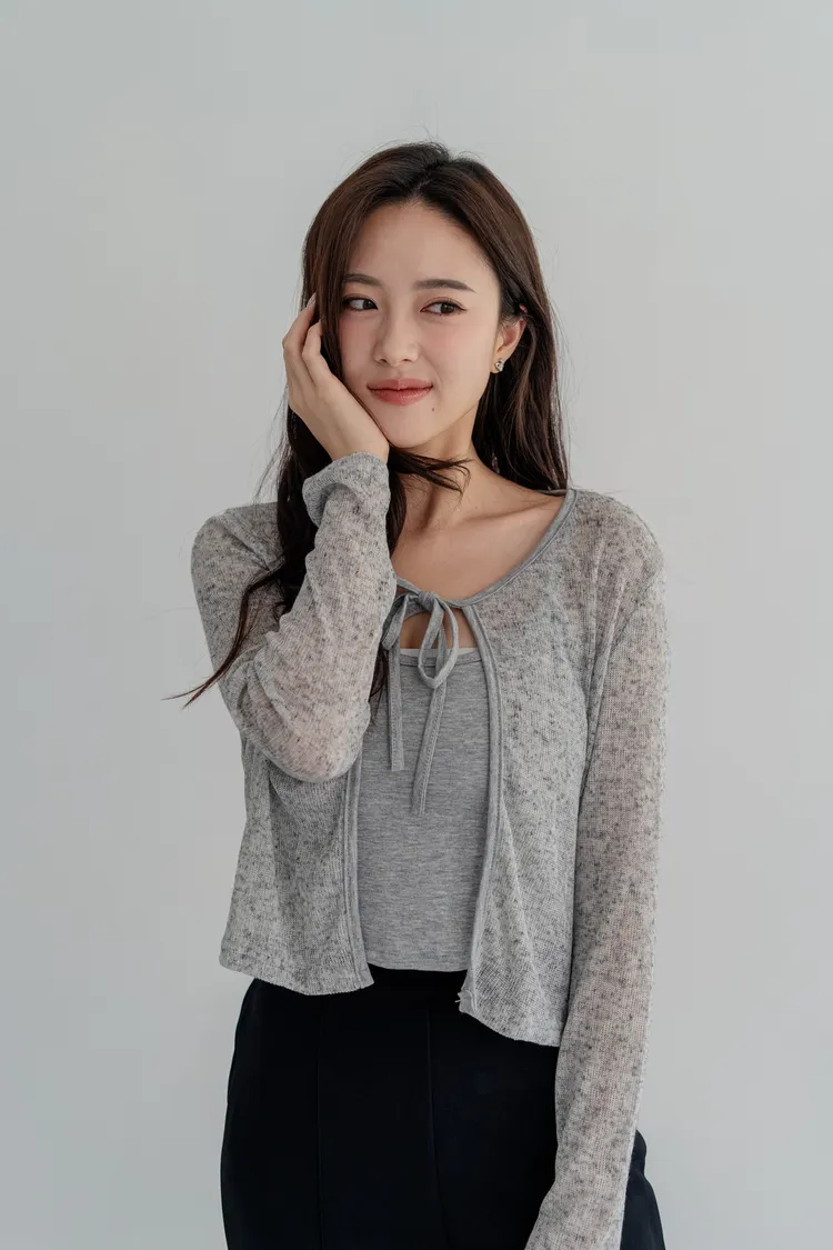 商品資訊:真兩件式,外套綁帶開襟設計,修飾鎖骨線,搭配同色系小背心,簡約好看單品