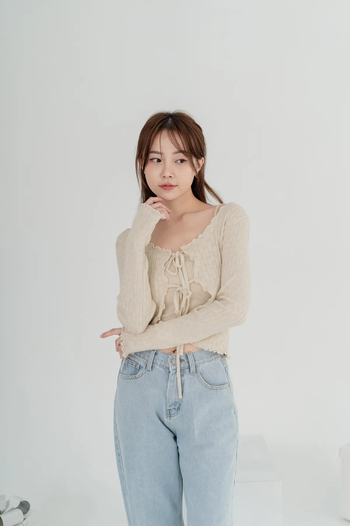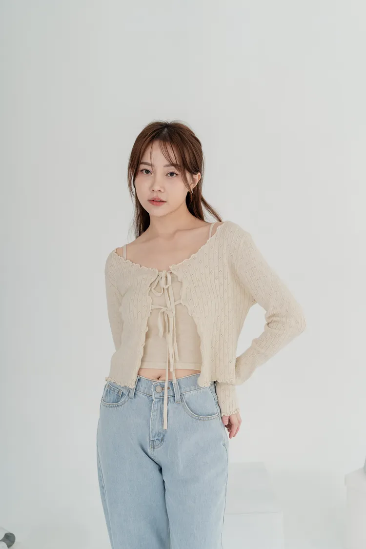 兩件式搭配,短版針織外套+內搭背心,單穿、外搭、拆開穿都好搭