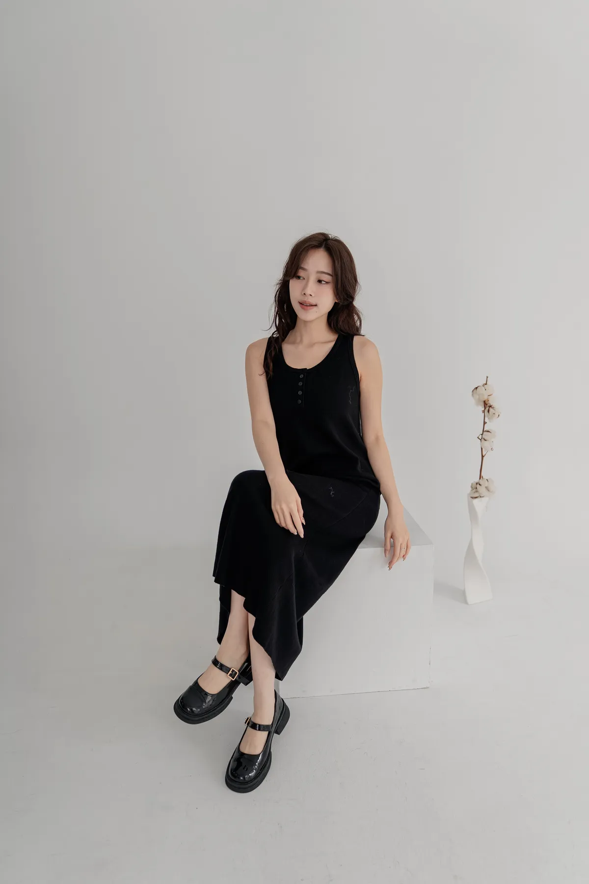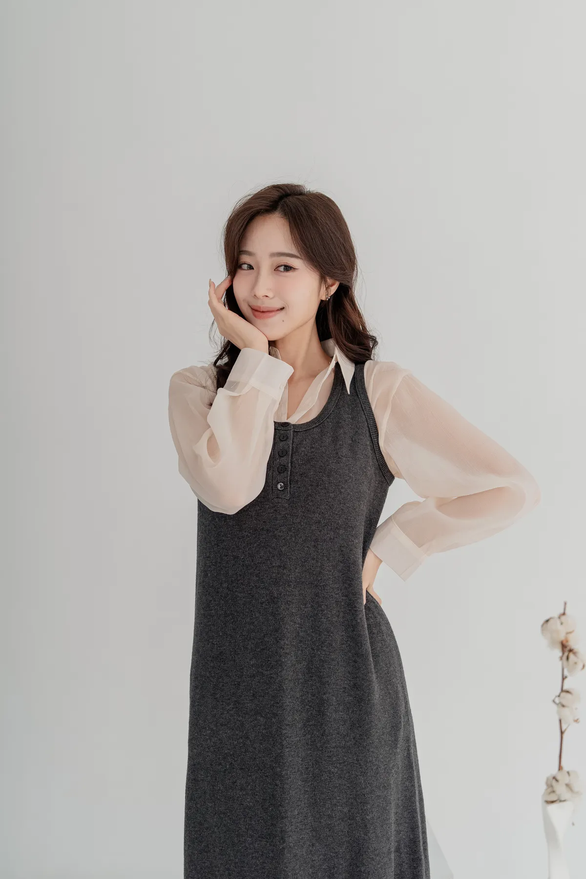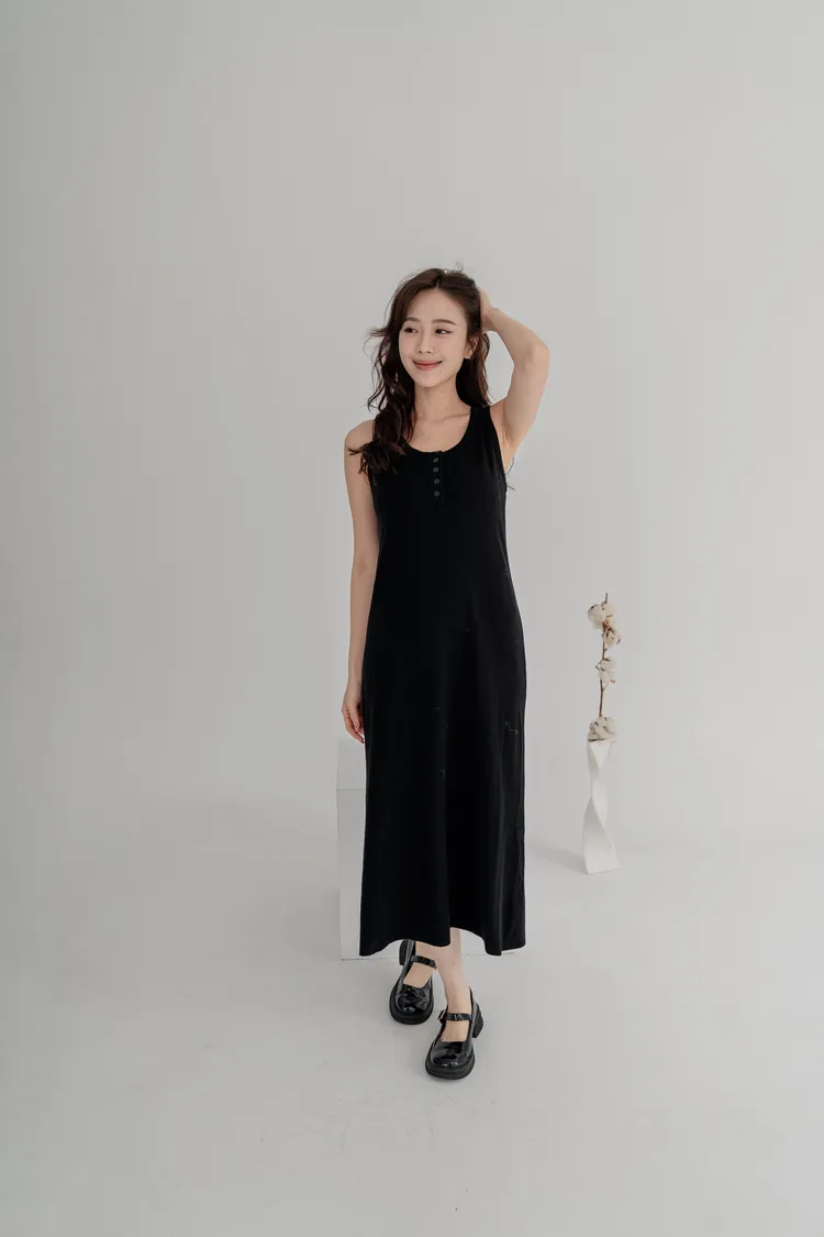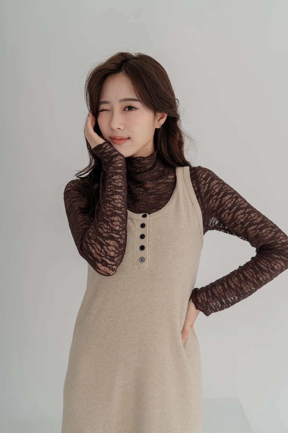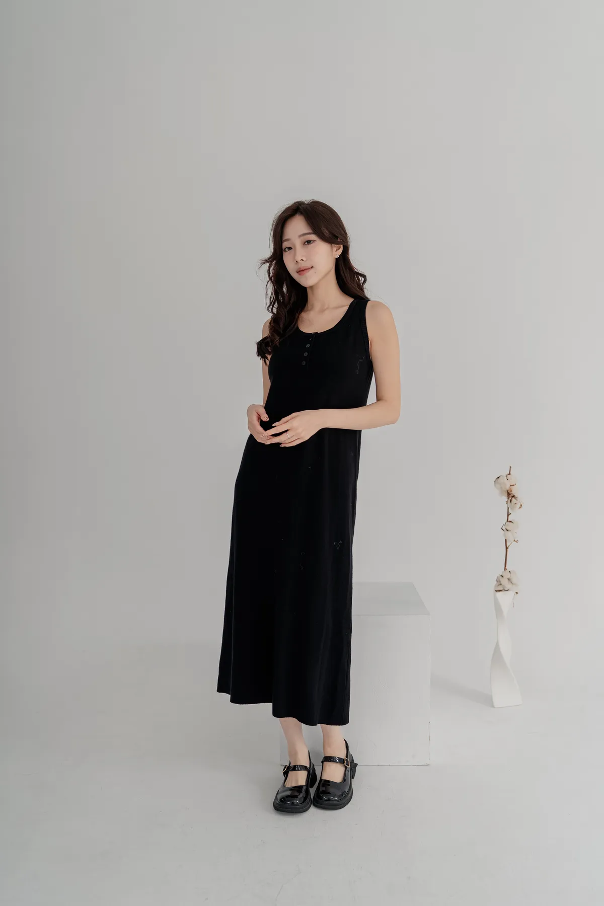柔軟針織洋裝保暖不厚重,長版剪裁修飾身形,舒適包裹下半身。