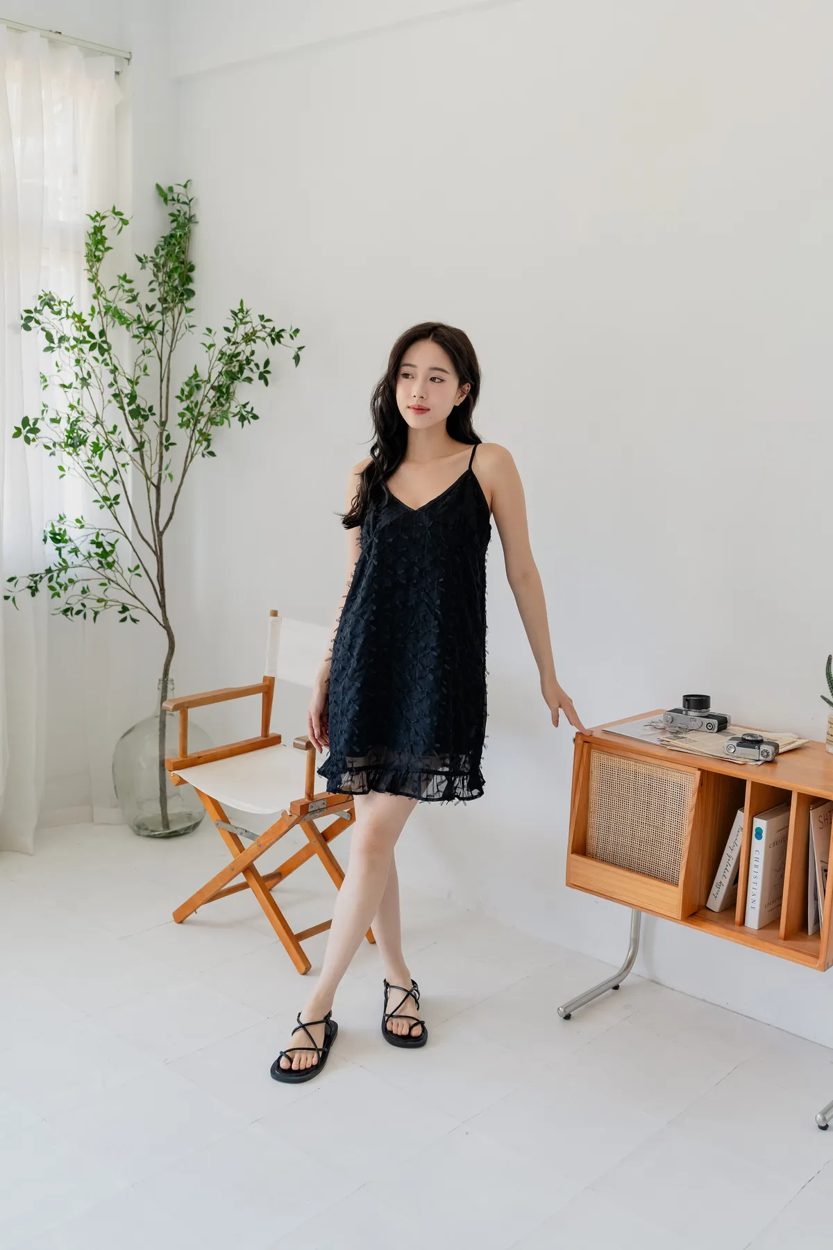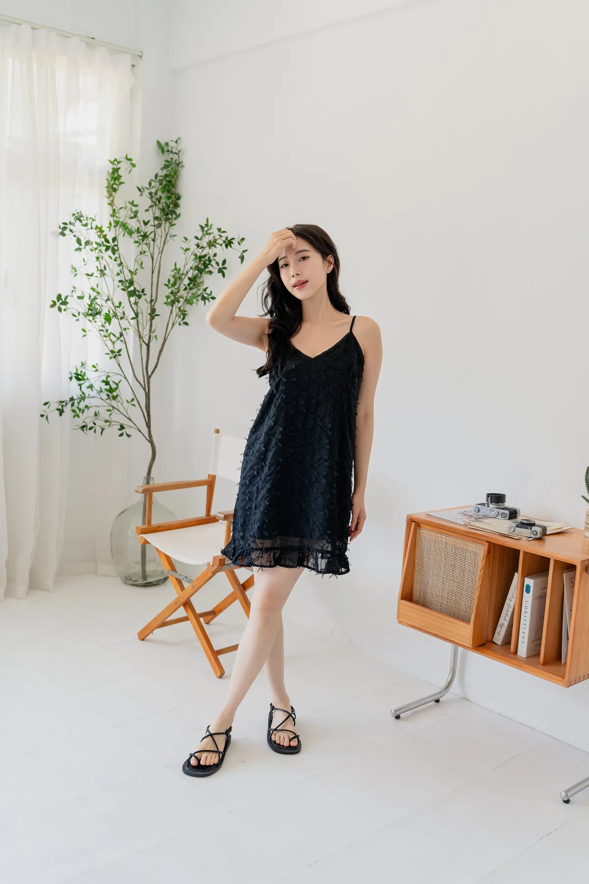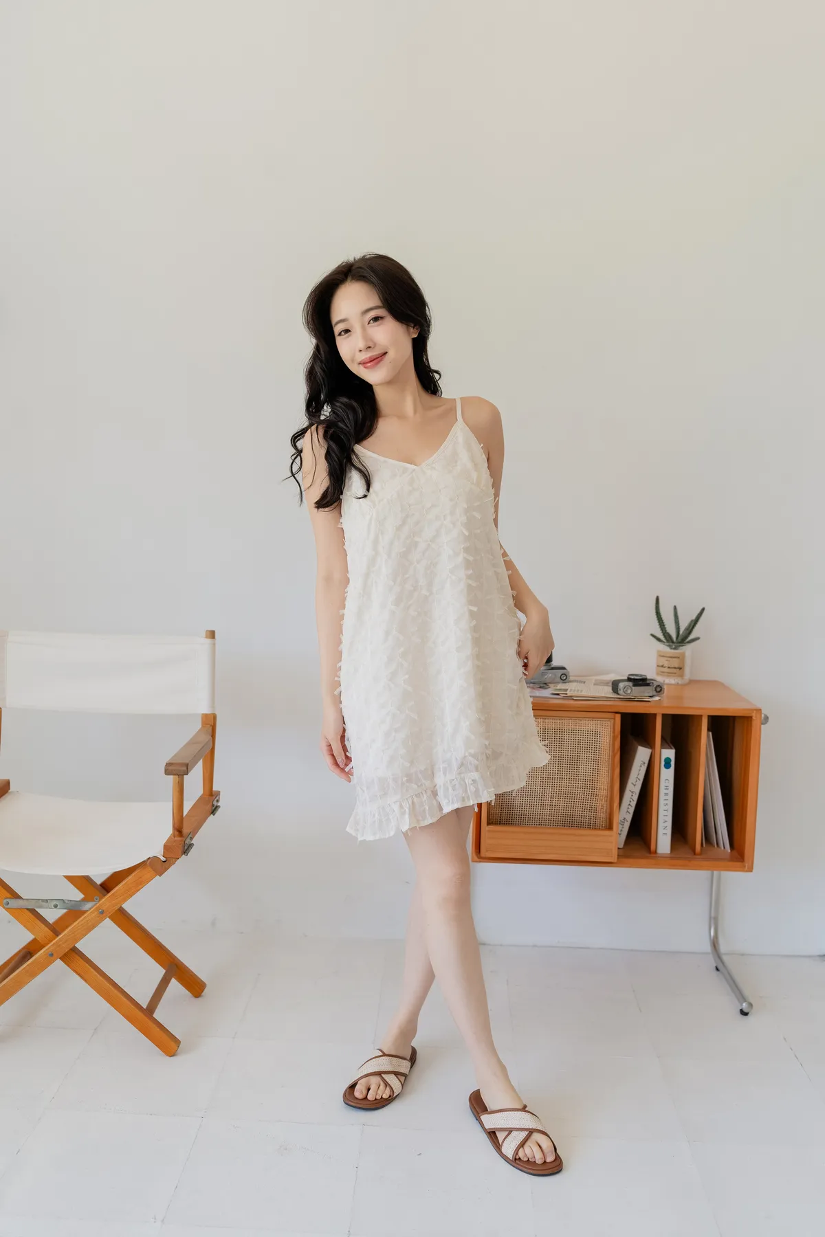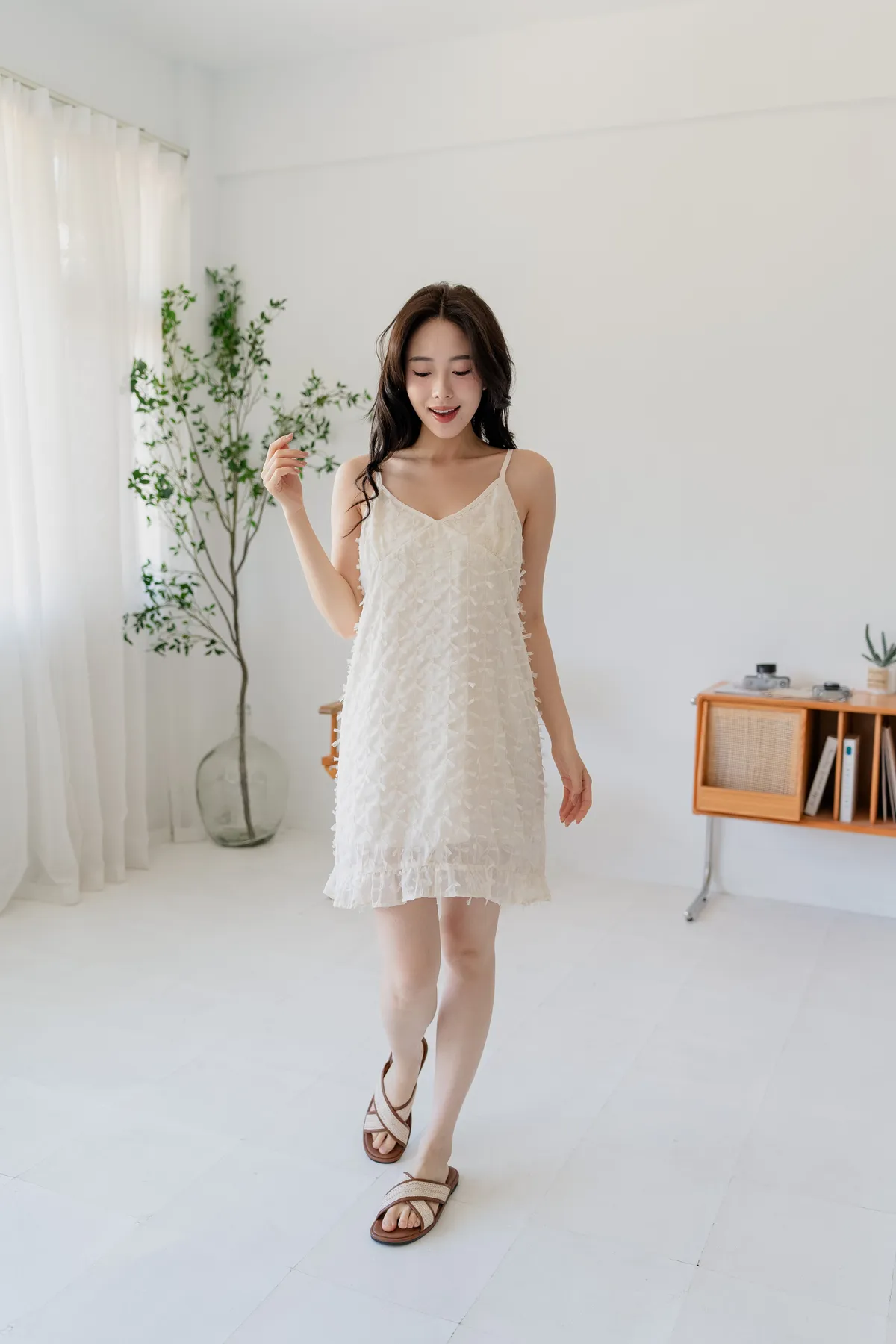 商品資訊:立體蝴蝶結紋理設計,讓細節悄悄展現質感。V領剪裁搭配細肩帶,修飾鎖骨線條,展現女性柔美。下擺微微透出的層次感,為整體增添一抹俏皮。