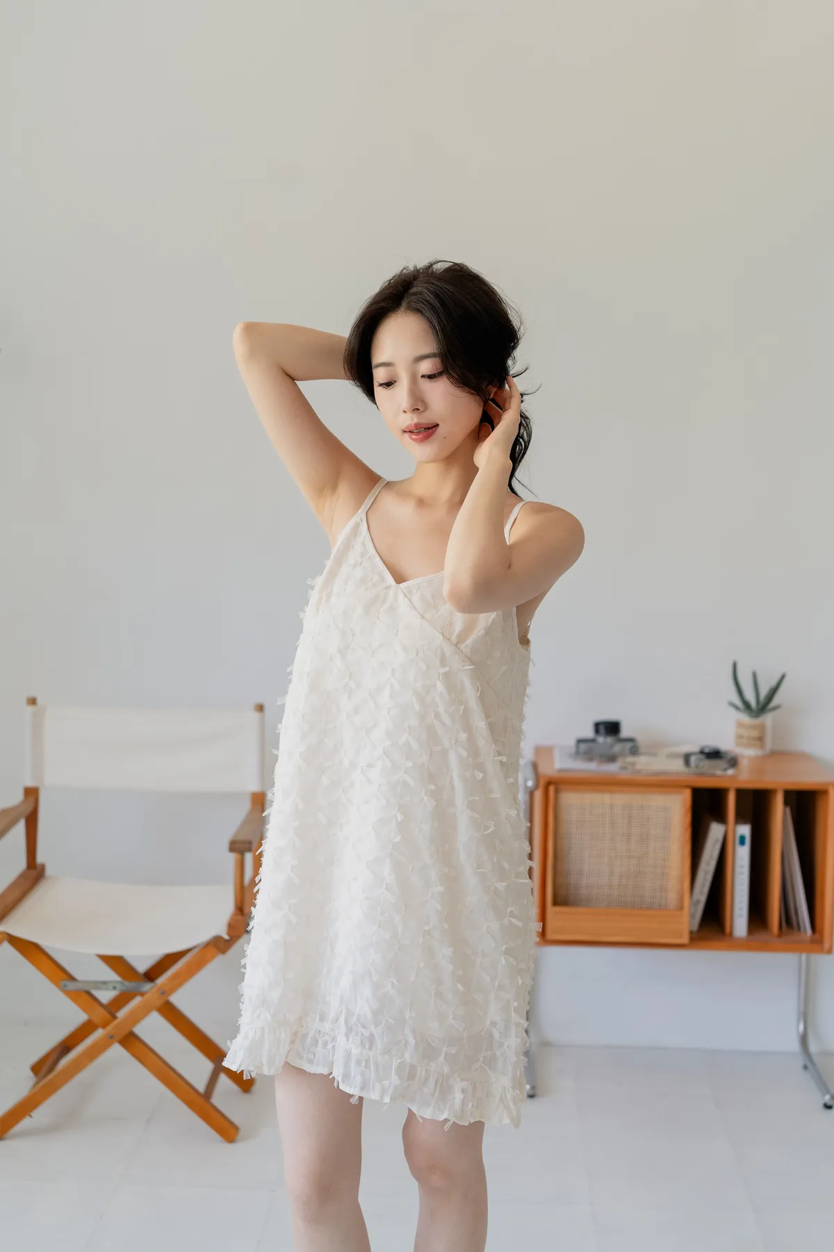 蝴蝶結細肩短洋裝
